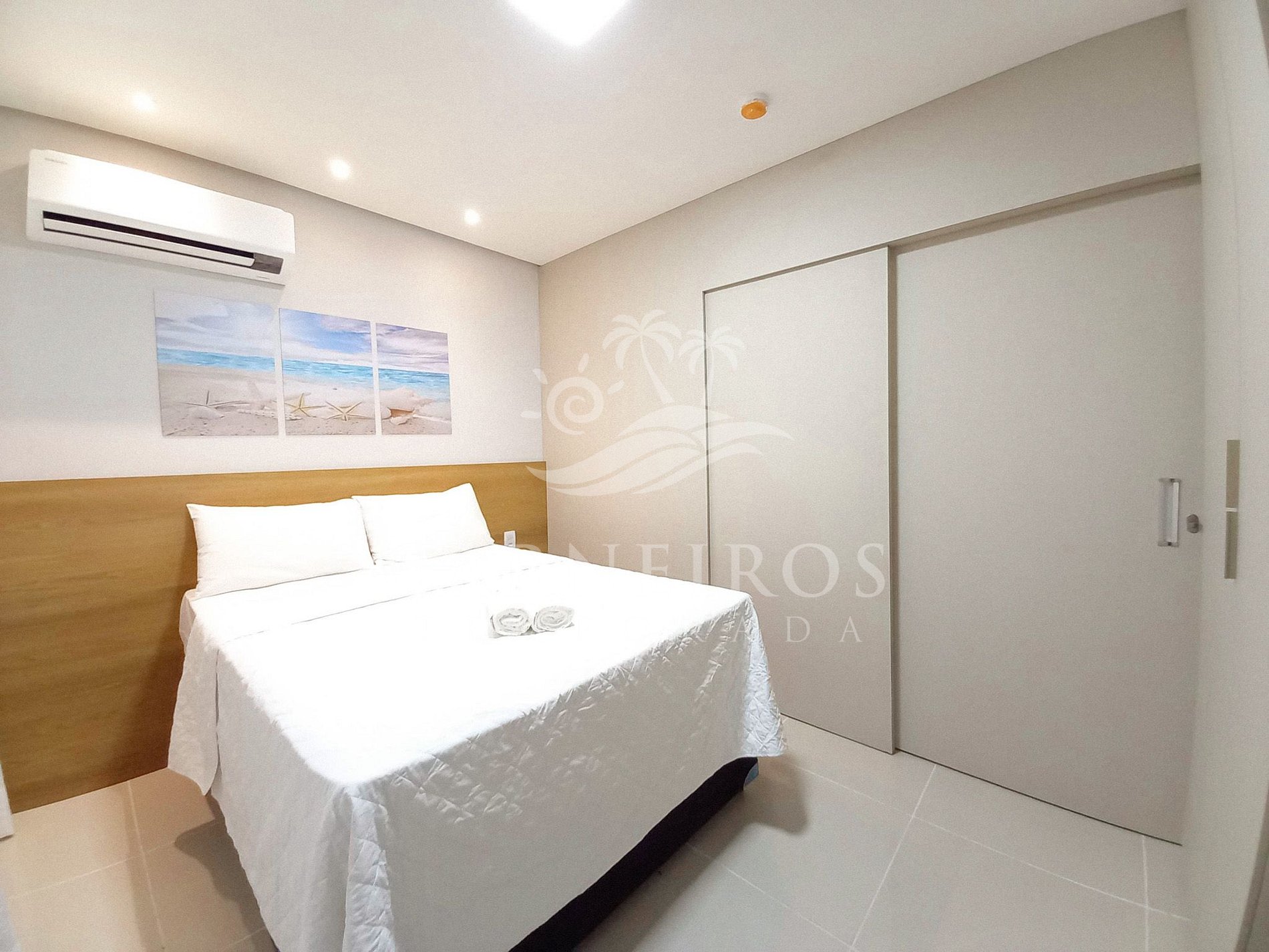 - Possui 2 camas de casal queen. TV, armários e ar-condicionado split.