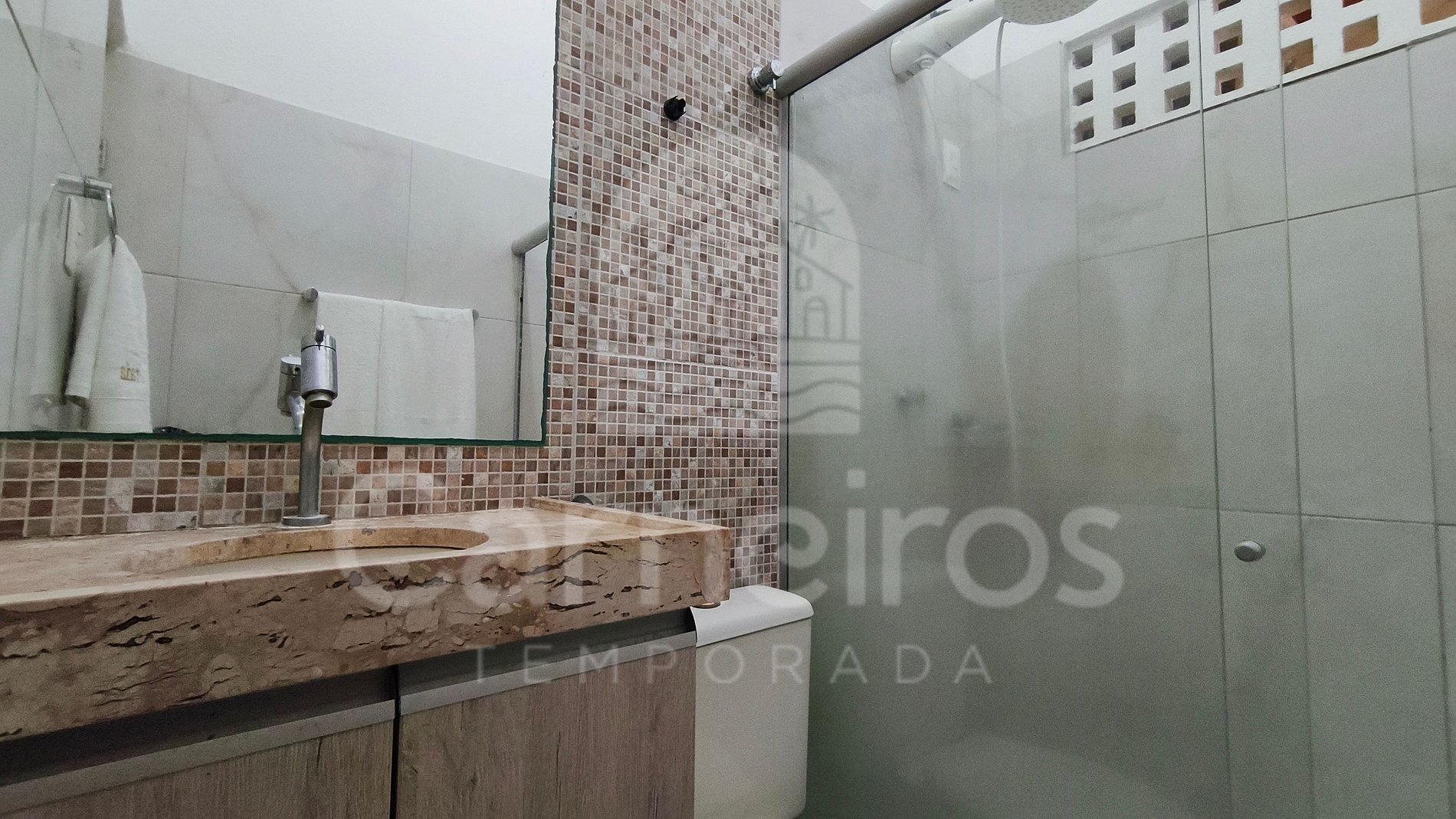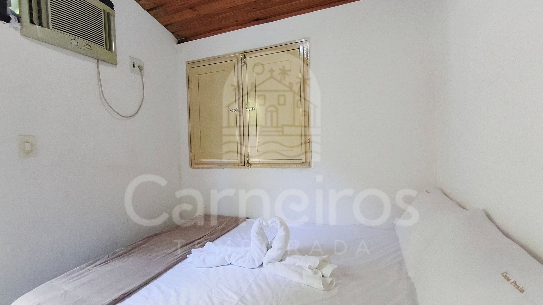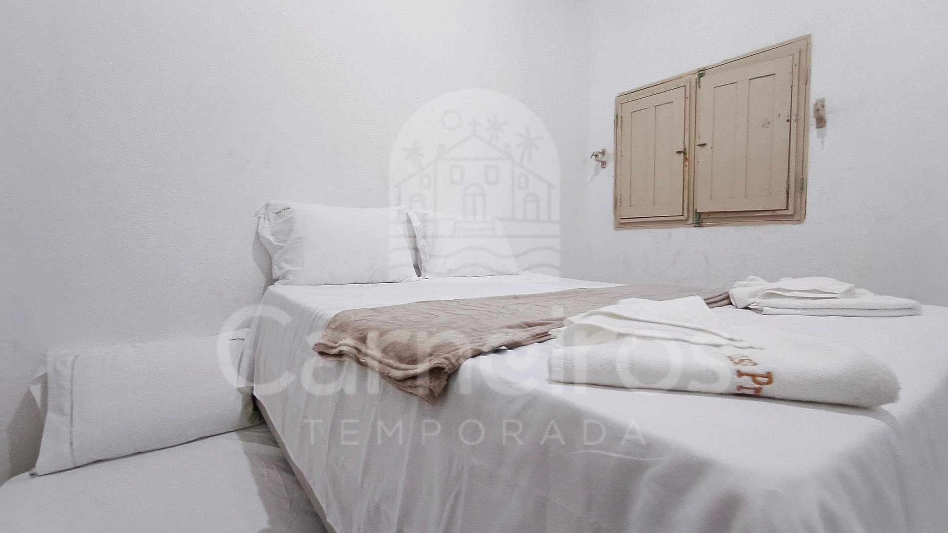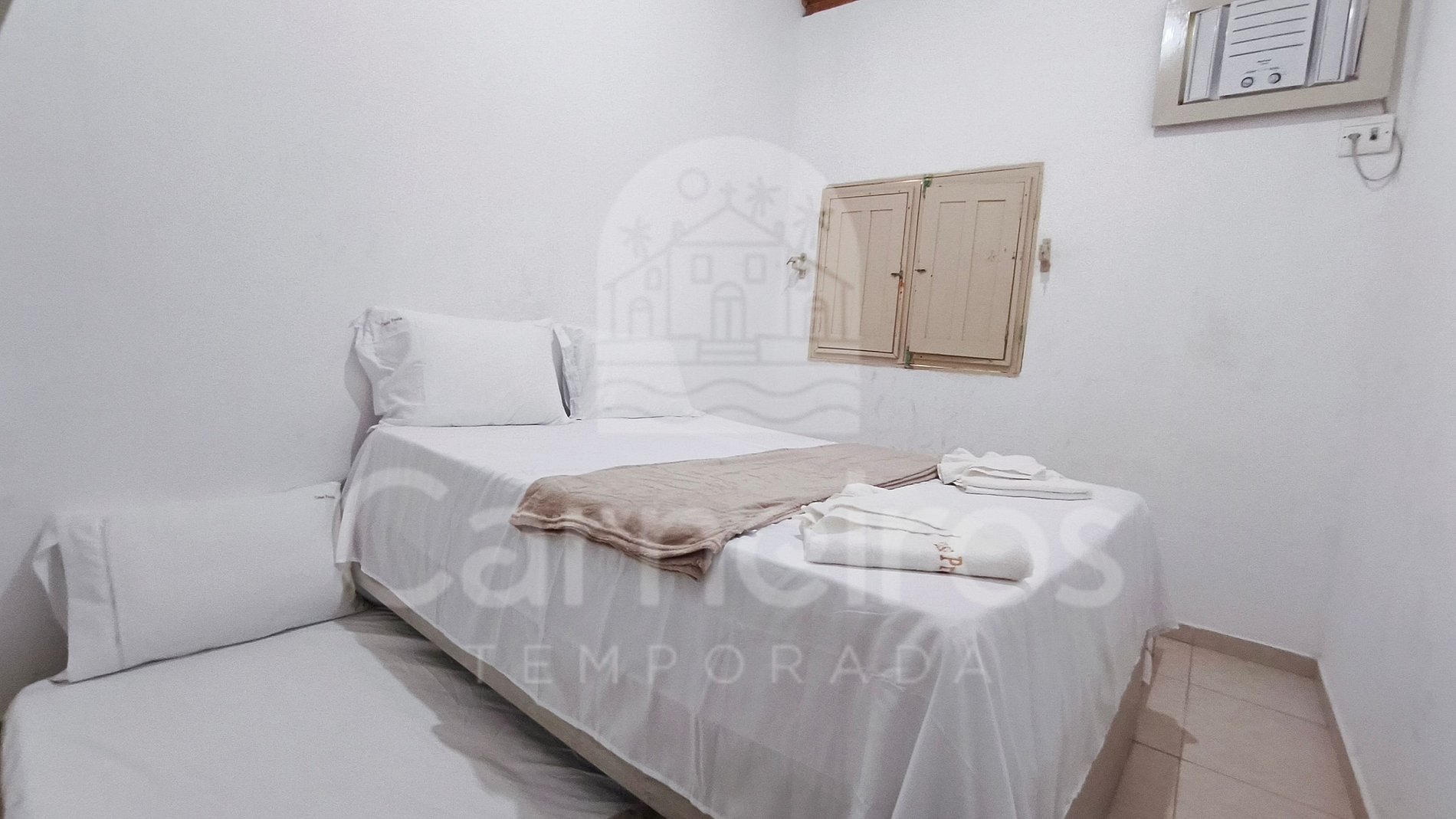 - Quarto 1: 01 cama Queen + 02 bicamas de solteiro, ar-condicionado e banheiro;