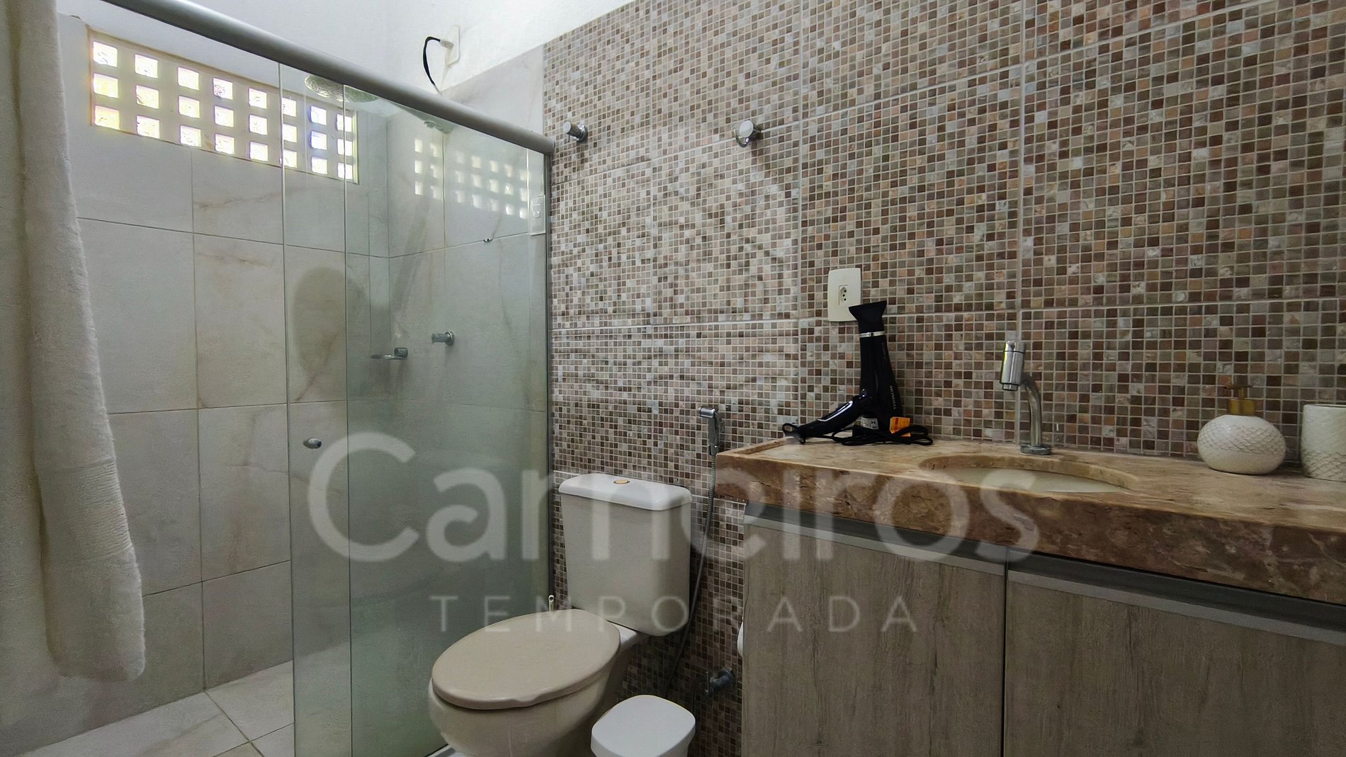 - Quarto 3: 01 cama Queen + 02 bicamas de solteiro, armário e ar-condicionado;