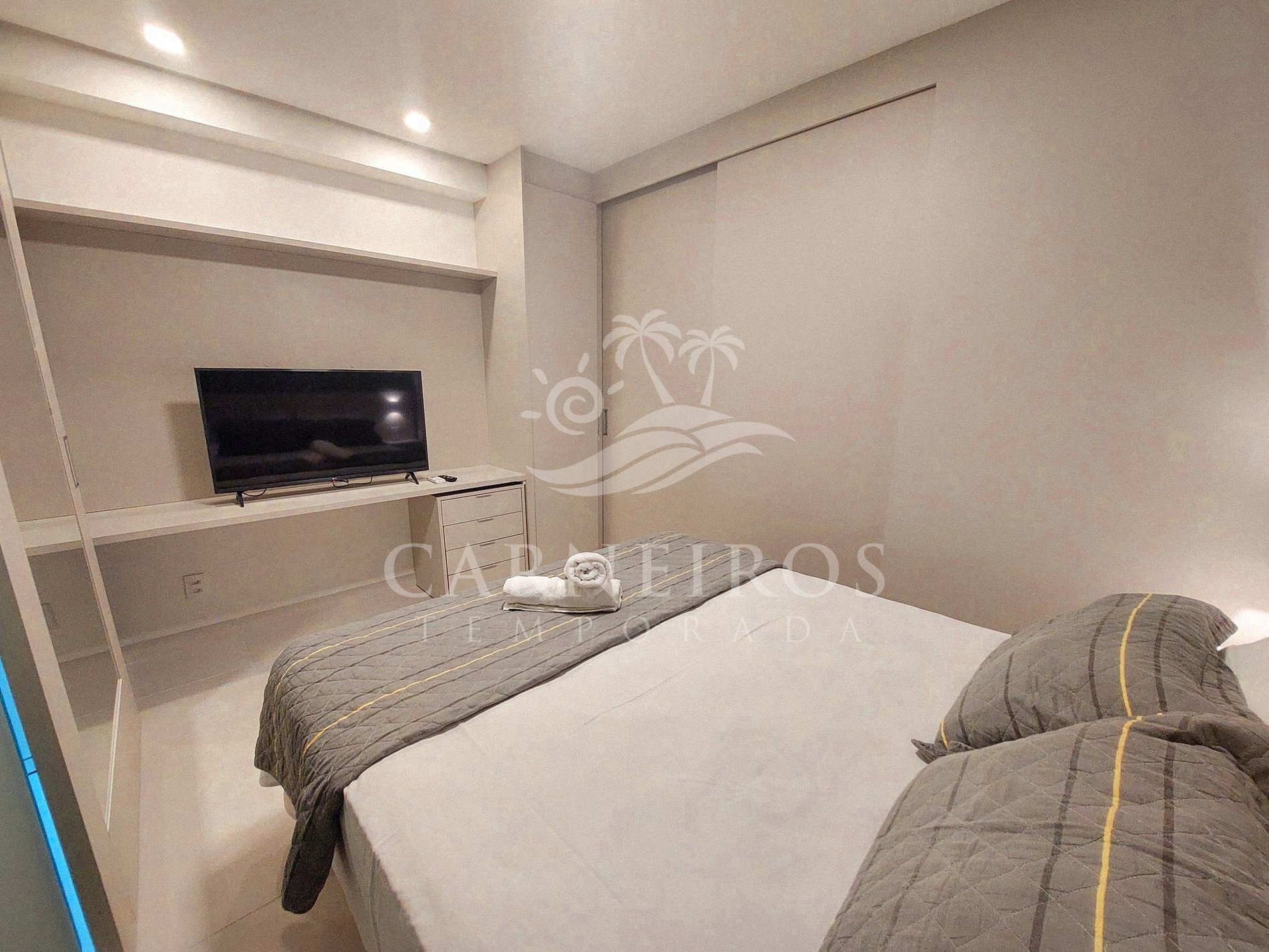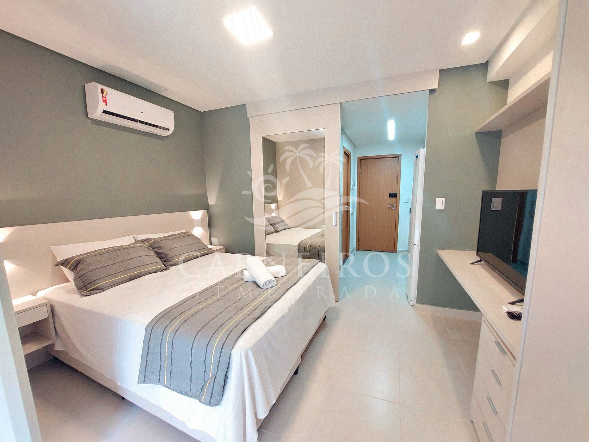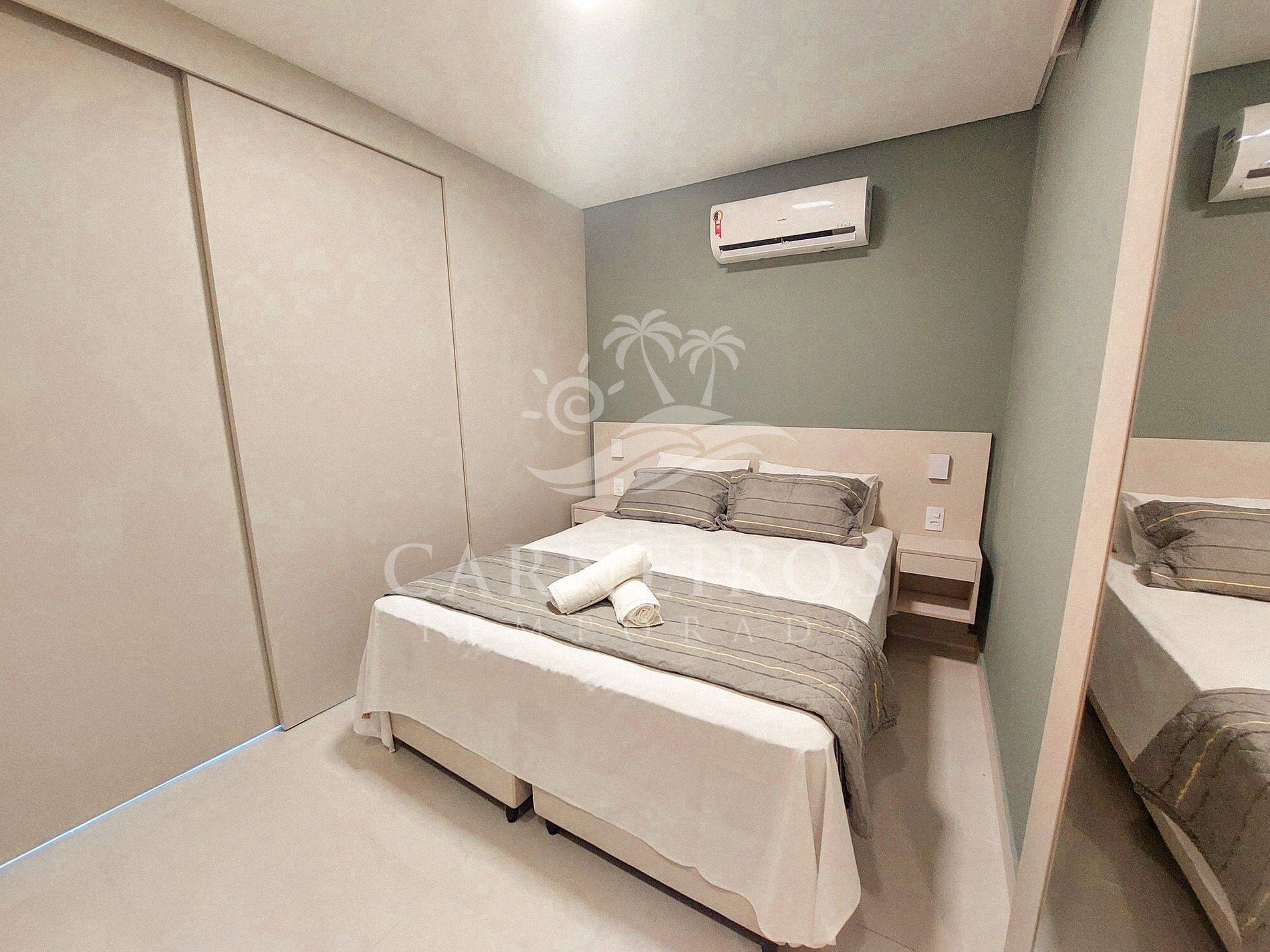 - Possui 1 cama de casal (acomoda até 02 pessoas), armários, TV e ar-condicionado Split.