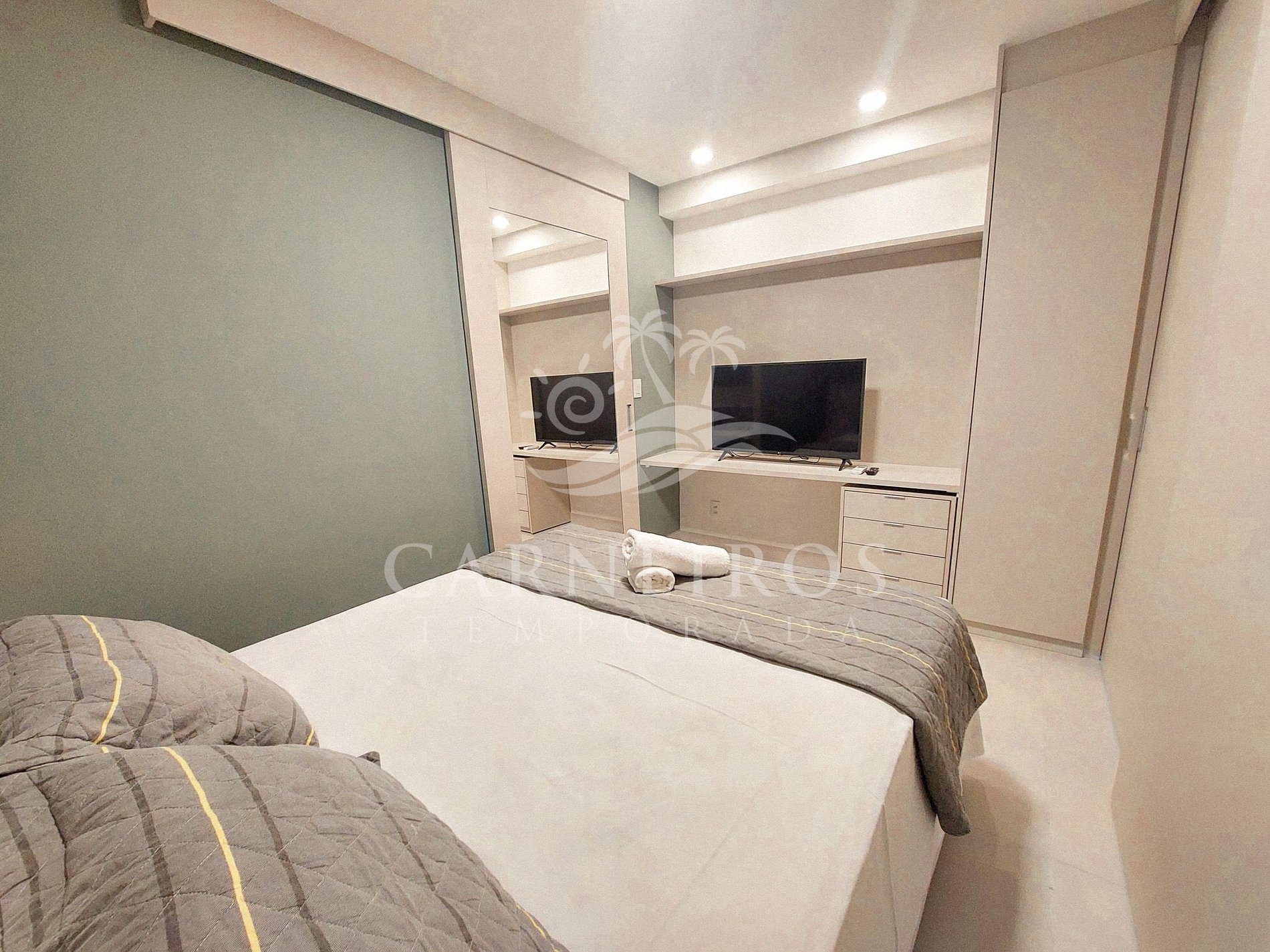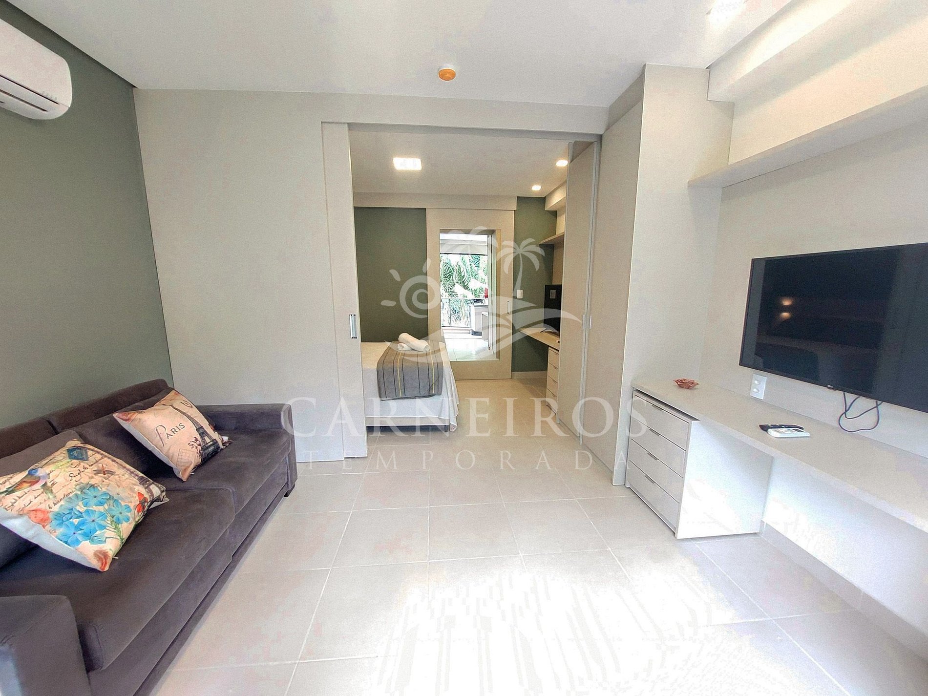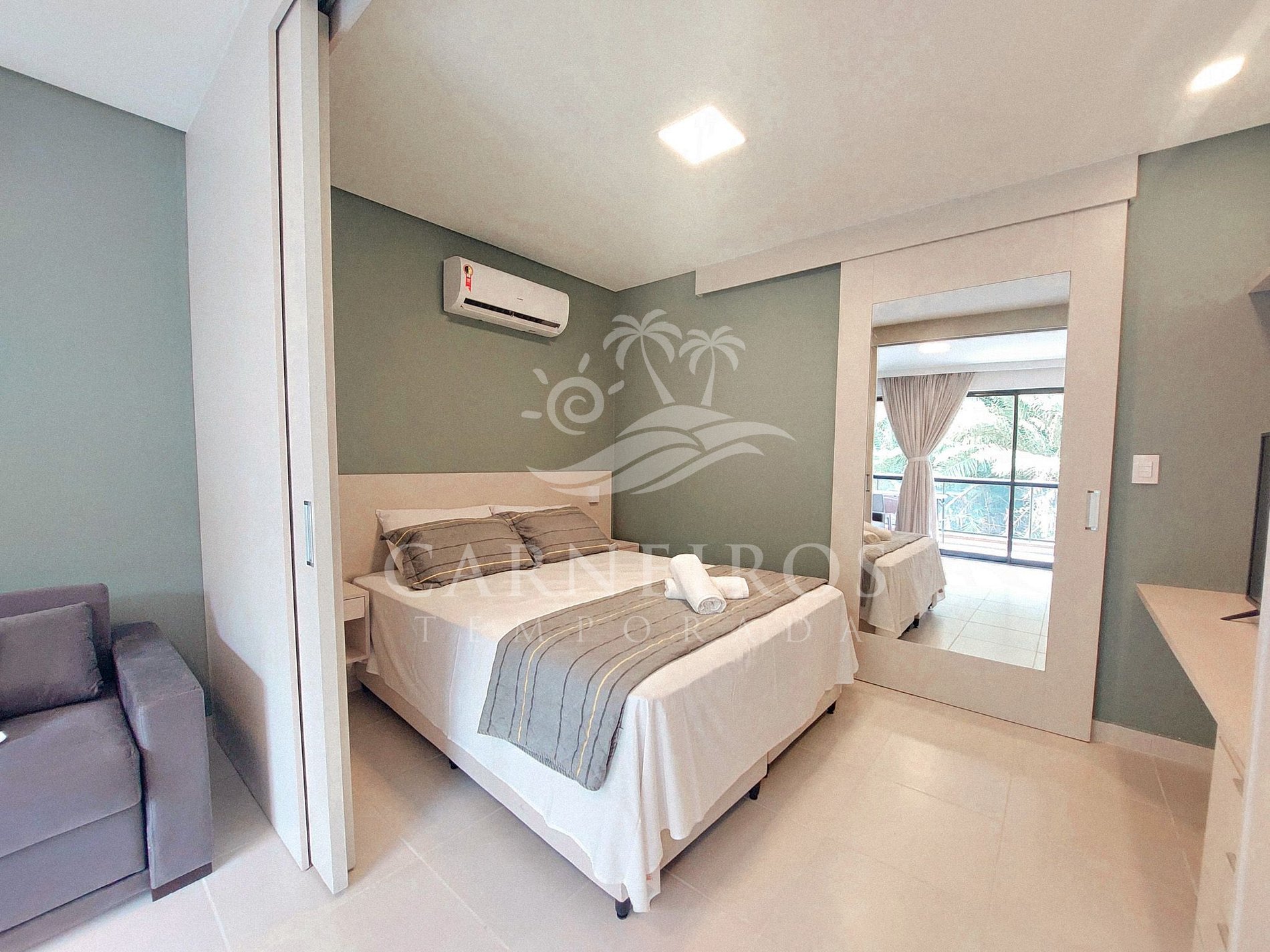- Possui 1 cama de casal (acomoda até 02 pessoas), armários, TV e ar-condicionado Split.