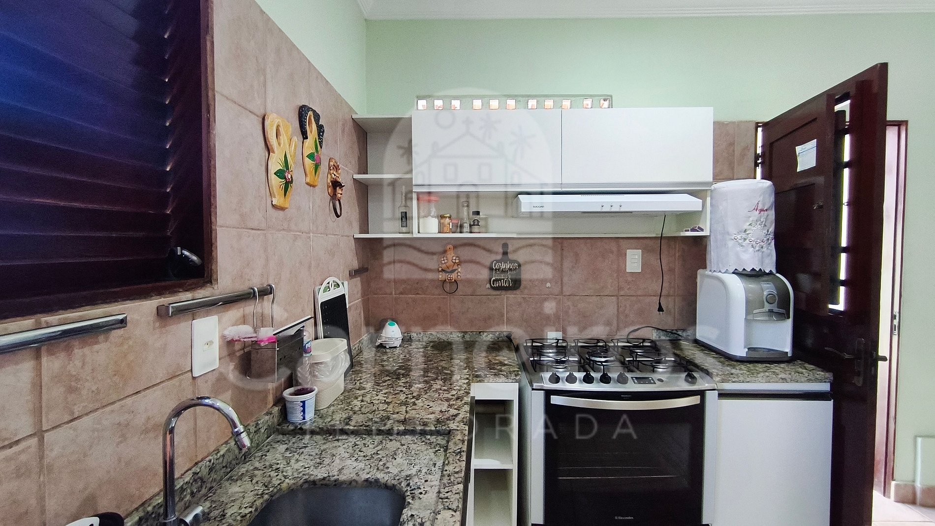 Projetada para oferecer conforto e funcionalidade, a sala possui uma decoração aconchegante e está equipada com sofá, poltronas e TV (com serviço de streaming). A cozinha é completa e contém todos equipamentos necessários, como louças, copos, panelas, talheres, fogão, geladeira, airfryer, micro-ondas, liquidificador, sanduicheira, mesa, cadeiras e diversos utensílios. A propriedade conta com quatro banheiros completos.