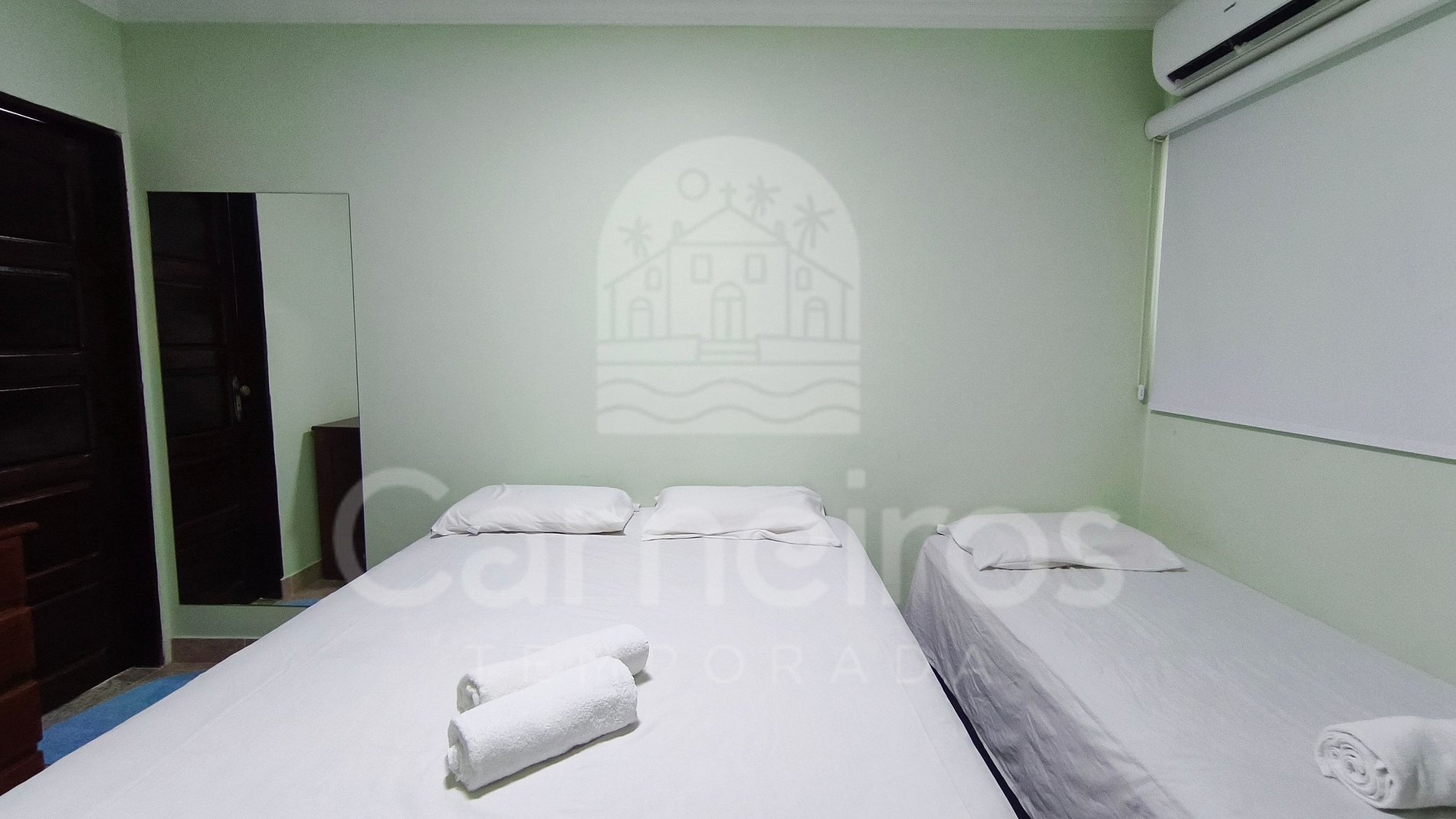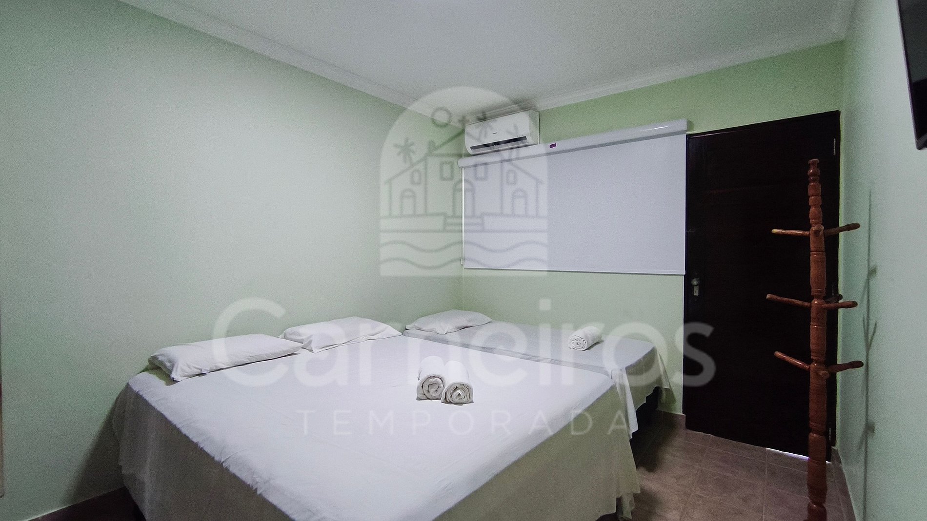 - Quarto 1: 01 cama box casal + 1 cama box solteiro, TV, ar-condicionado e banheiro;