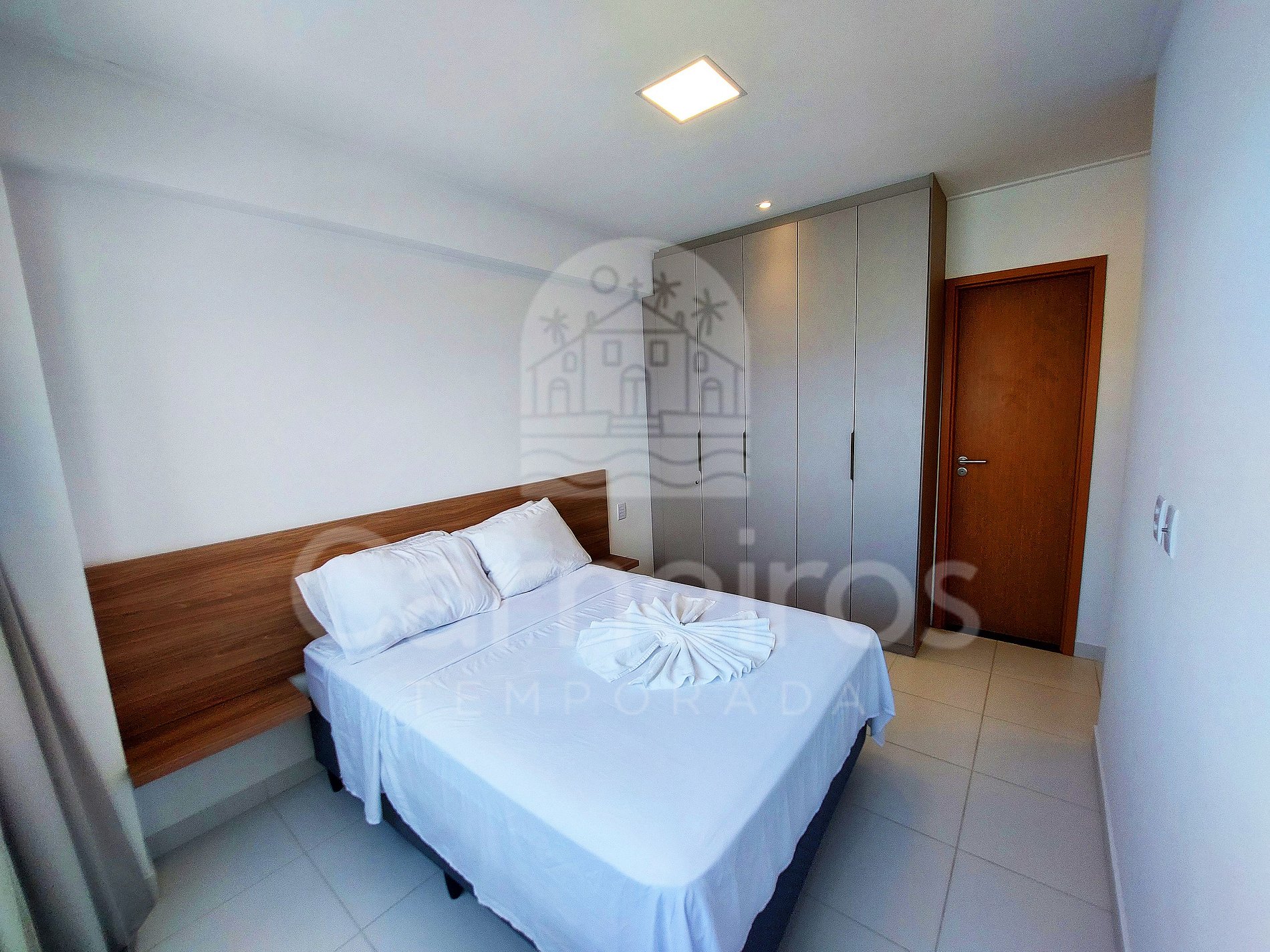 - Quarto 1: Suíte com cama box de casal, ar-condicionado e armário;