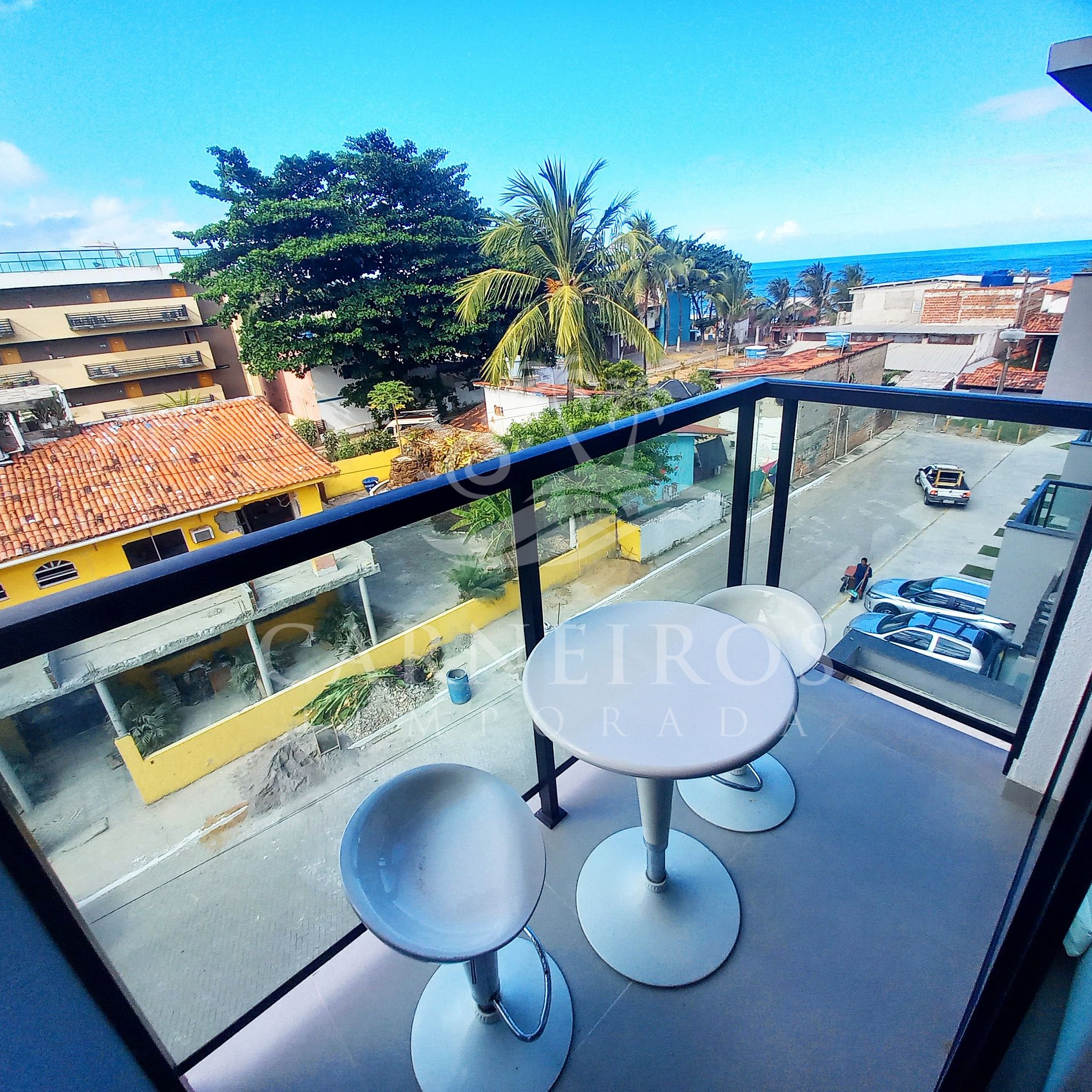 ✹ O flat se encontra no terceiro andar do prédio e possui uma linda varanda com vista para praia, com mesa e duas banquetas ✹