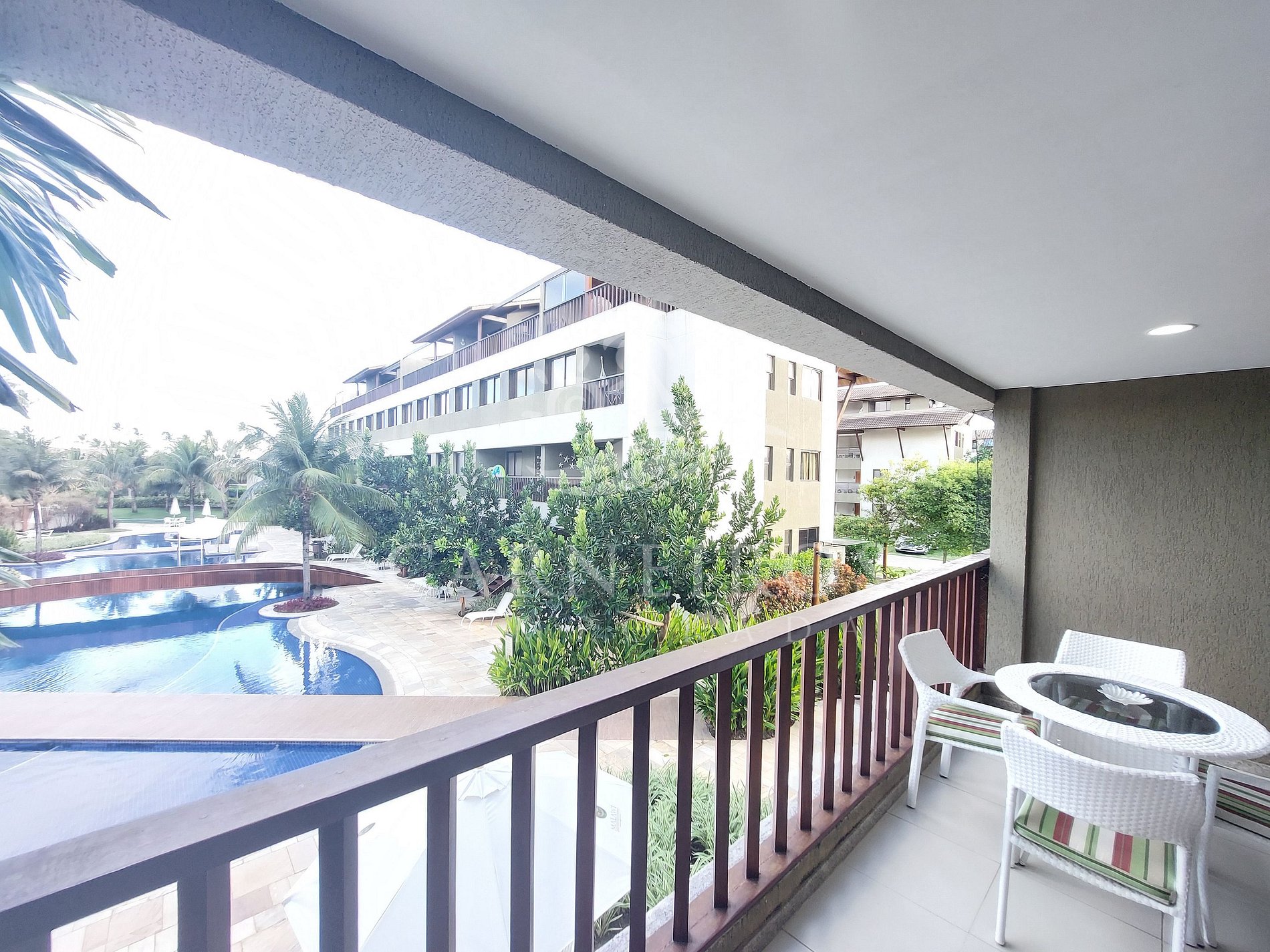 ✹ O flat se encontra no primeiro andar do prédio com vista para a piscina e possui uma linda varanda com uma mesa e 04 cadeiras ✹
