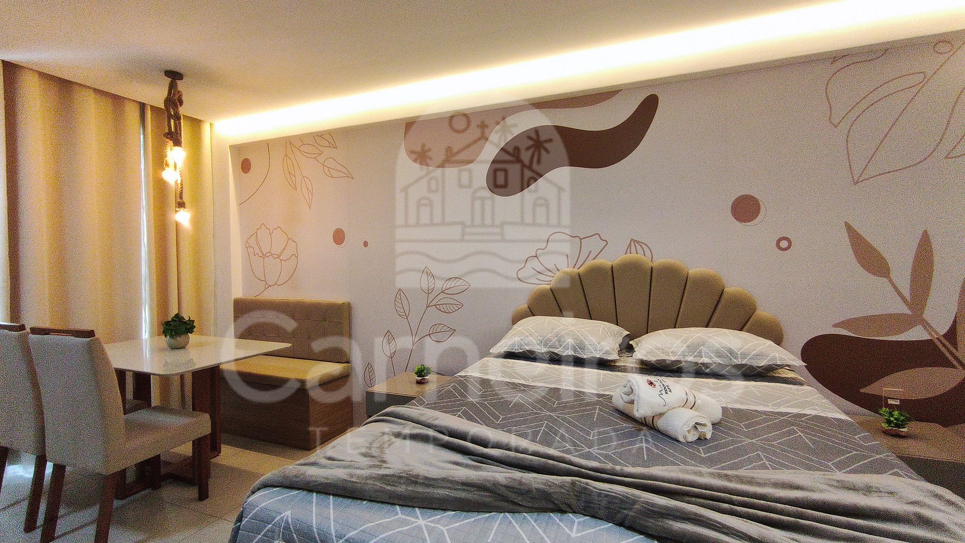 - Camas: 1 Cama Queen + 1 Sofá-cama;
