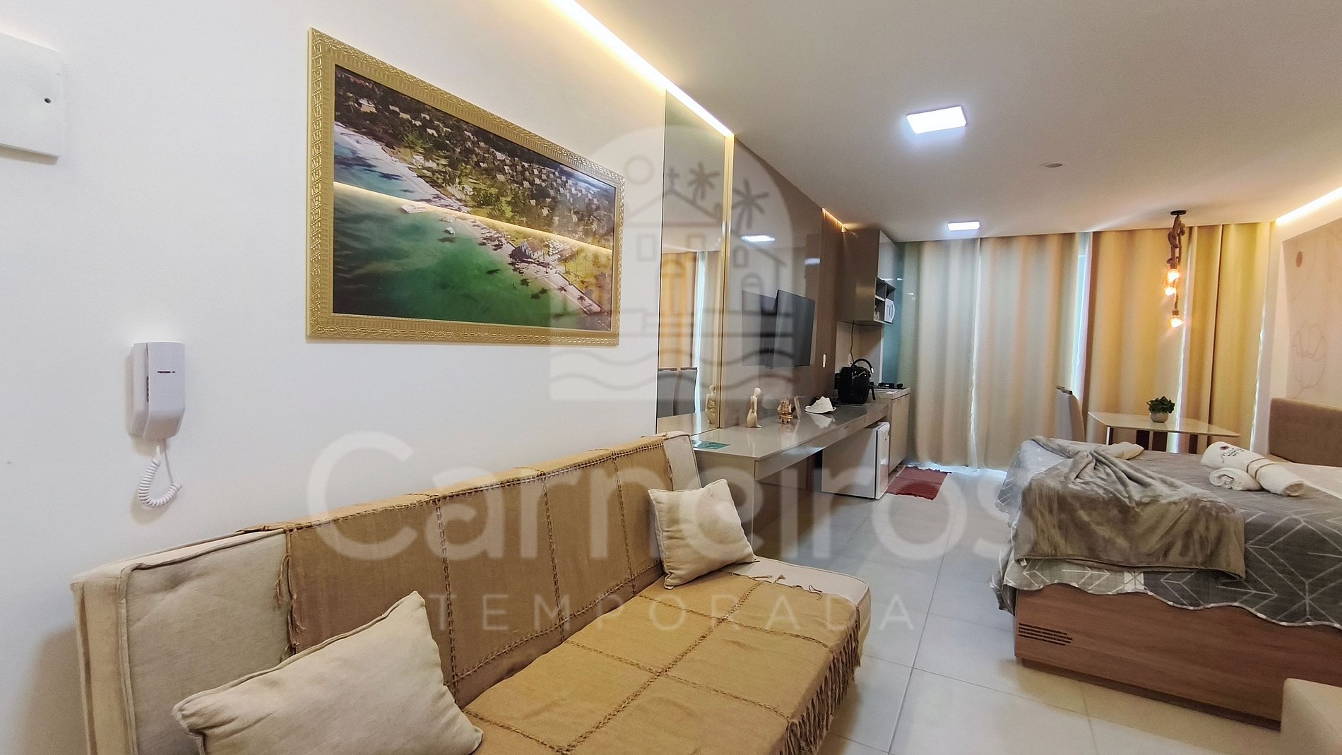 - Camas: 1 Cama Queen + 1 Sofá-cama;