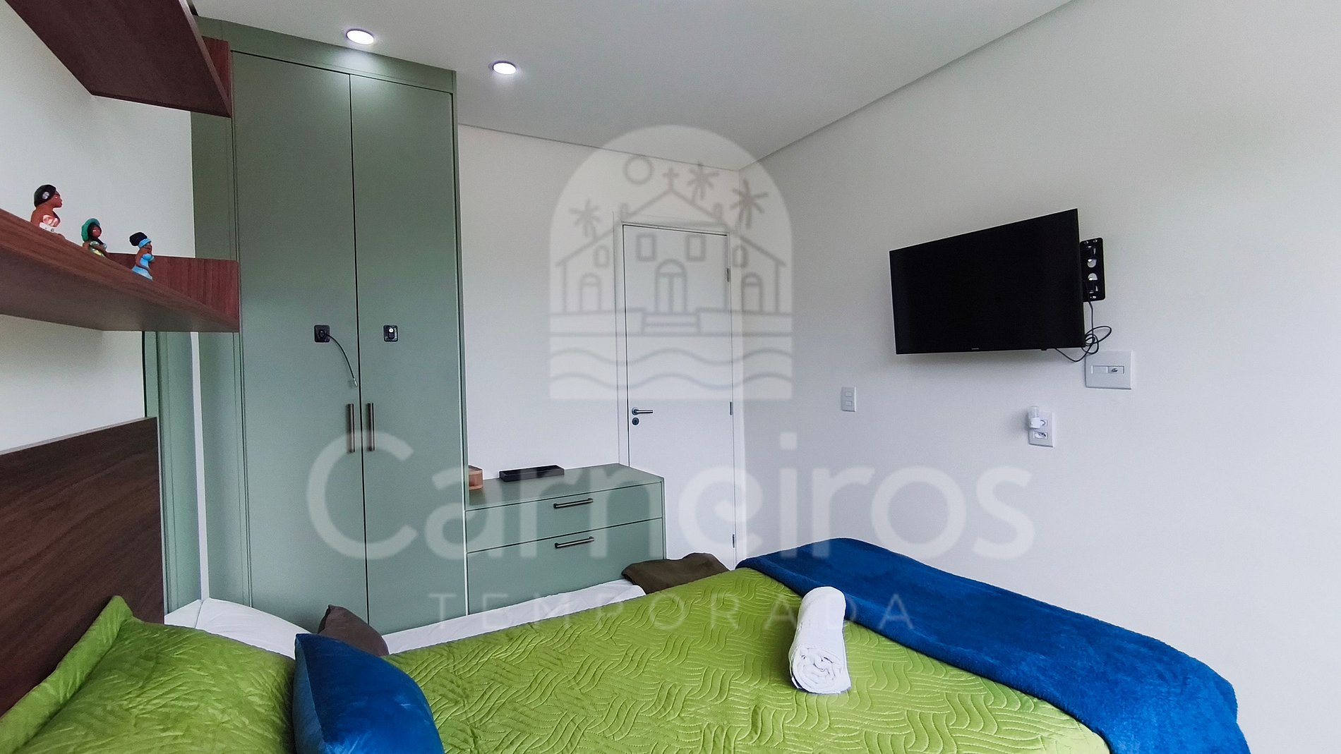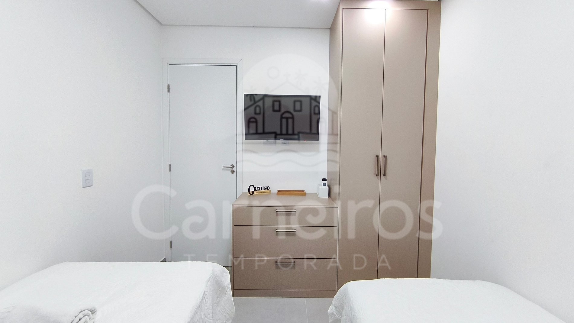 - Quarto 02: 1 cama box solteiro + 1 bicama de solteiro, ar-condicionado, armário e TV;