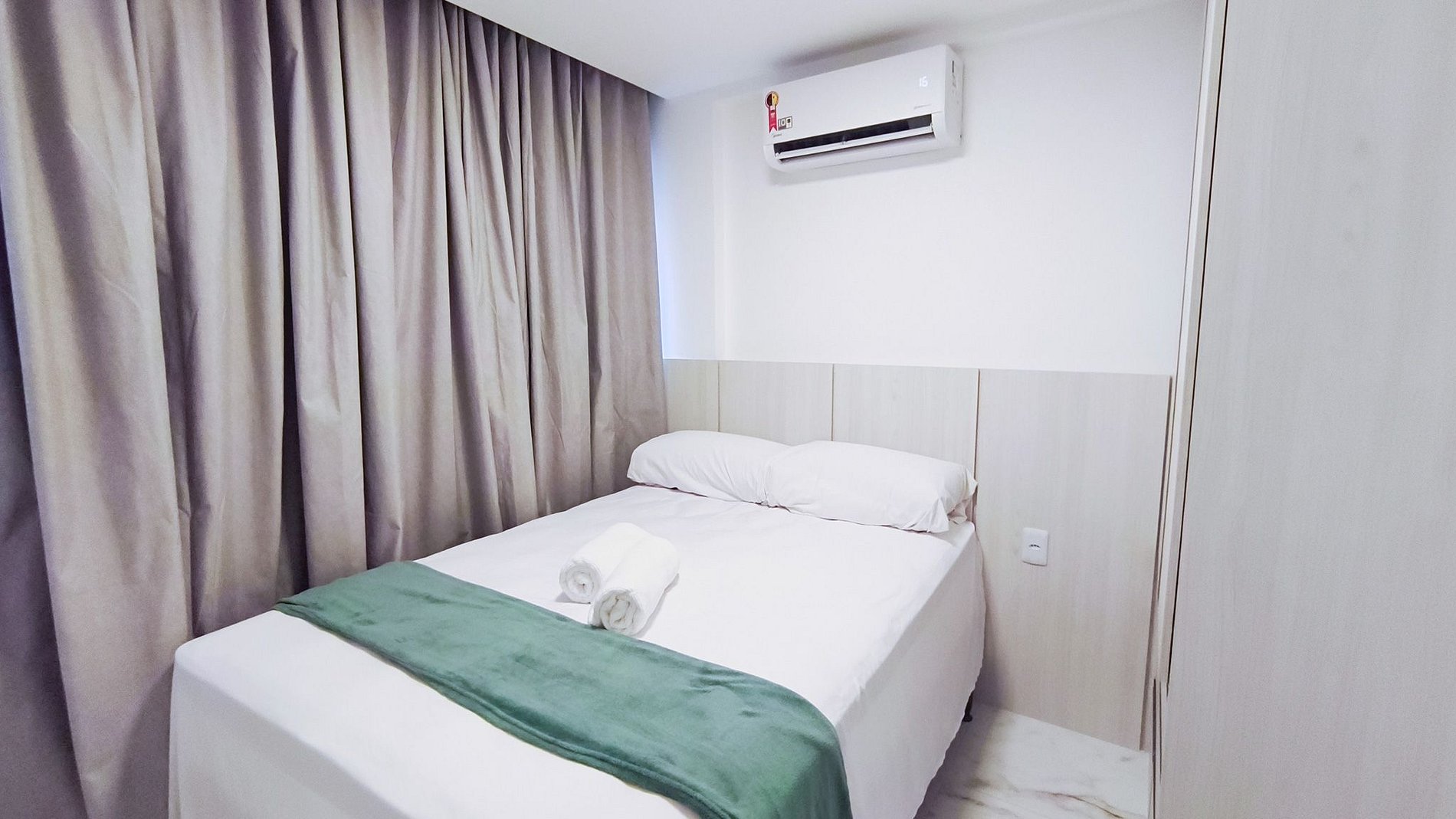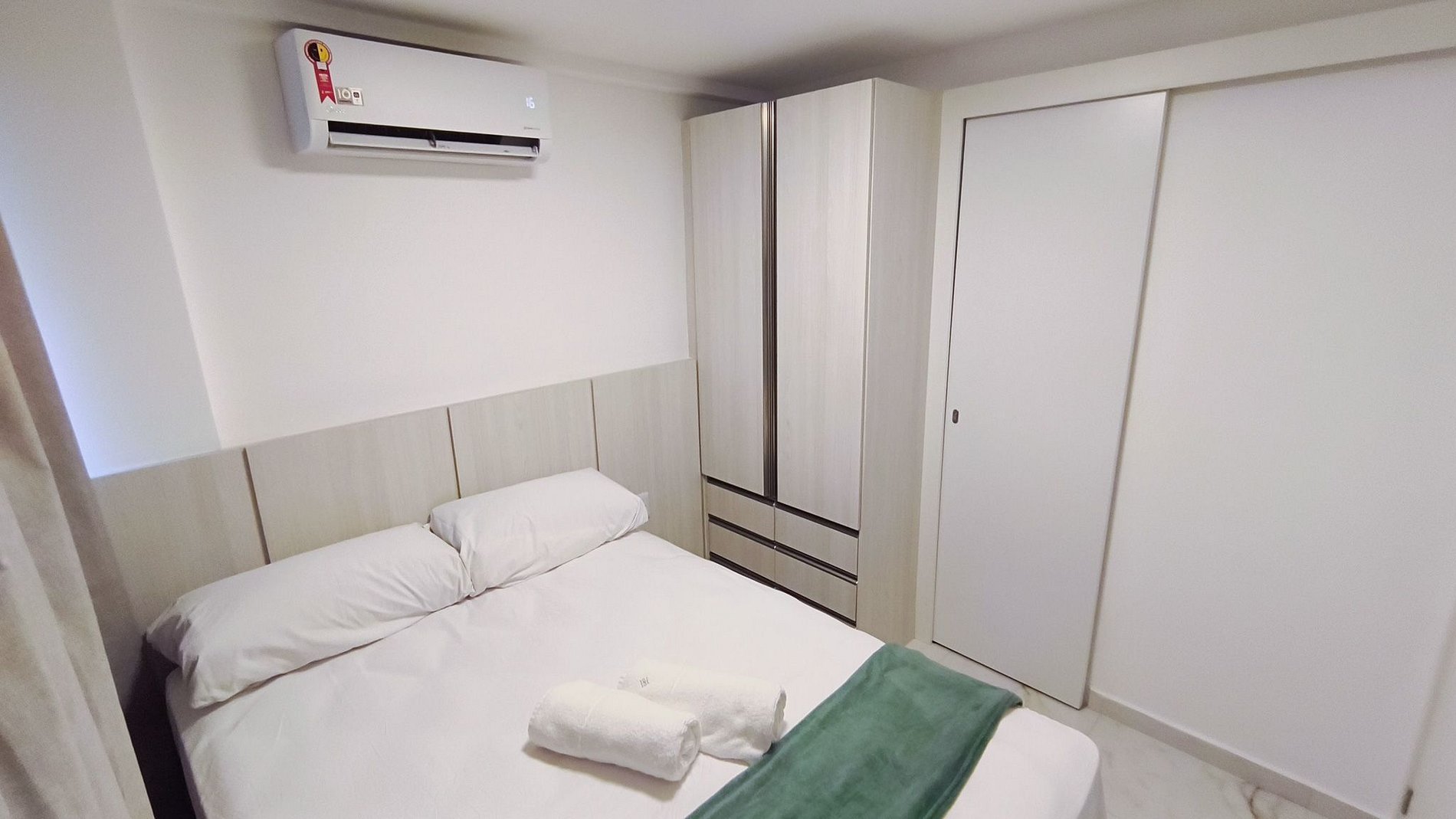 - Quarto: 01 cama de casal, armário para bagagens e ar-condicionado.