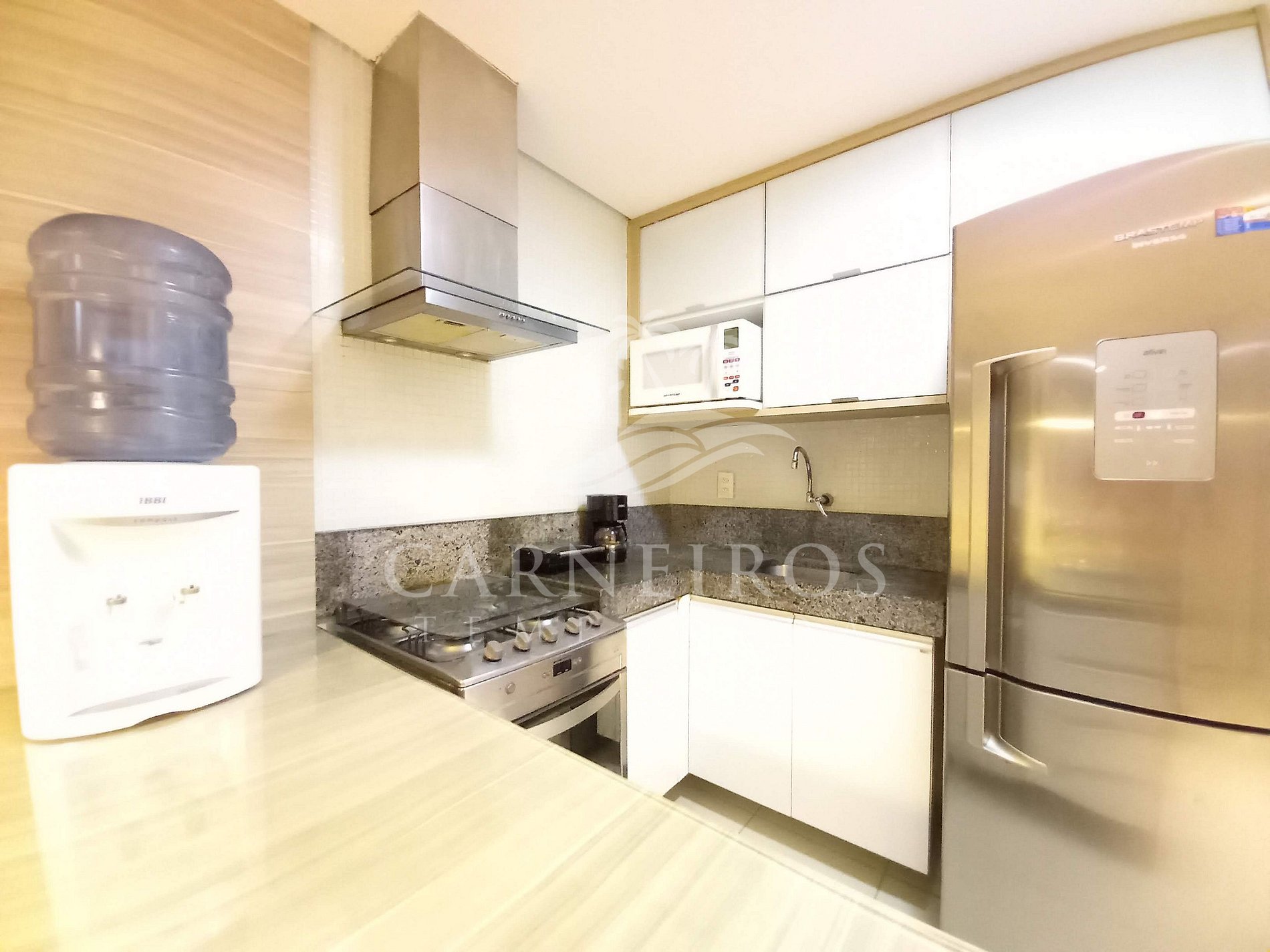 A sala de estar com decoração agradável conta com TV, ar-condicionado e sofá-cama de casal. A cozinha é completa e possui itens como louça, copos, panelas, talheres, sanduicheira, micro-ondas, fogão 04 bocas, gelágua, geladeira, liquidificador e diversos utensílios. Além disso, contém área para refeições com mesa e 6 cadeiras. O flat possui 02 banheiros.