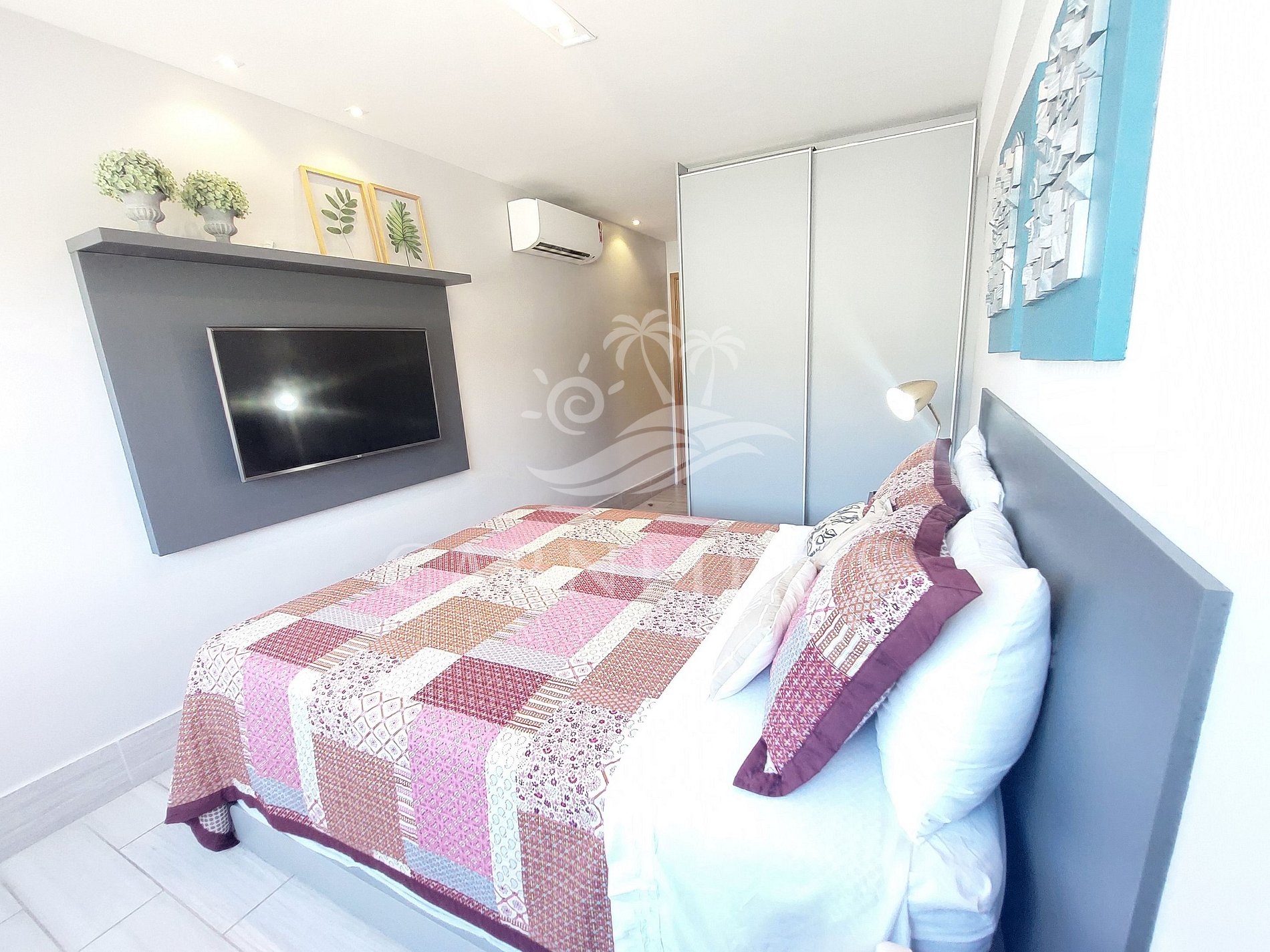 - Suíte 01: 1 cama de casal com 02 bicamas solteiro (acomoda até 4 pessoas), vista privilegiada das piscinas e praia de Muro Alto, TV, armário, ar-condicionado e o banheiro;