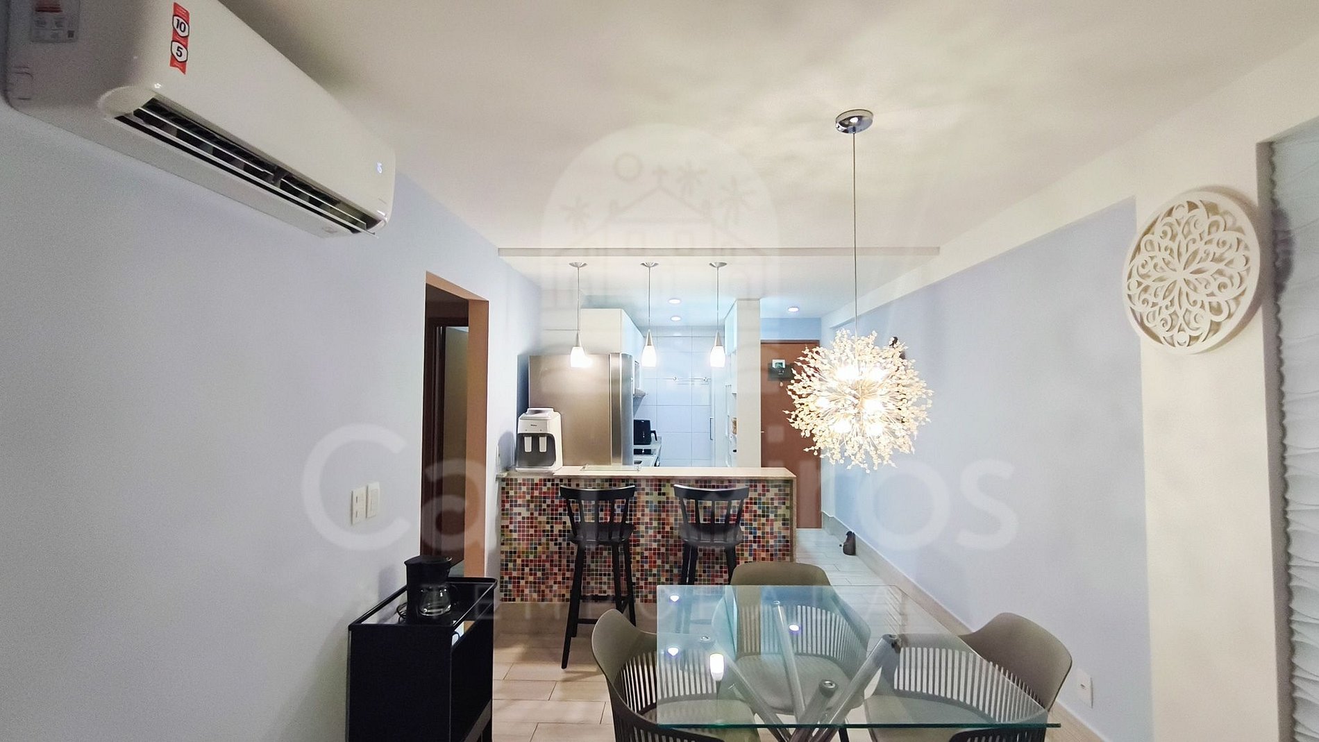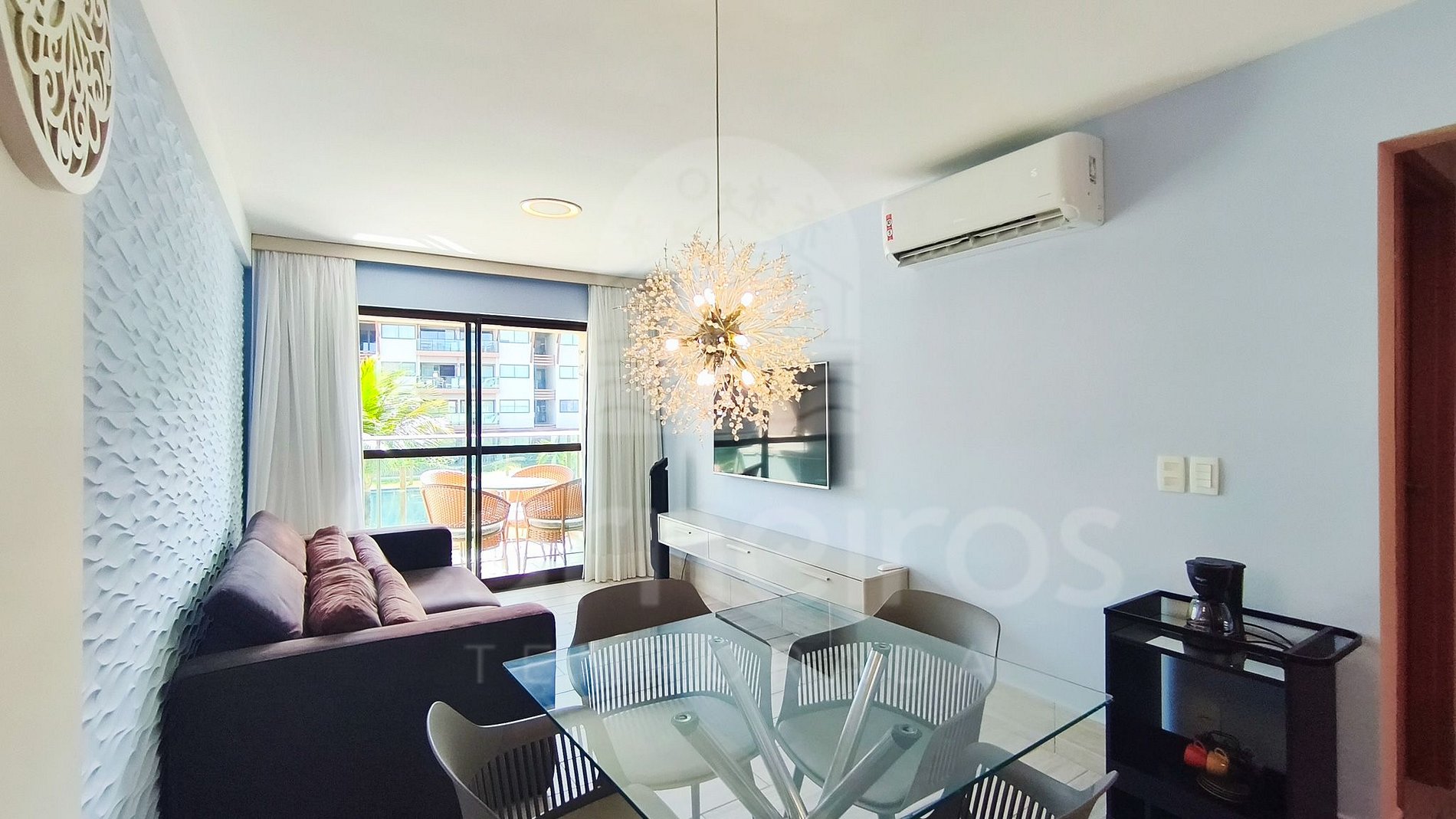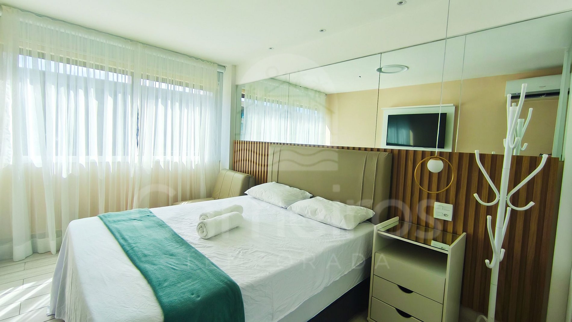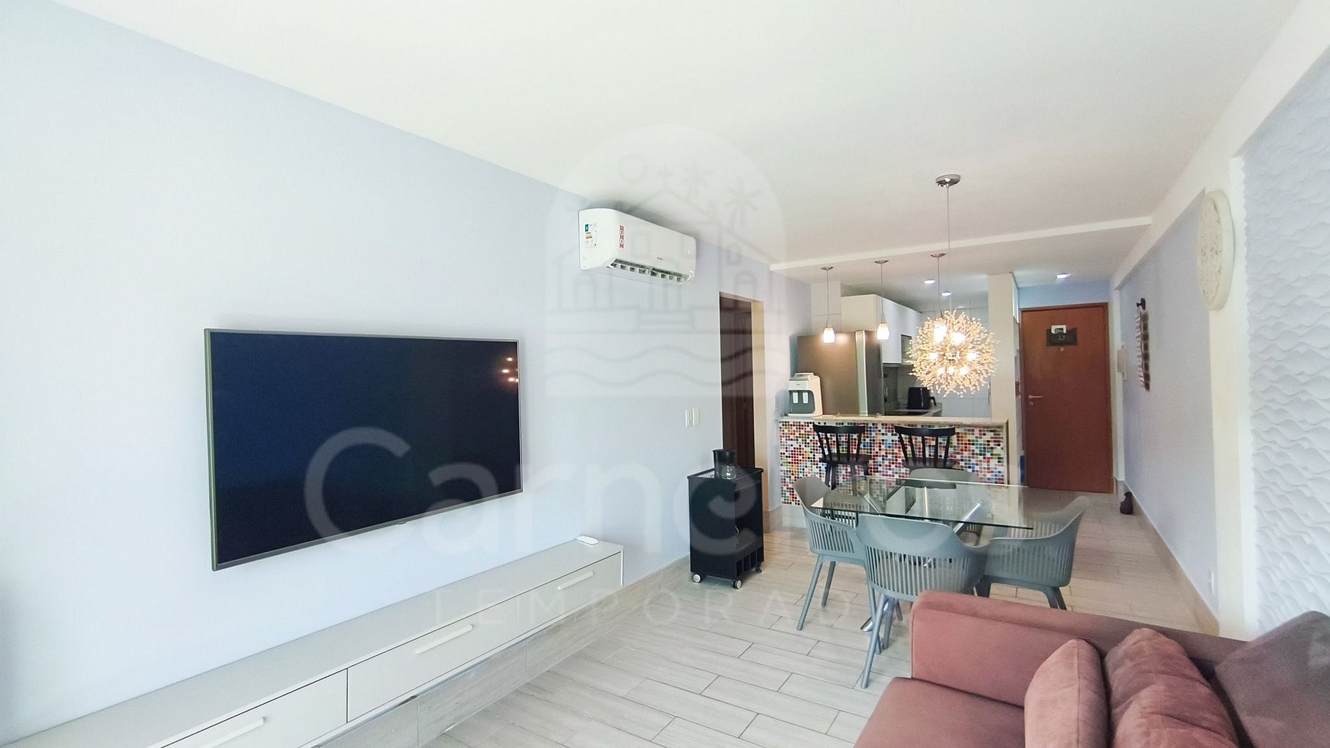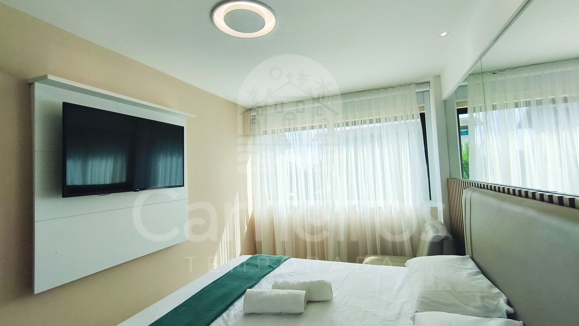 - Sala: Sofá-cama casal, TV e ar-condicionado;