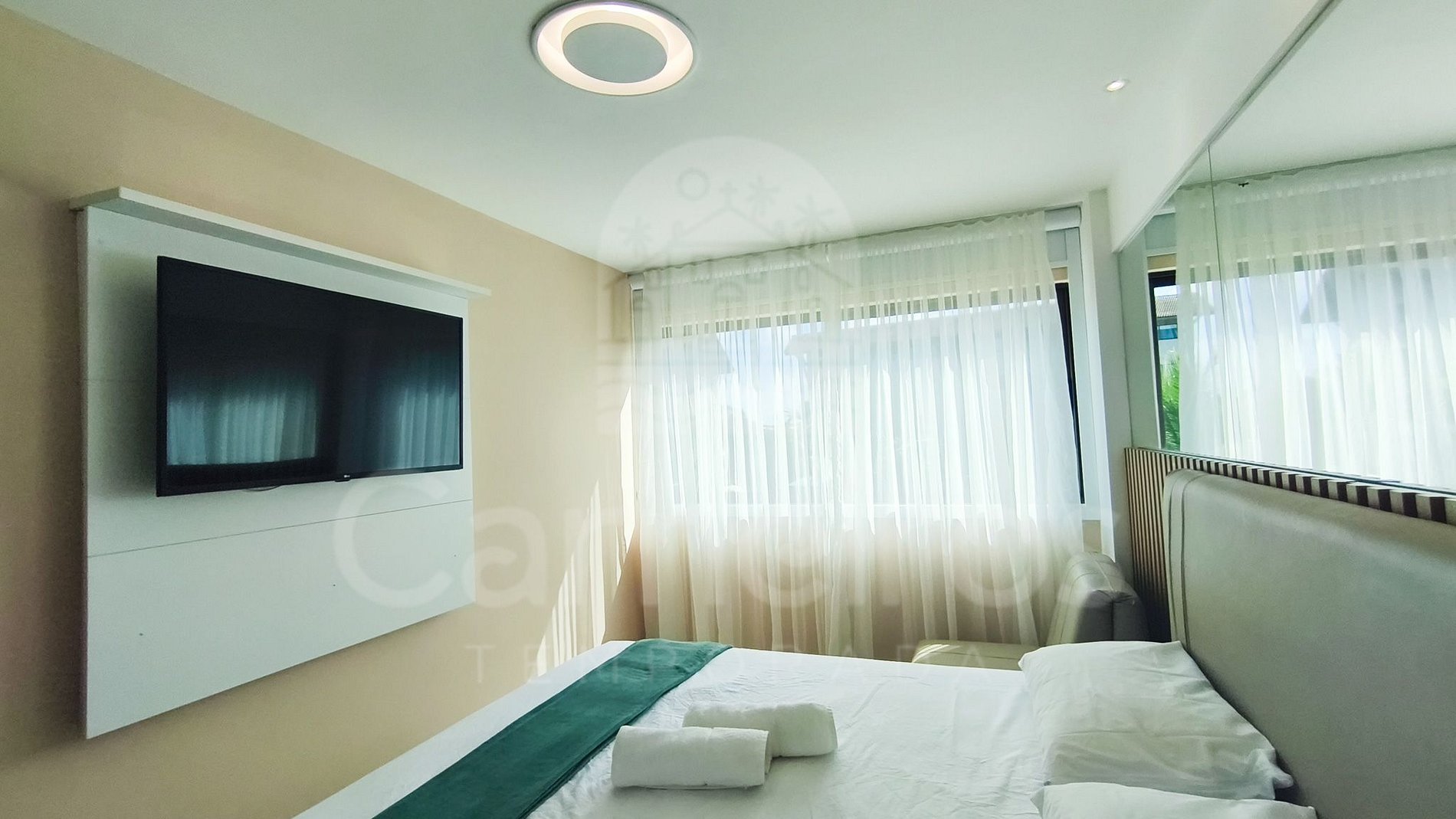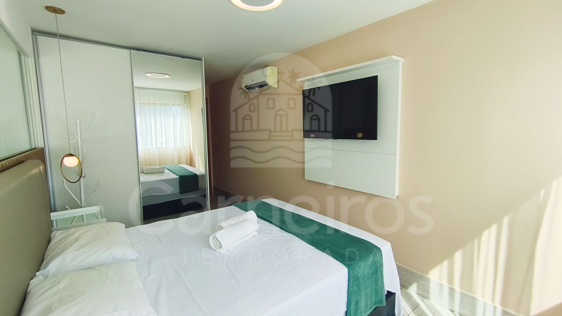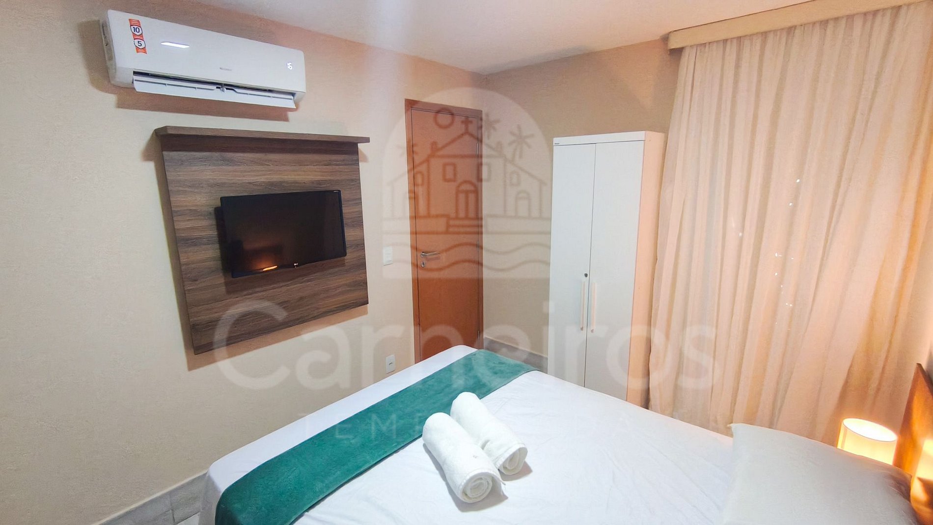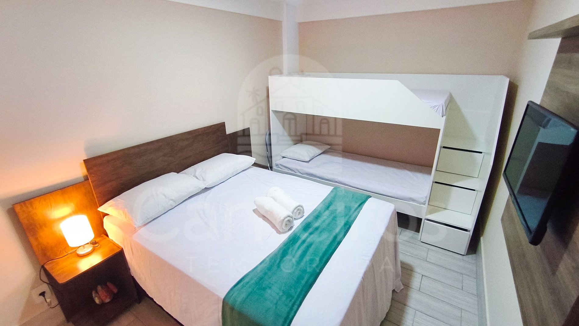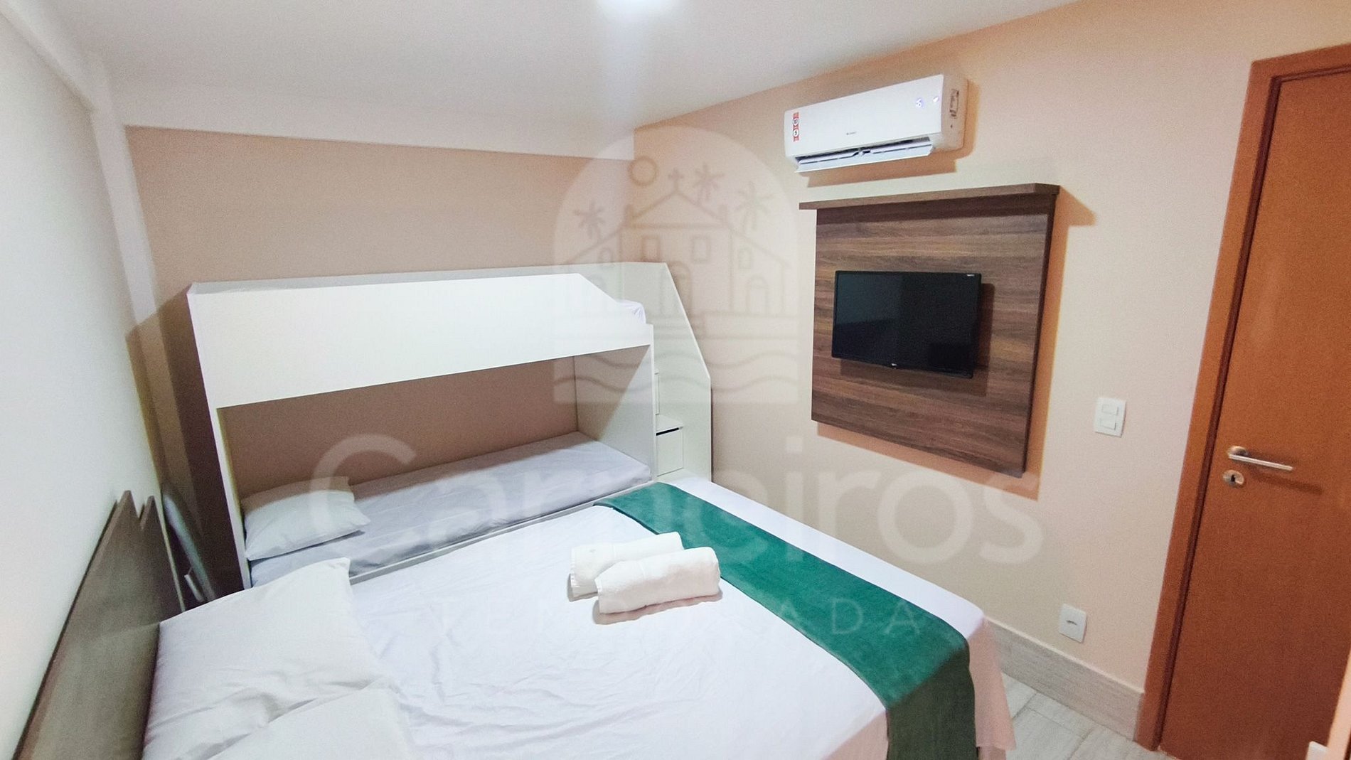 - Quarto: 1 cama de casal + 1 beliche, TV e ar-condicionado.