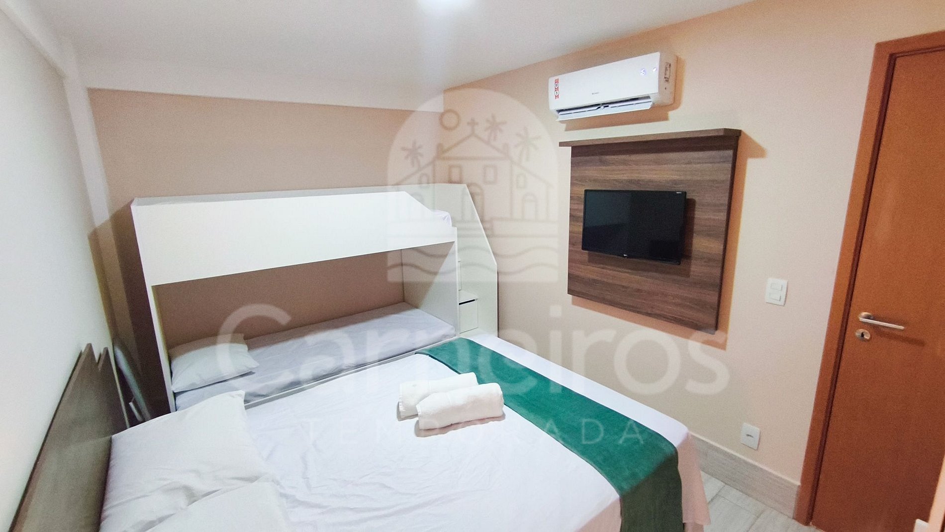 - Quarto: 1 cama de casal + 1 beliche, TV e ar-condicionado.