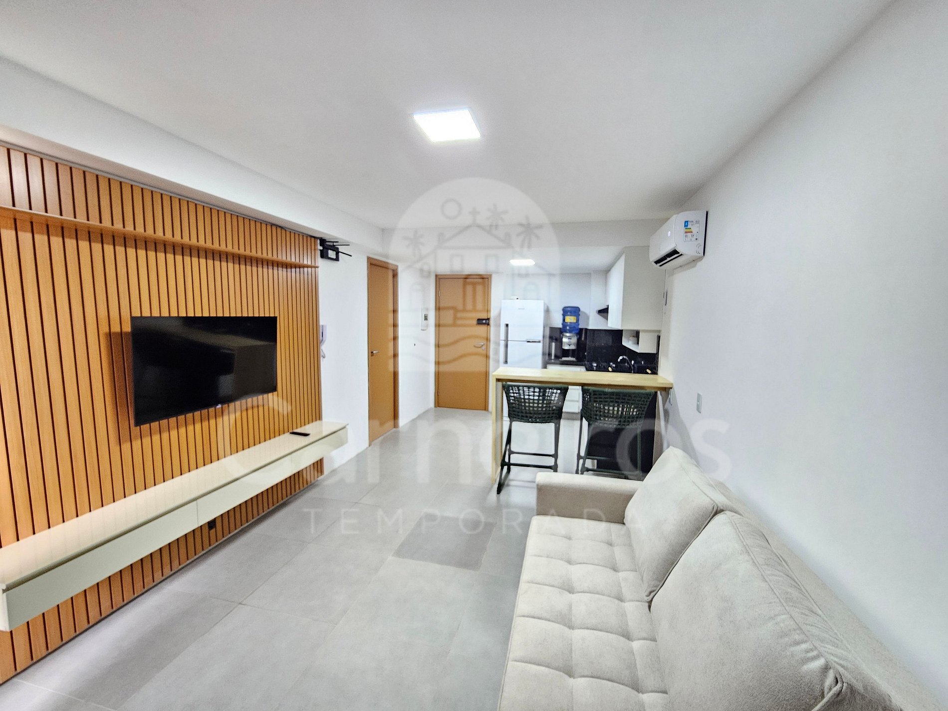 O ambiente possui decoração aconchegante. O imóvel possui varanda, quarto, cozinha e banheiro. A cozinha é completa com geladeira, fogão, airfryer, sanduicheira, cafeteira elétrica, liquidificador, entre outros utensílios. Também possui TV (com serviço de streaming), ar-condicionado e um banheiro completo.