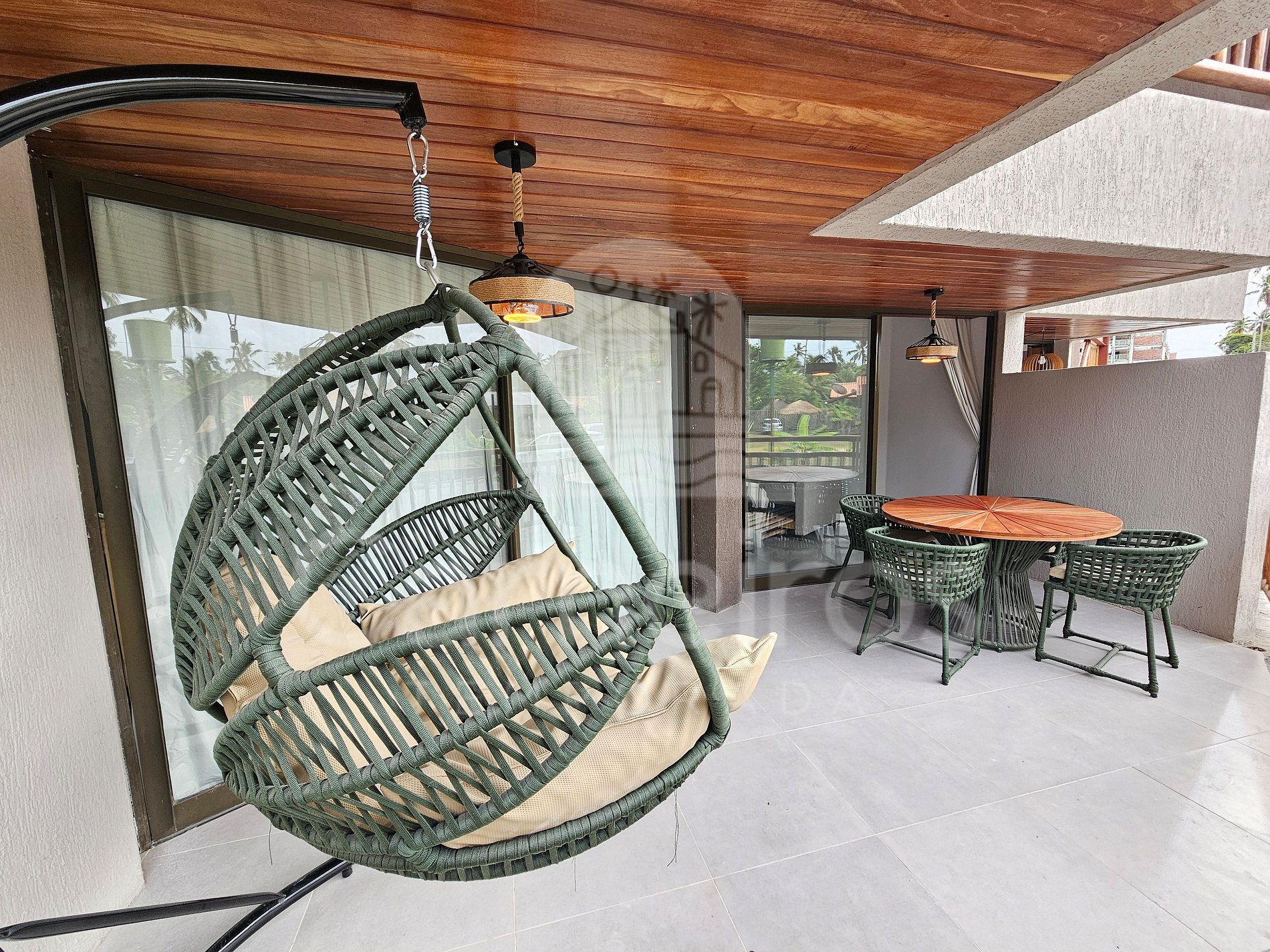 ✹O flat está localizado no térreo e possui uma linda varanda com mesa e cadeiras ✹