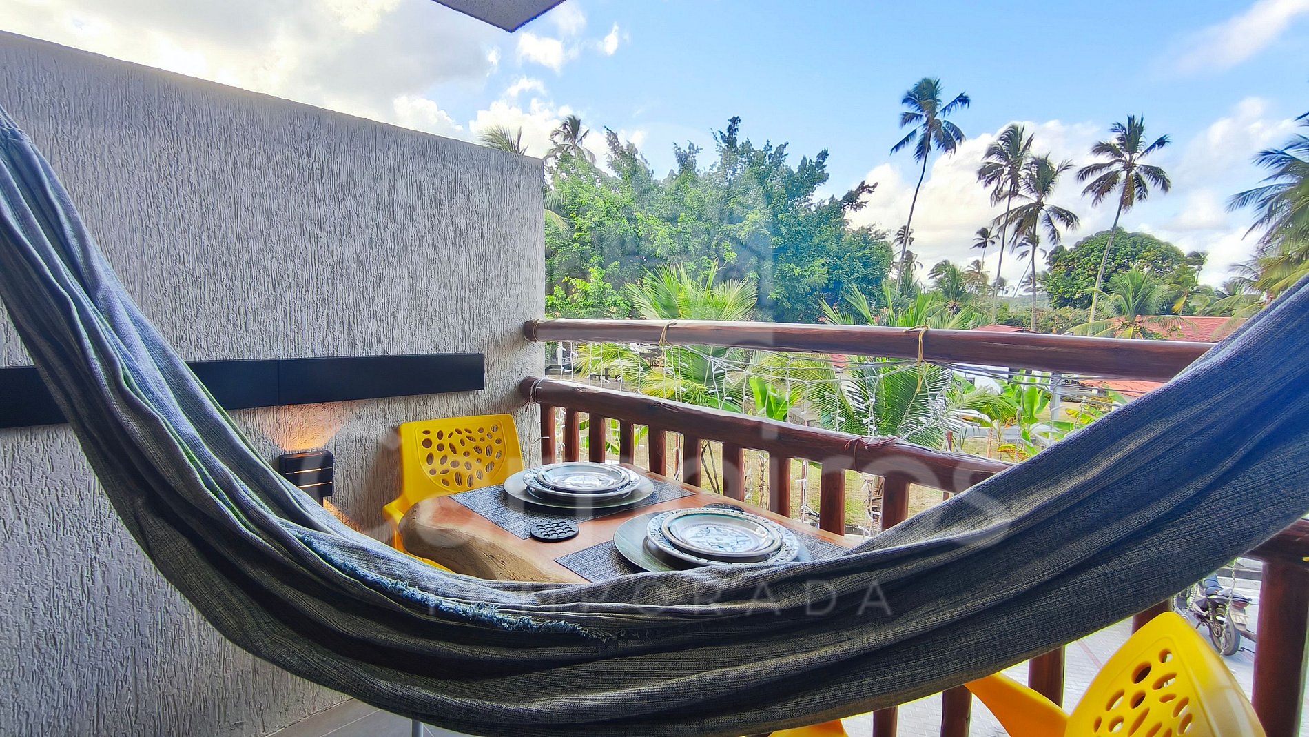 ✹O flat está localizado no segundo andar, possui vista para os coqueiros da praia e o mar, e conta com uma aconchegante varanda com mesa e cadeiras ✹