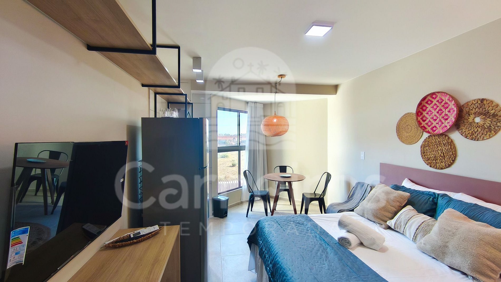 - Studio: 1 cama de casal, TV e ar-condicionado.
