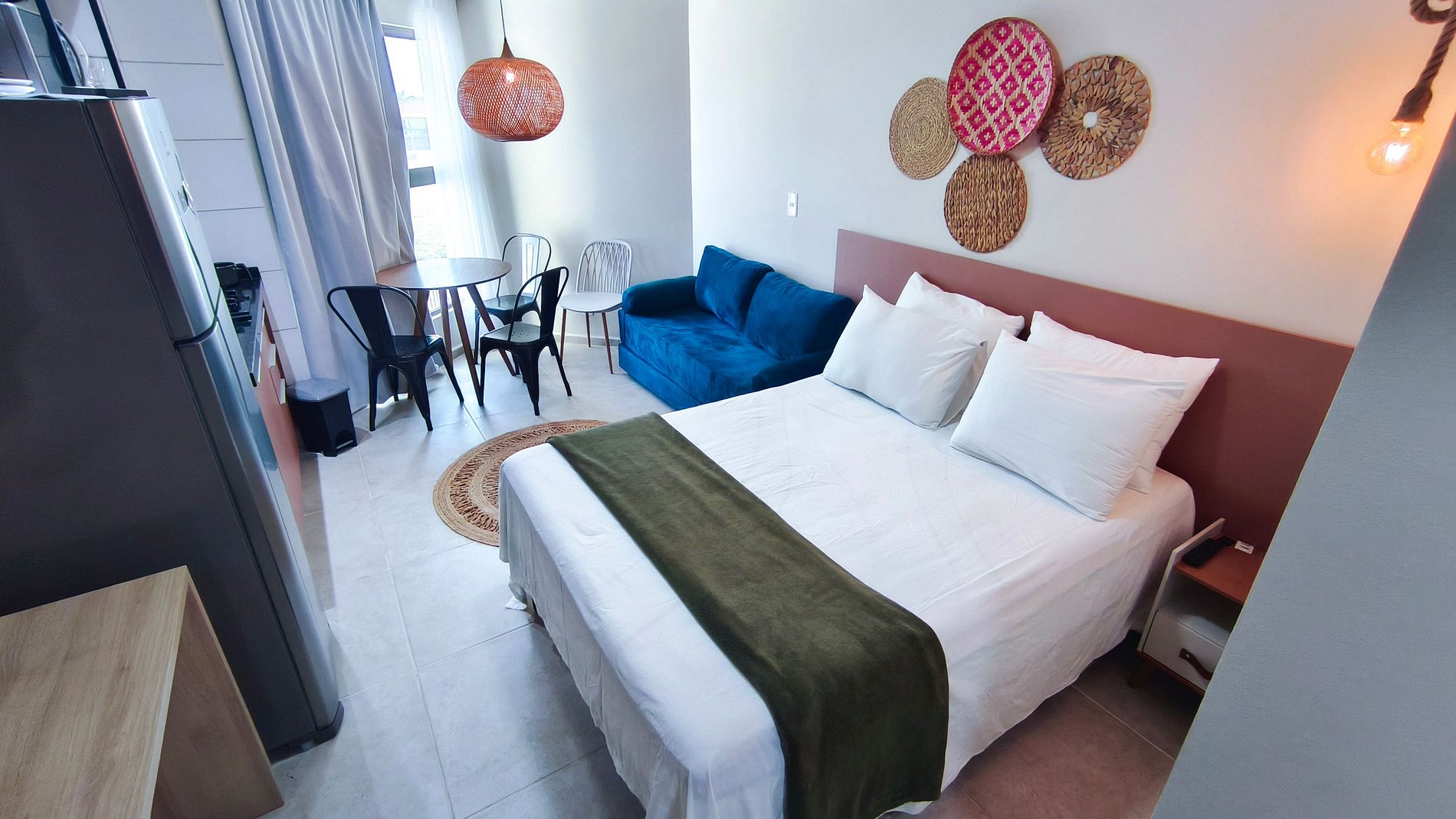- Studio: 1 cama de casal, 1 Sofá-cama casal, TV e ar-condicionado.