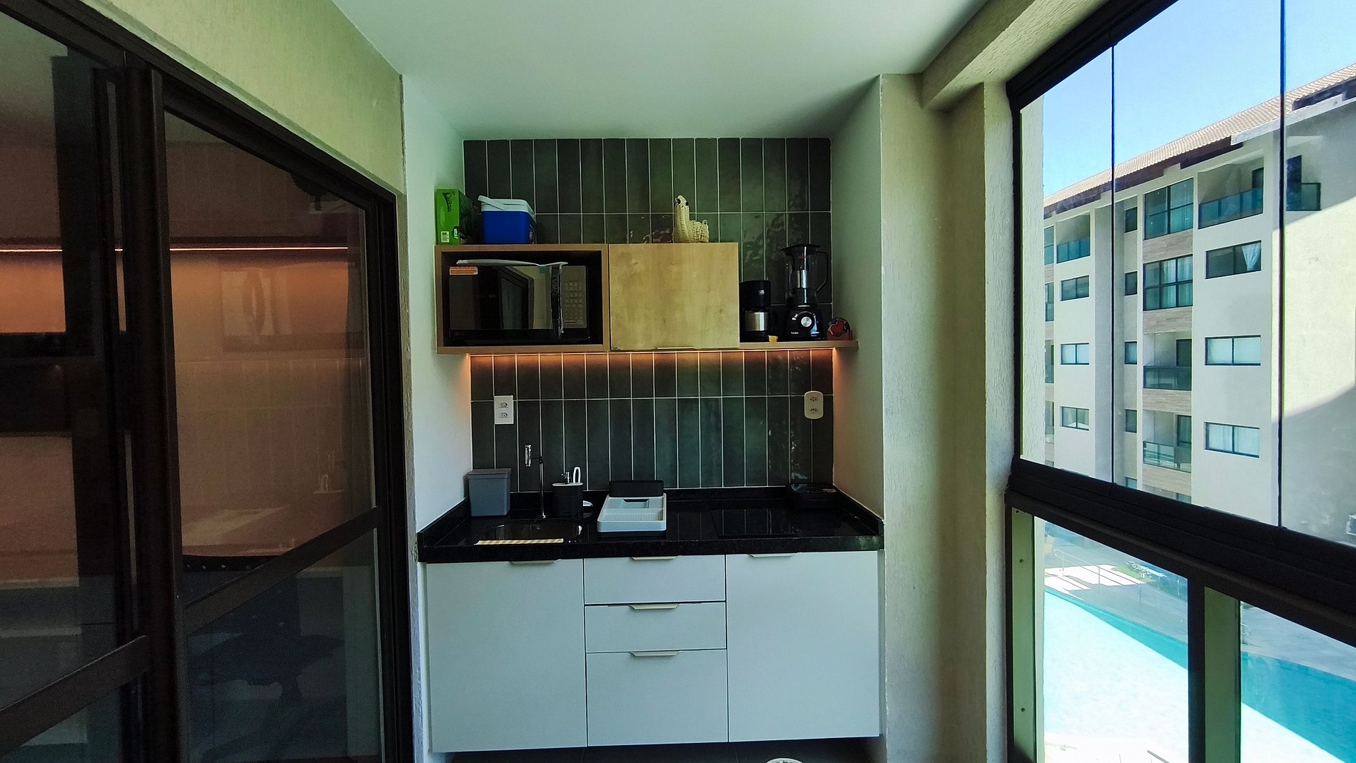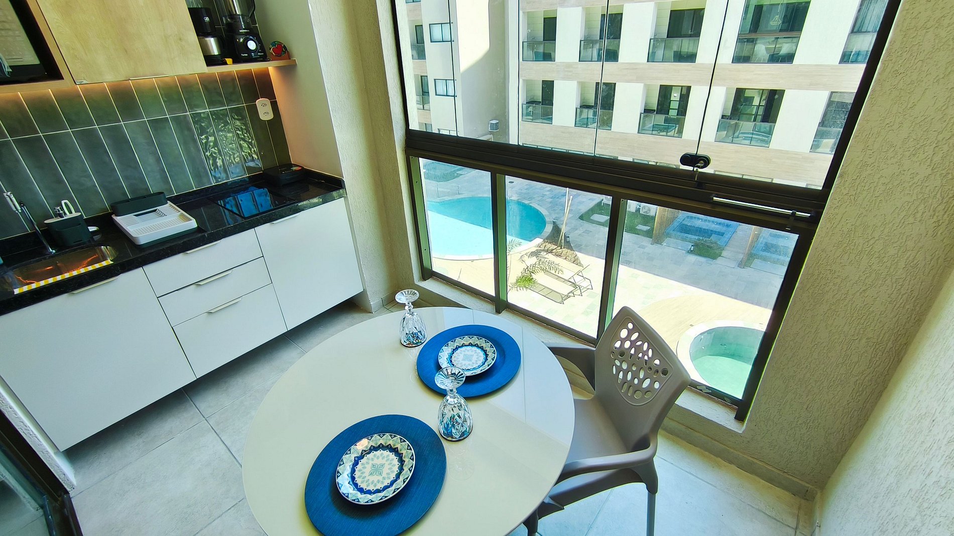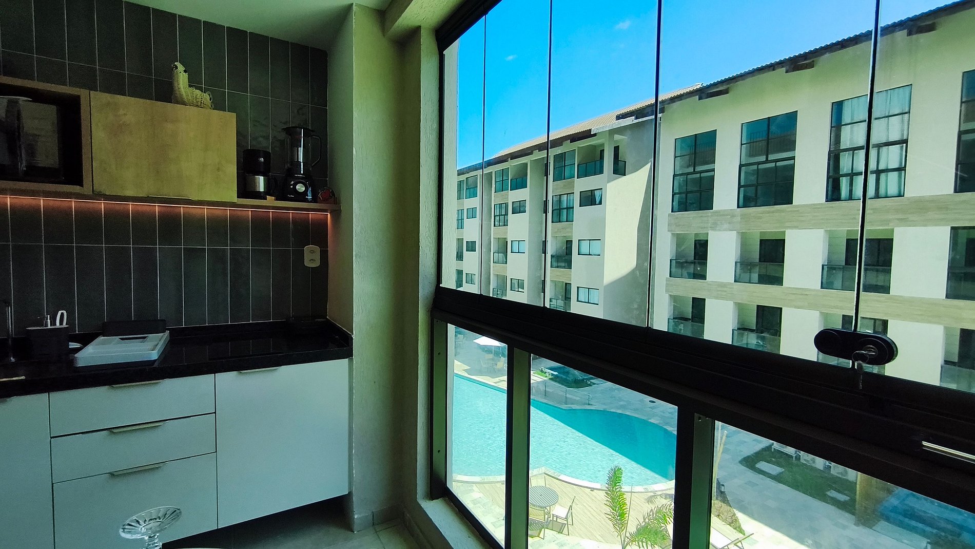 O imóvel oferece decoração contemporânea e é totalmente climatizado, garantindo conforto em qualquer estação. A varanda fechada com cortina de vidro proporciona uma vista incrível das piscinas, garantindo integração com a área externa sem abrir mão do conforto. Dispõe de internet de alta velocidade e TV por assinatura, além de um ambiente planejado com móveis sob medida e espaço para escritório, ideal para quem deseja unir lazer e praticidade.