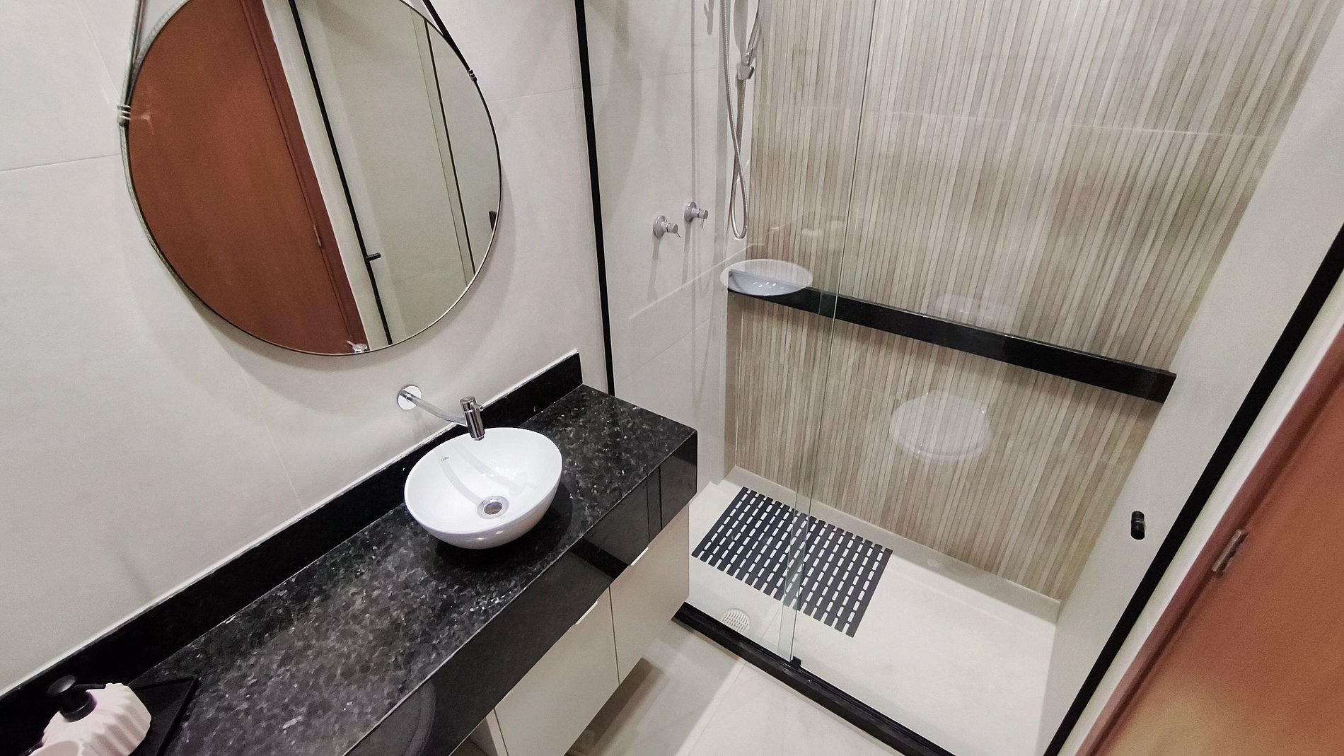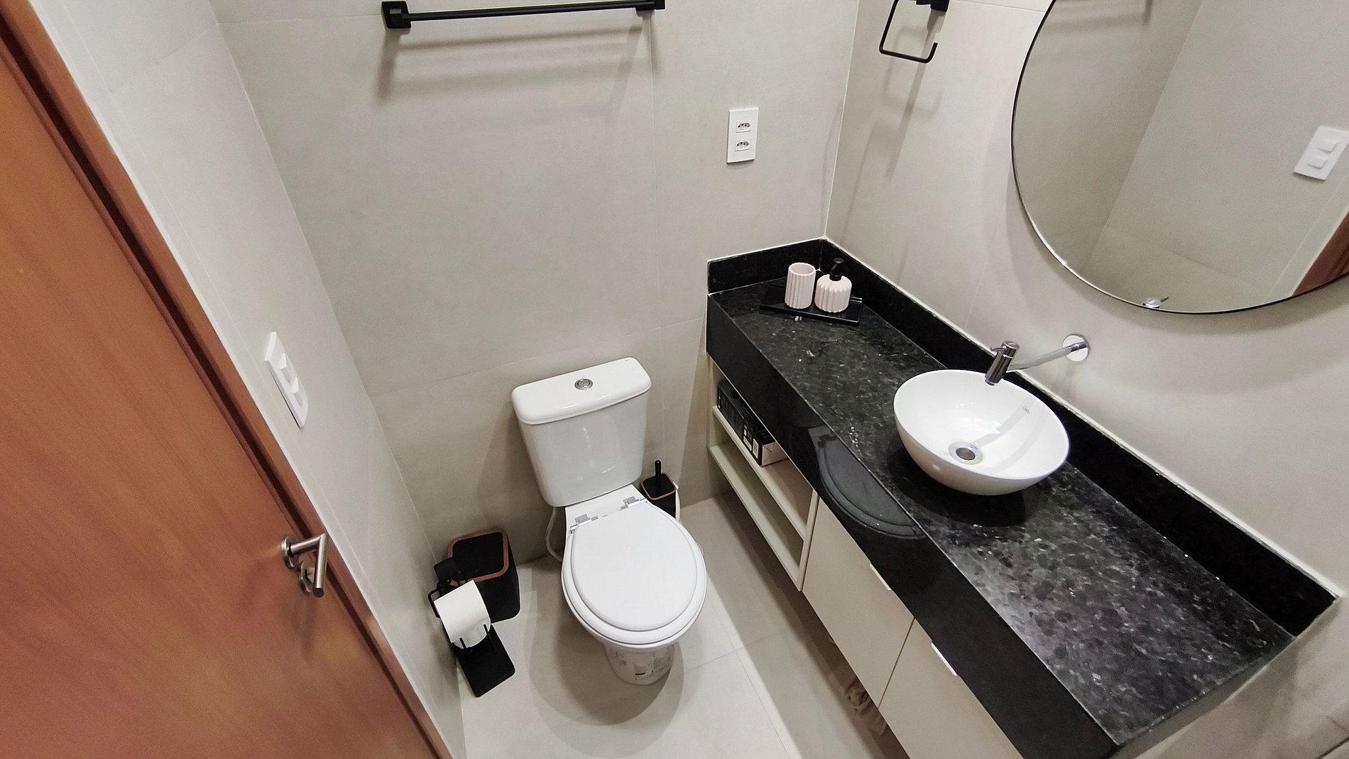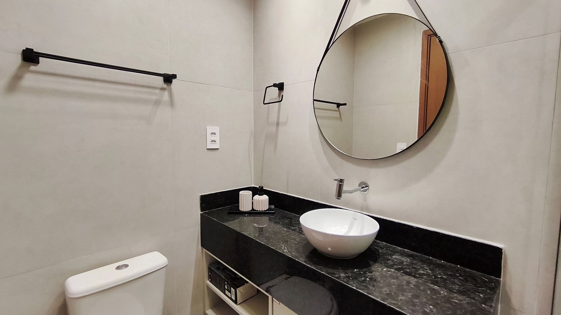 O imóvel oferece decoração contemporânea e é totalmente climatizado, garantindo conforto em qualquer estação. A varanda fechada com cortina de vidro proporciona uma vista incrível das piscinas, garantindo integração com a área externa sem abrir mão do conforto. Dispõe de internet de alta velocidade e TV por assinatura, além de um ambiente planejado com móveis sob medida e espaço para escritório, ideal para quem deseja unir lazer e praticidade.