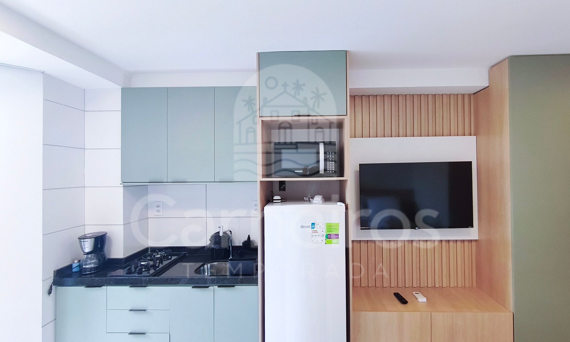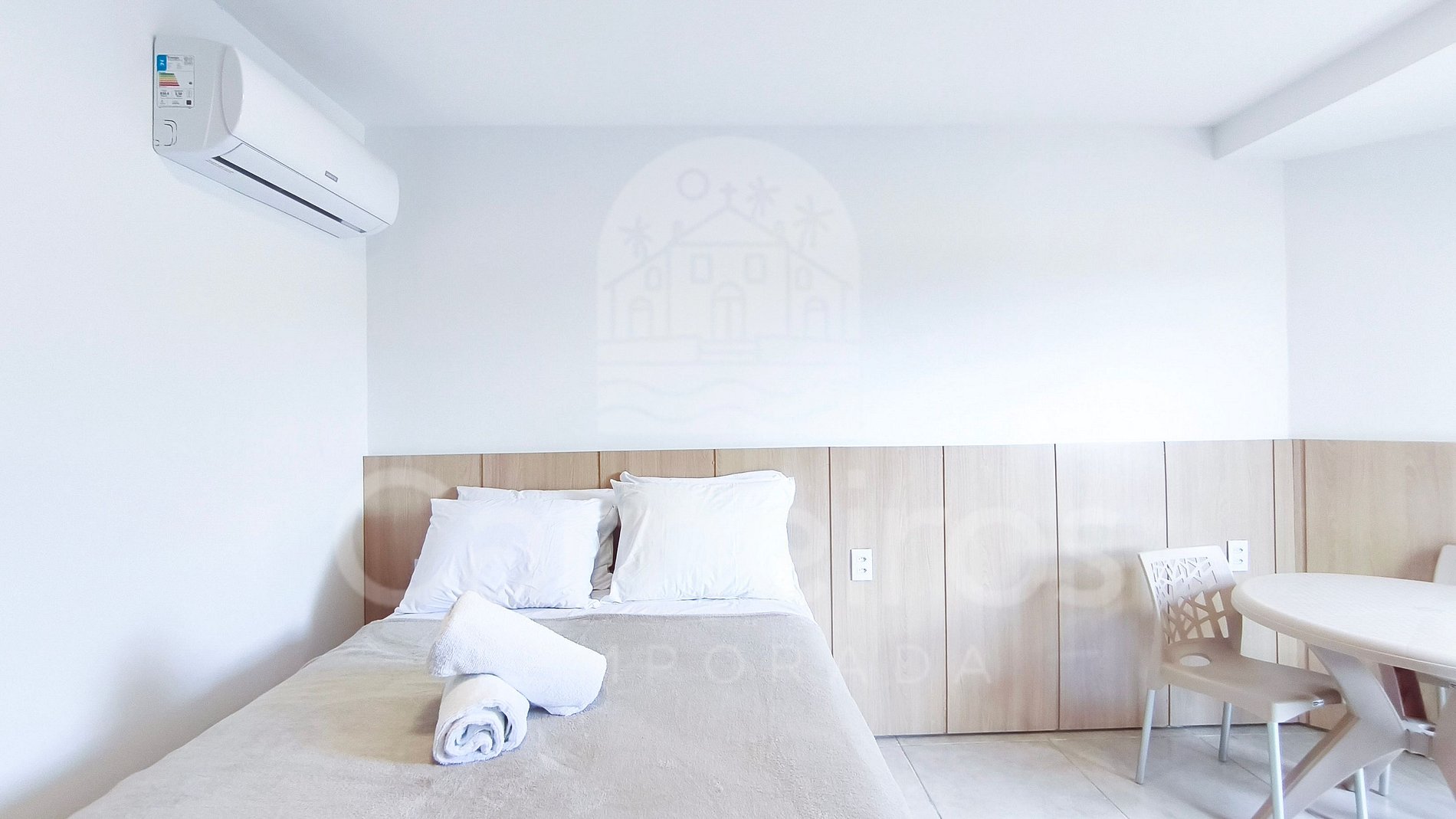 - Studio: 1 cama de casal, armário, TV e ar-condicionado.