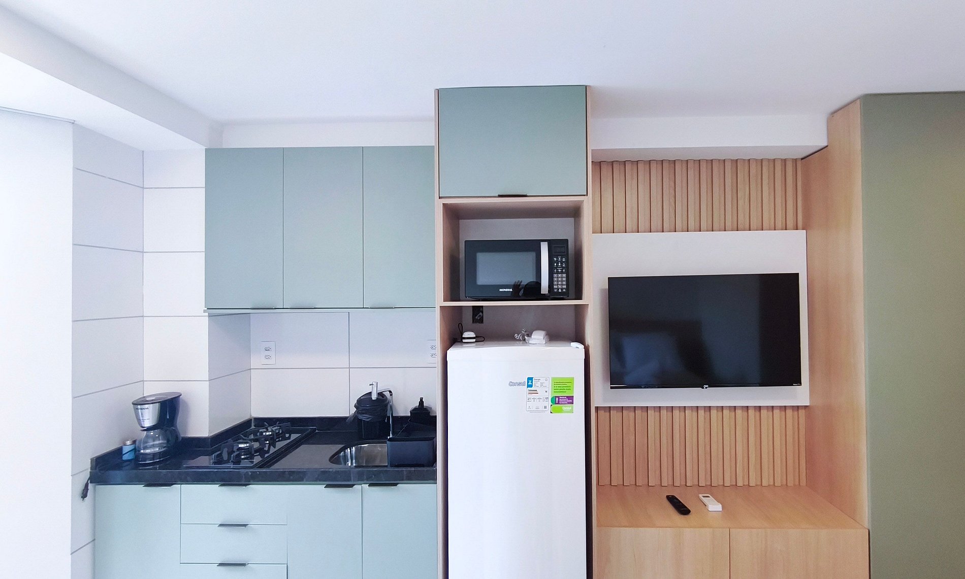 - Disponibilizamos enxovais completos, com roupas de cama e banho devidamente higienizadas, além de orientações personalizadas para garantir uma estadia confortável. O check-in é prático, com recepção presencial 24 horas e acesso ao flat por meio de fechadura digital.
