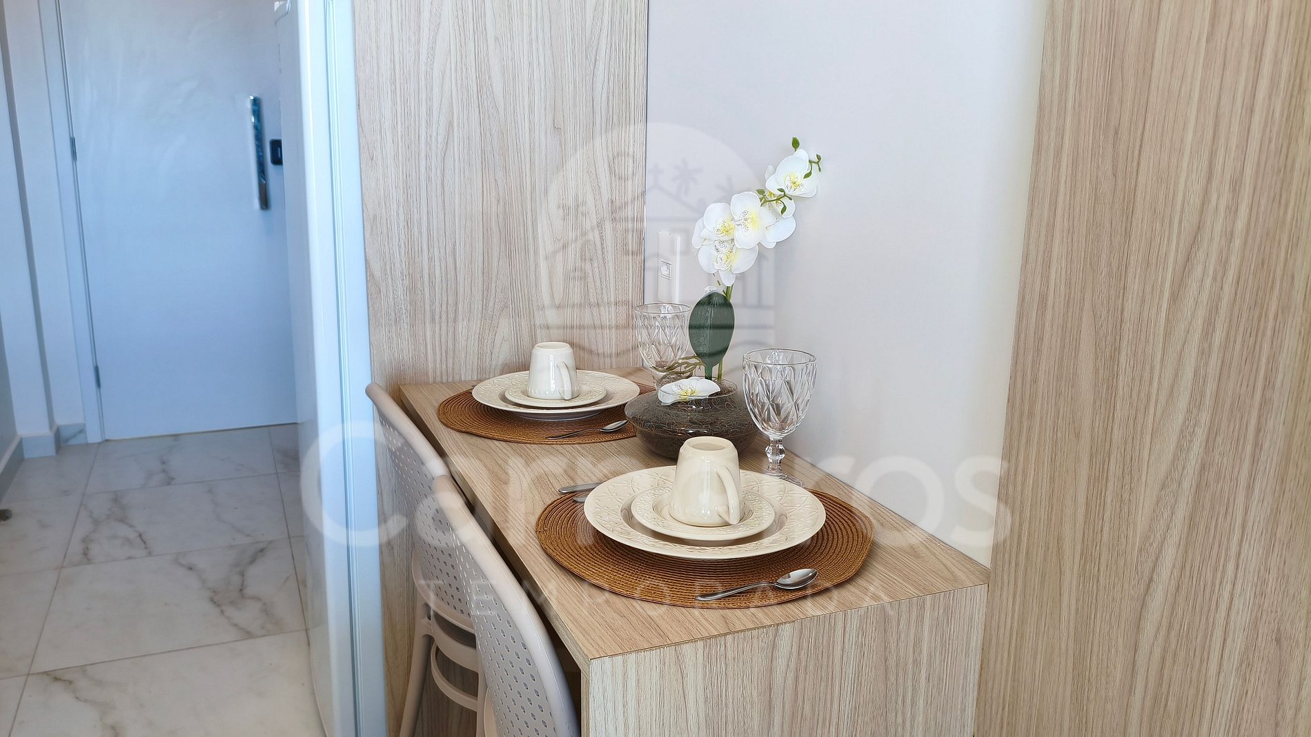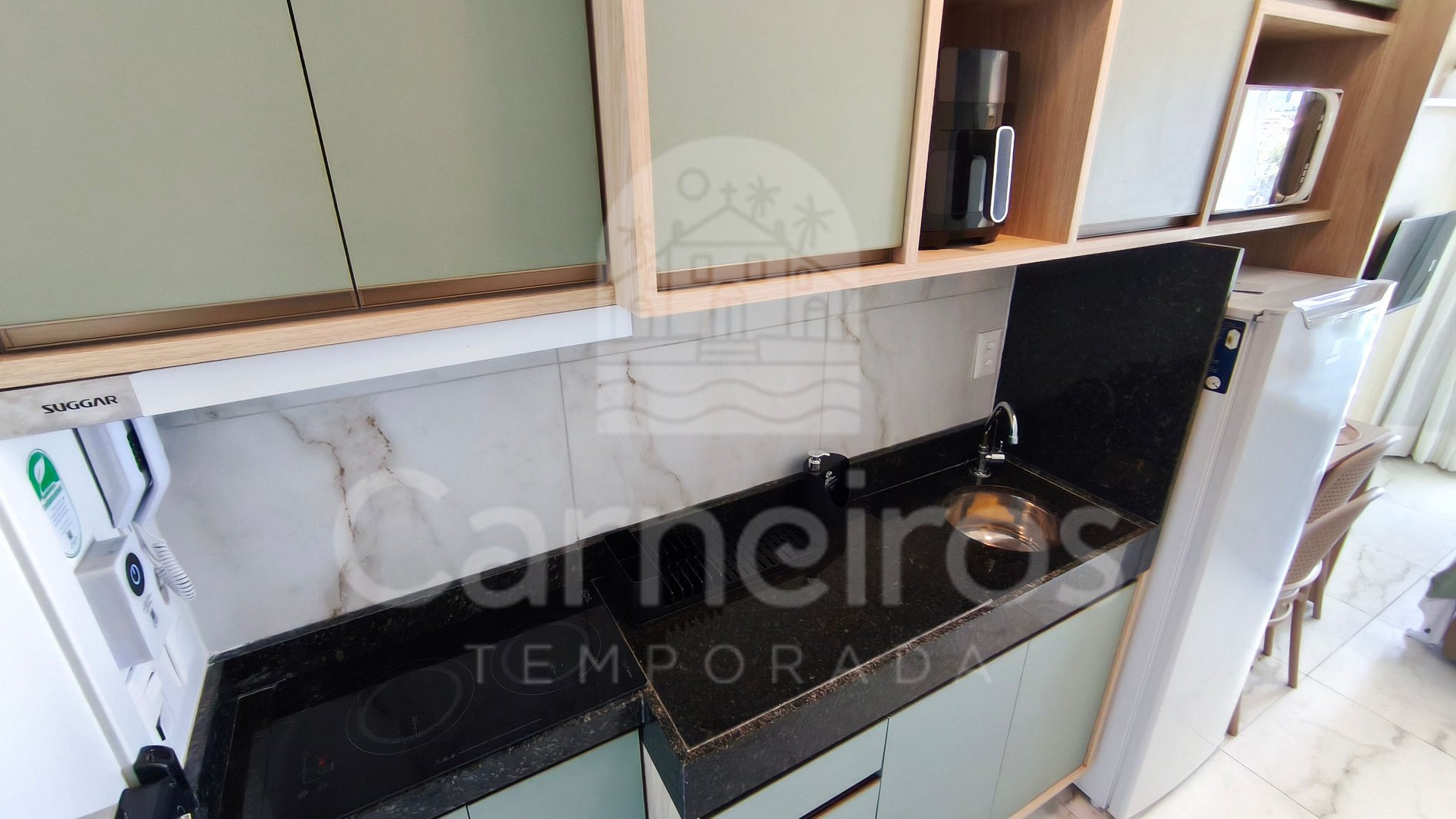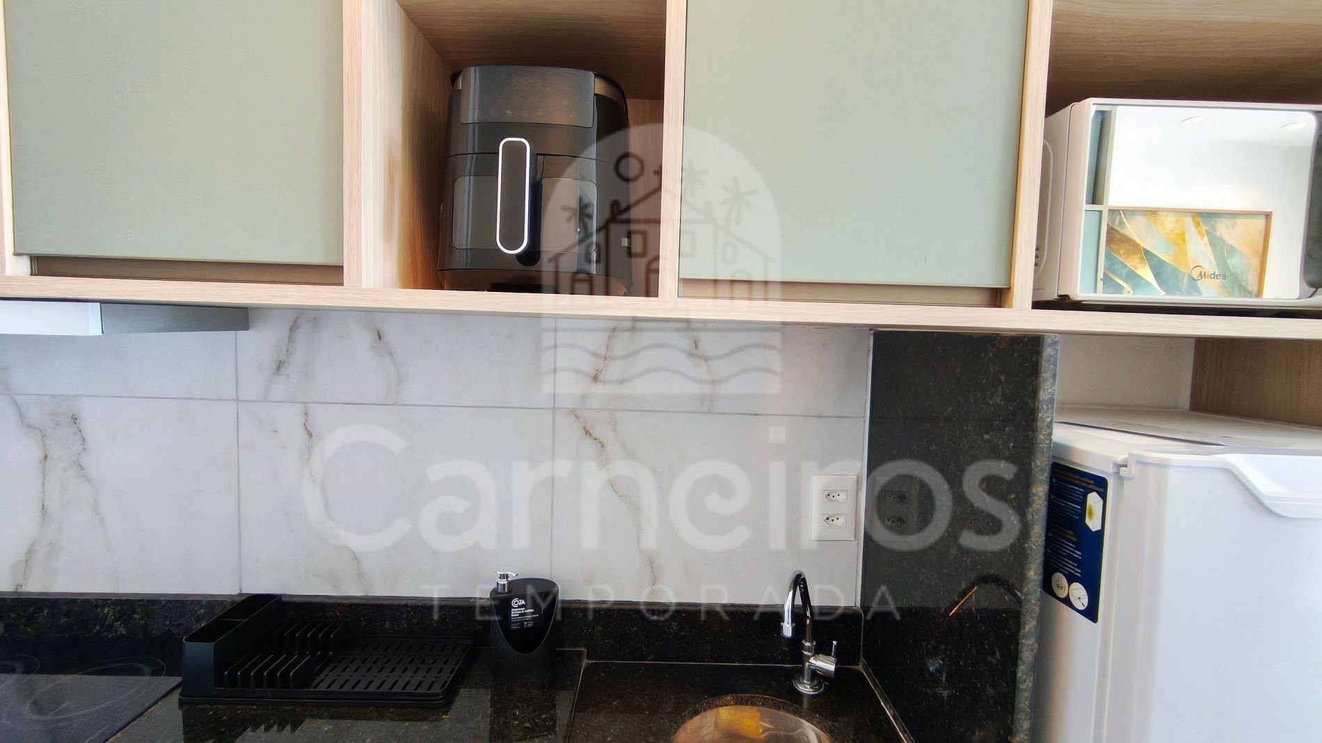 O Imóvel conta com uma decoração moderna, cama Queen, ar-condicionado e TV. A cozinha é completa e equipada com os principais itens como louça, copos, panelas, talheres, geladeira, micro-ondas, liquidificador, fogão cooktop por indução, airfryer, cafeteira e sanduicheira. Possui 01 banheiro completo e dispõe de secador de cabelo.