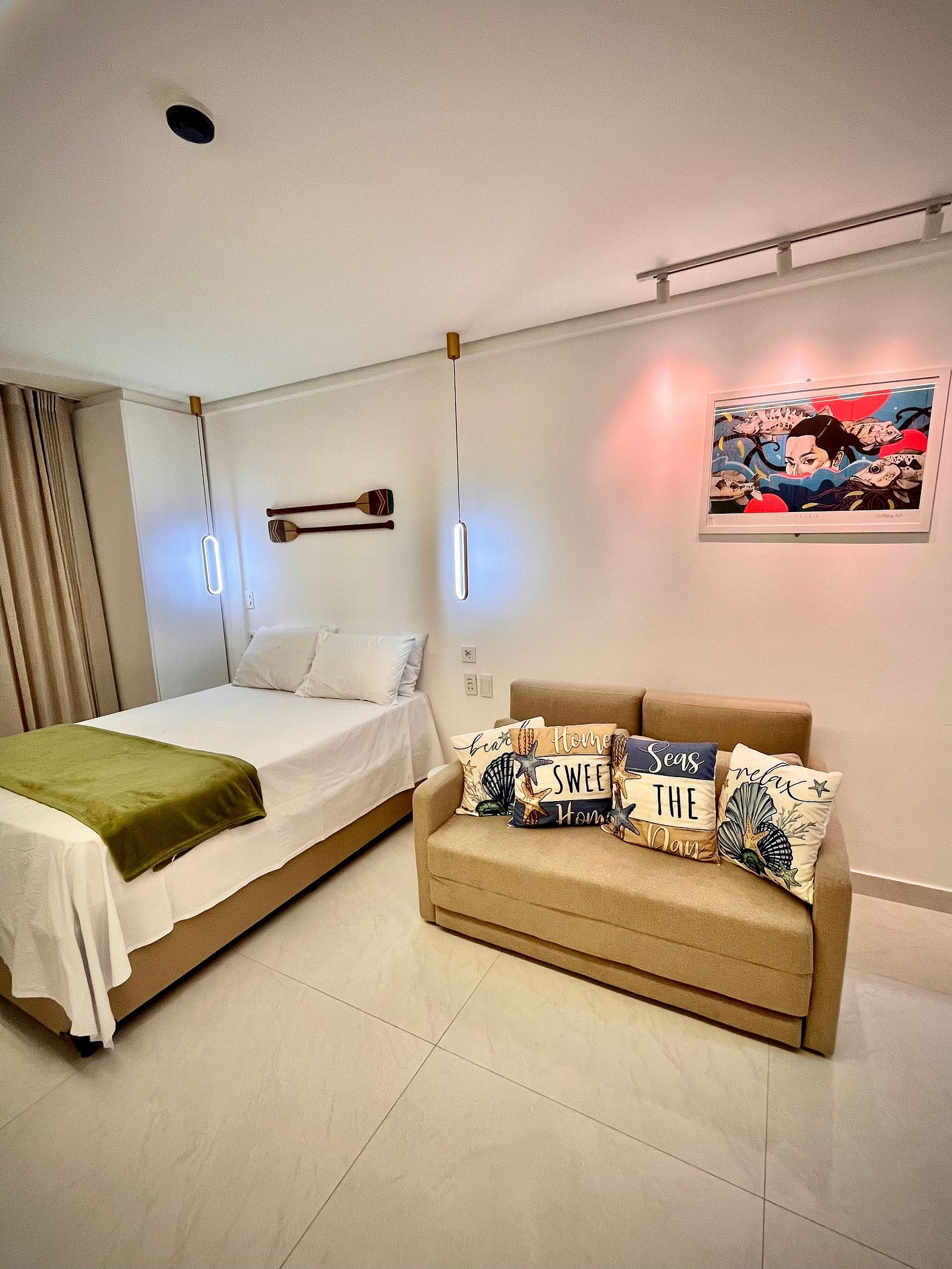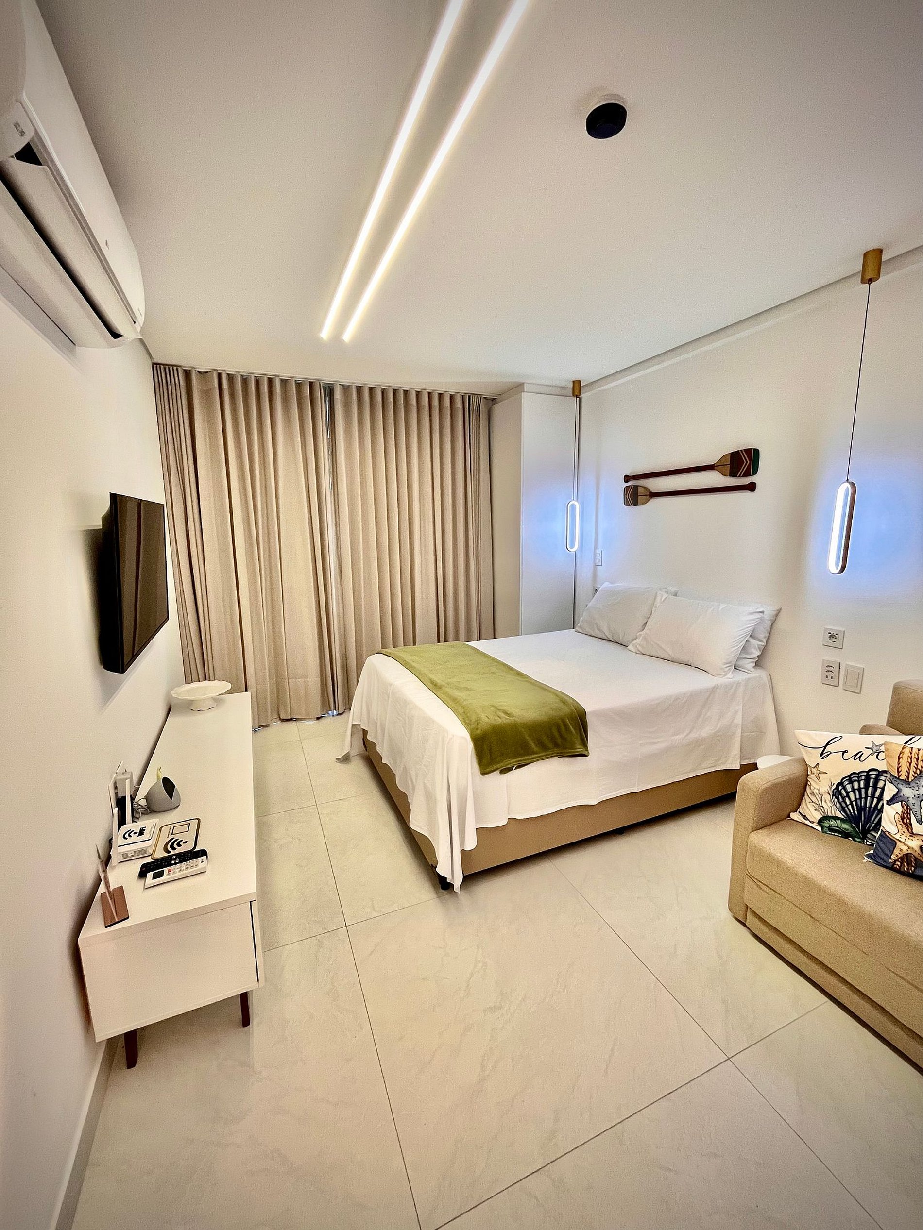 - Estúdio: Cama box de casal+ Sofá-cama, ar-condicionado e TV.
