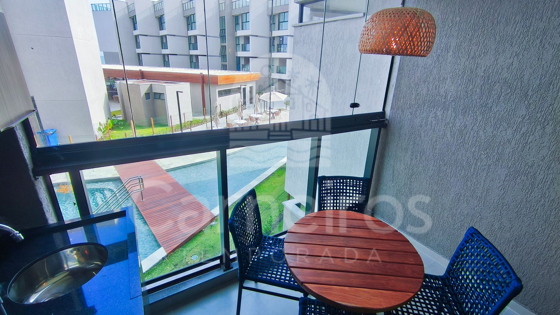 ✹O flat está localizado no primeiro andar, possui vista para a piscina e lateral para o mar e conta com uma aconchegante varanda com mesa e cadeiras ✹