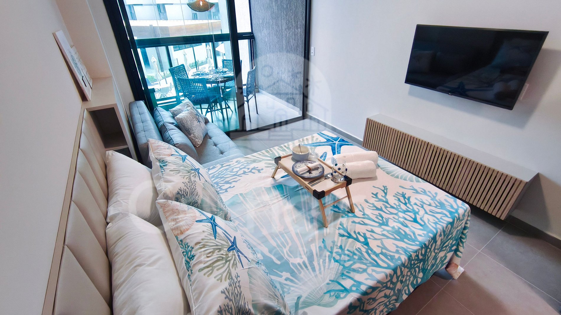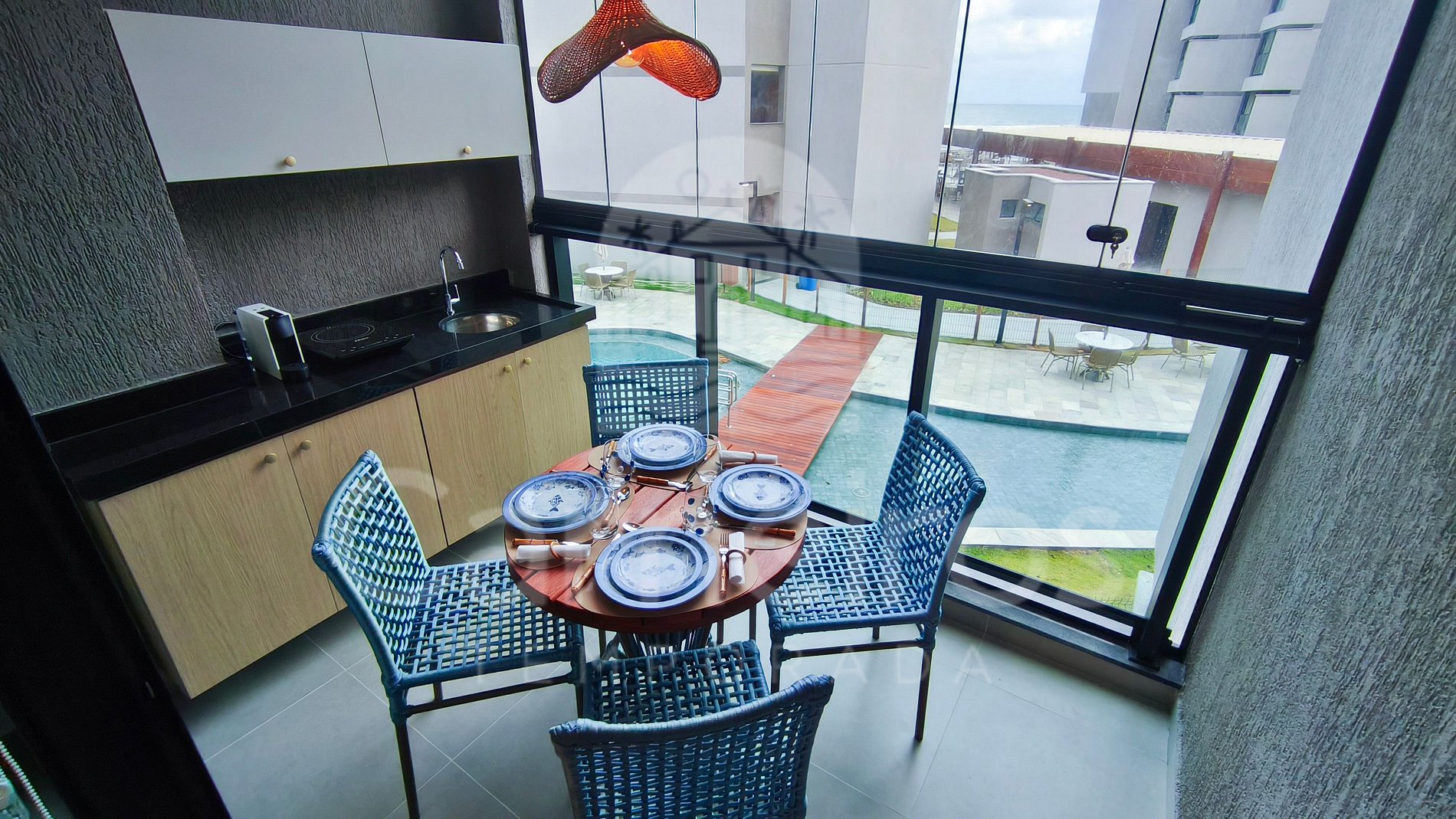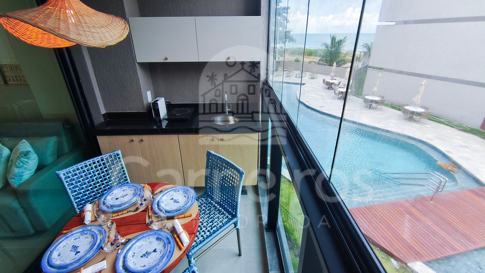 ✹O flat está localizado no primeiro andar, possui vista para a piscina e lateral para o mar e conta com uma aconchegante varanda com mesa e cadeiras ✹