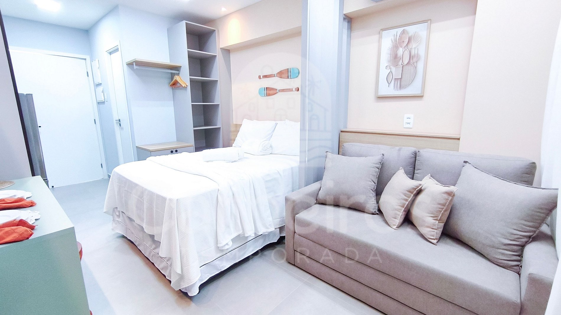 O ambiente é integrado e bem decorado, proporcionando conforto e praticidade. A cozinha é completa, equipada com geladeira, sanduicheira, bebedouro elétrico, liquidificador, cafeteira, cooktop, airfryer, micro-ondas e diversos utensílios.