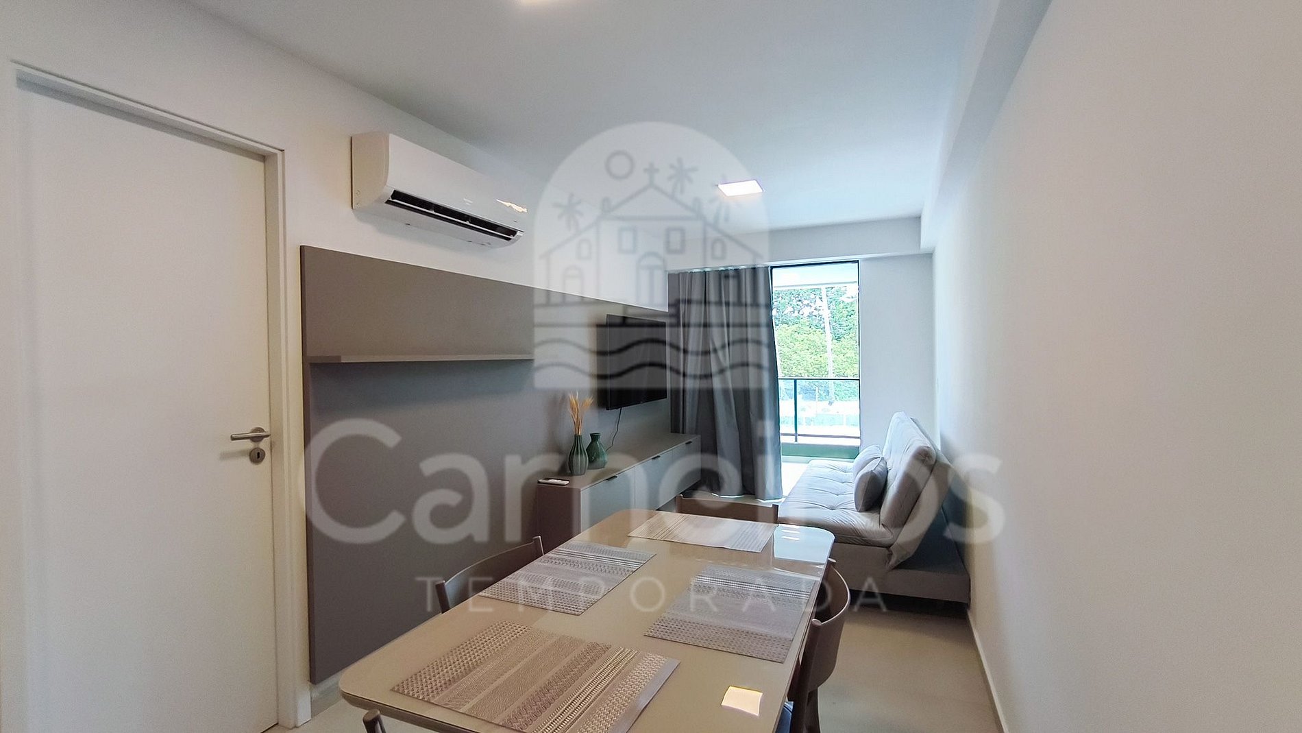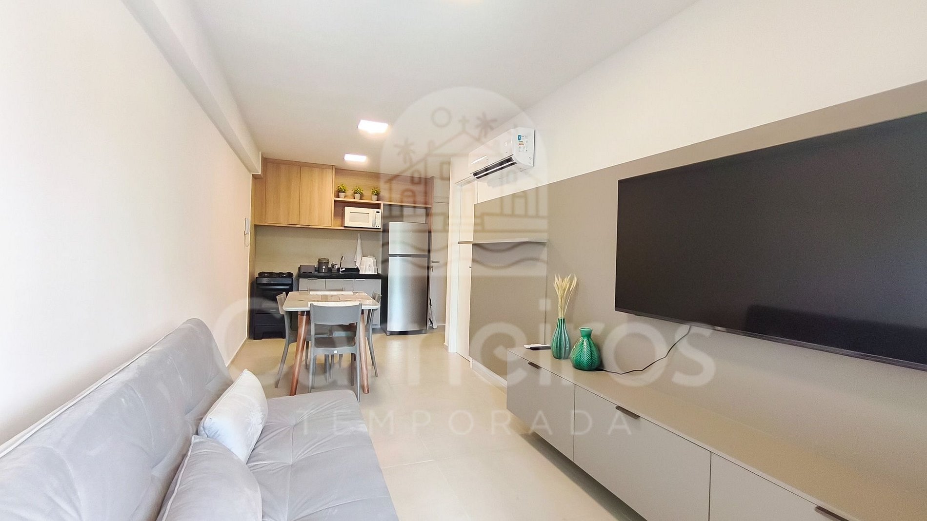 - Studio: 1 cama casal + 01 Sofá-cama casal, TV e ar-condicionado.