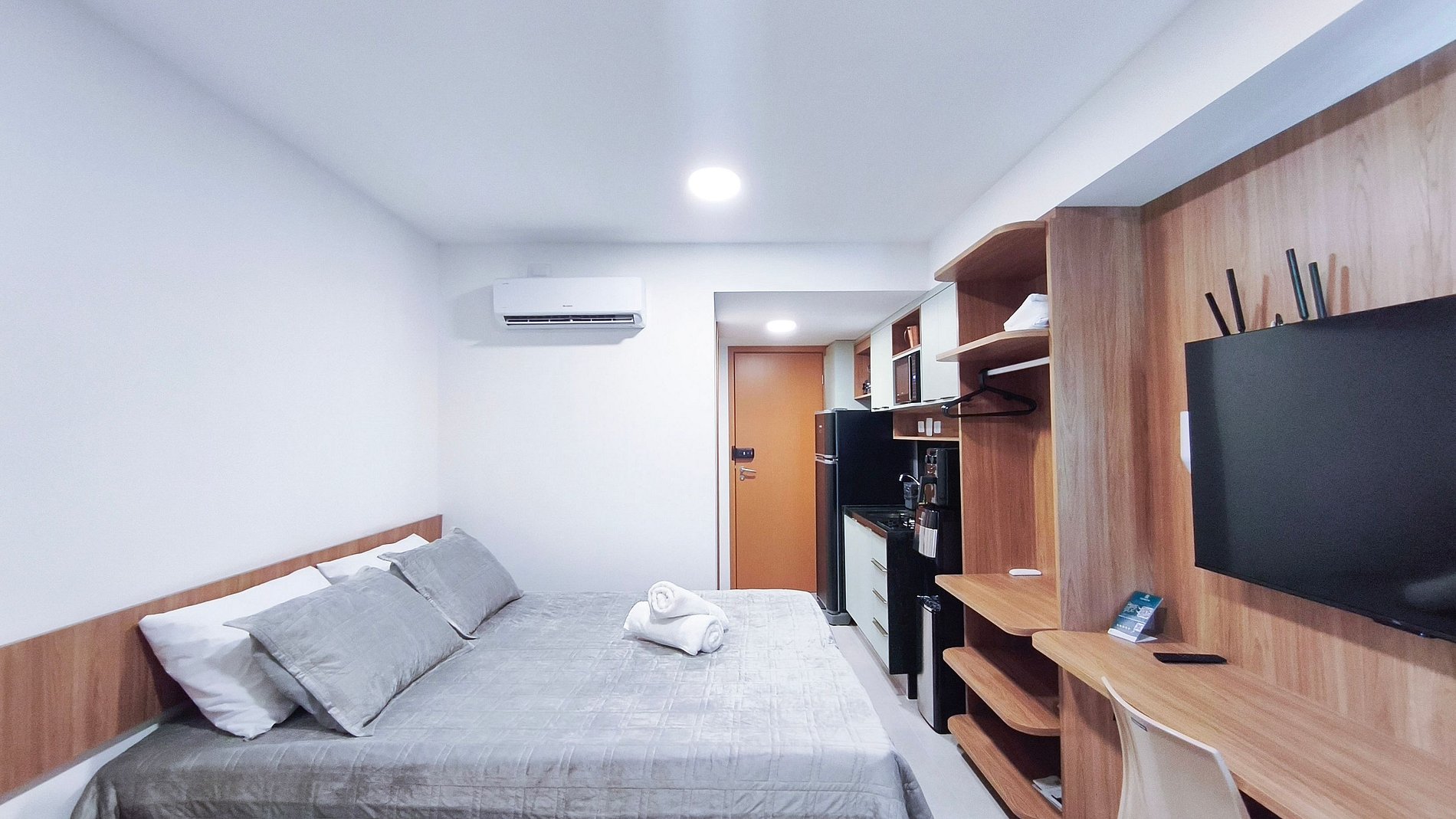 - Disponibilizamos enxovais completos, com roupas de cama e banho devidamente higienizadas, além de orientações personalizadas para garantir uma estadia confortável. O check-in é prático, com recepção presencial 24 horas e acesso ao flat por meio de fechadura digital.