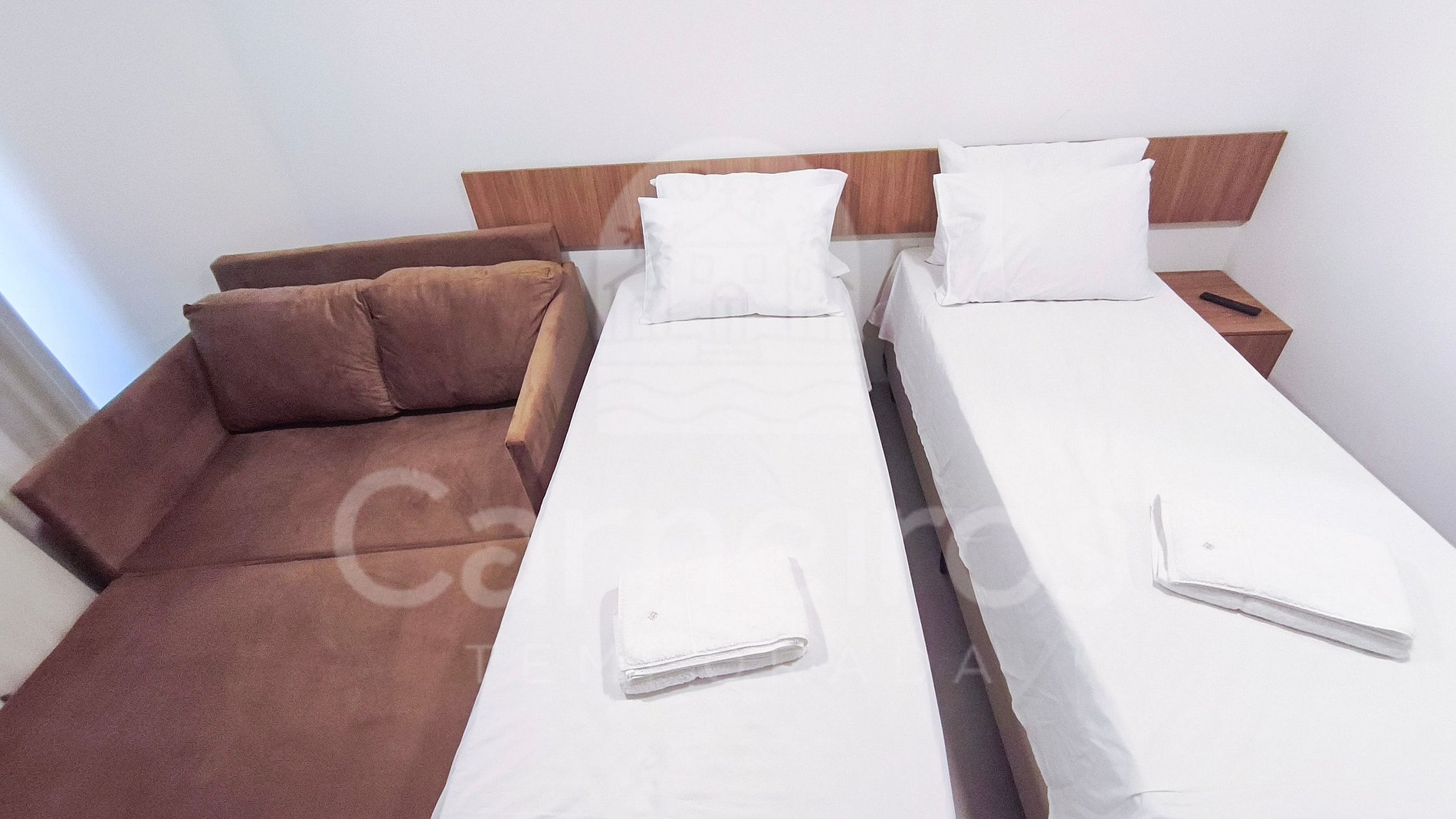Com a possibilidade de união de duas camas solteiro para formar uma cama de casal, conforme a preferência dos hóspedes.