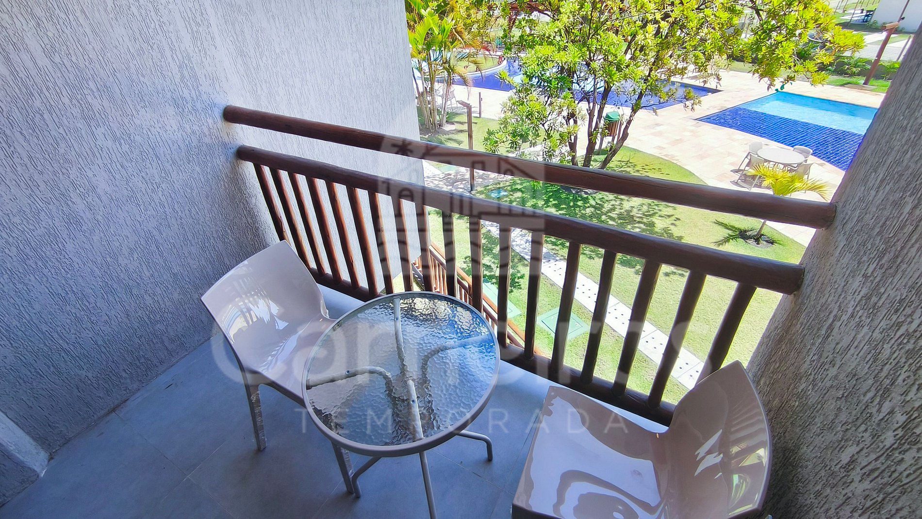 ✹ O flat está localizado no primeiro andar e conta com varanda mobiliada, ideal para momentos de descanso. ✹