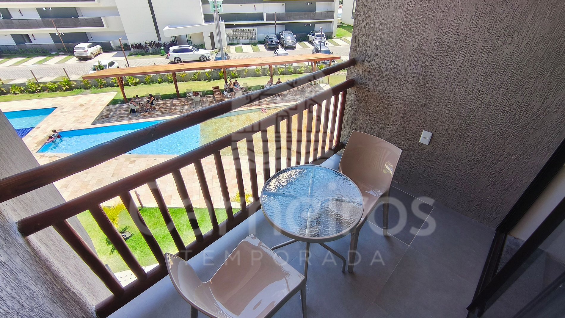 ✹ O flat está localizado no segundo andar e conta com varanda mobiliada, ideal para momentos de descanso. ✹