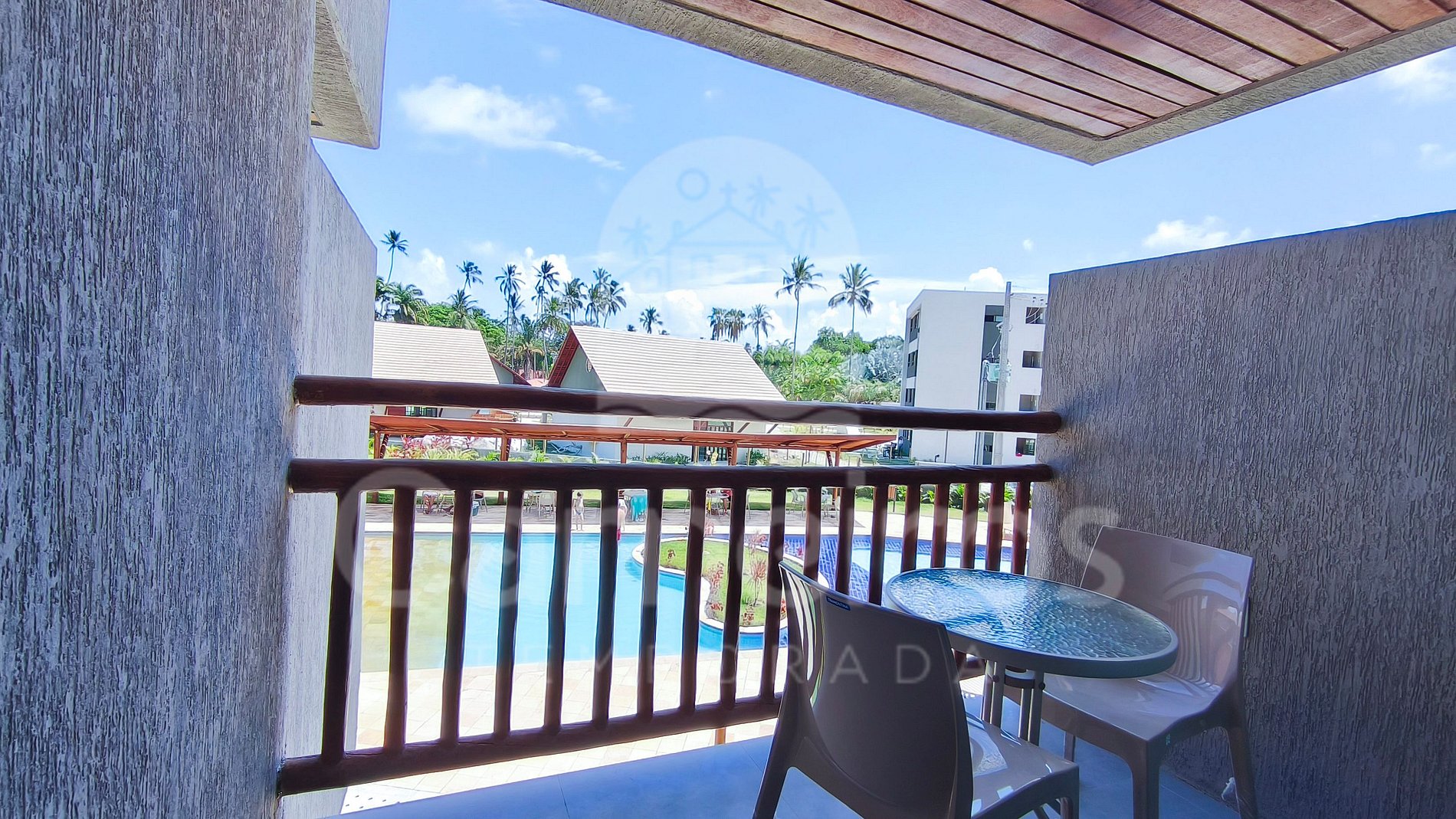 ✹ O flat está localizado no primeiro andar e conta com varanda mobiliada, ideal para momentos de descanso. ✹