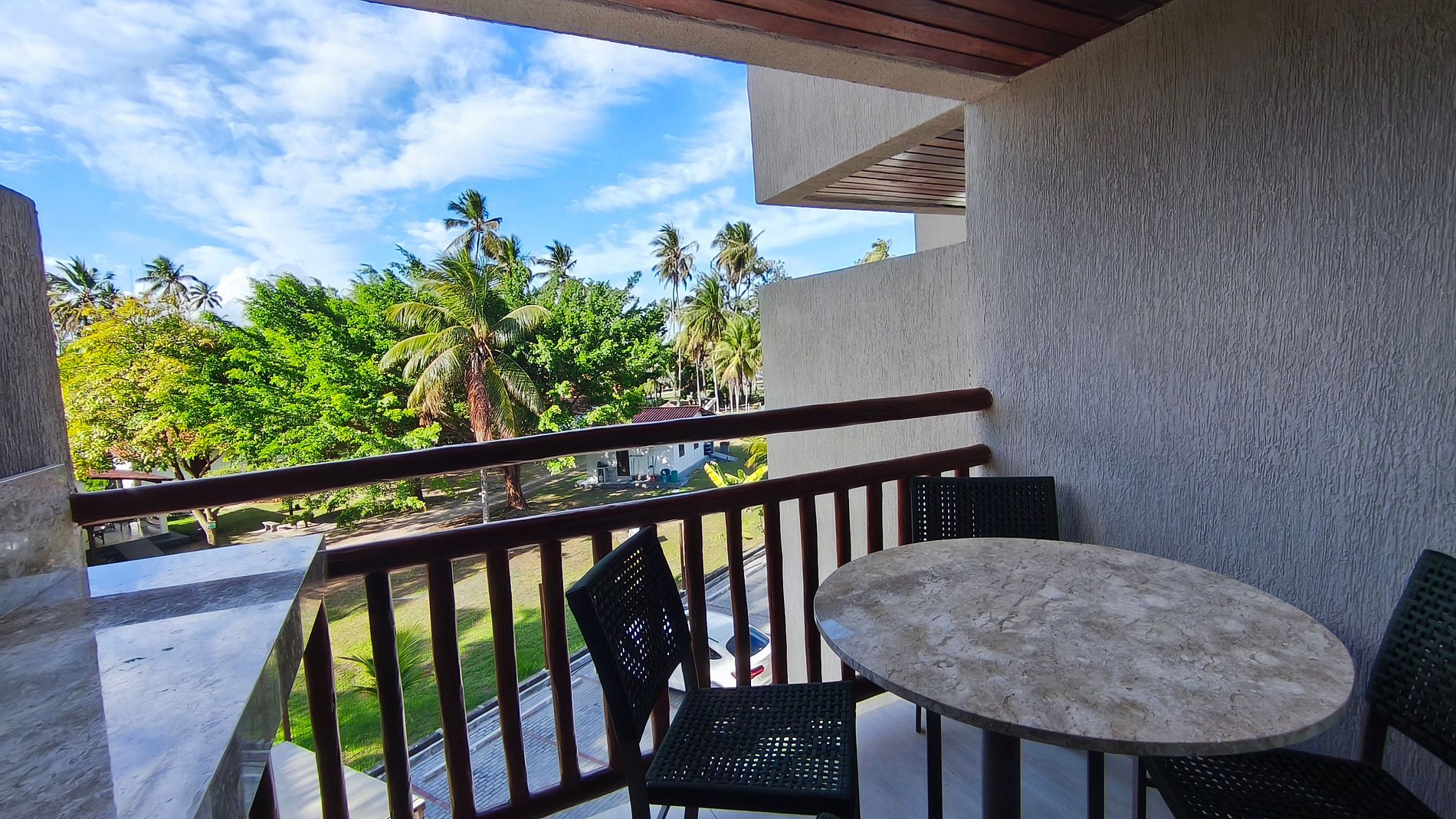 Este studio acomoda até quatro hóspedes com duas camas queen em um ambiente integrado e climatizado, ideal para quem busca praticidade à beira-mar. A unidade conta com cozinha equipada e varanda privativa. O condomínio Atlântico oferece estrutura completa com piscinas, academia, estacionamento, acesso à praia e restaurante em localização privilegiada na Praia dos Carneiros.