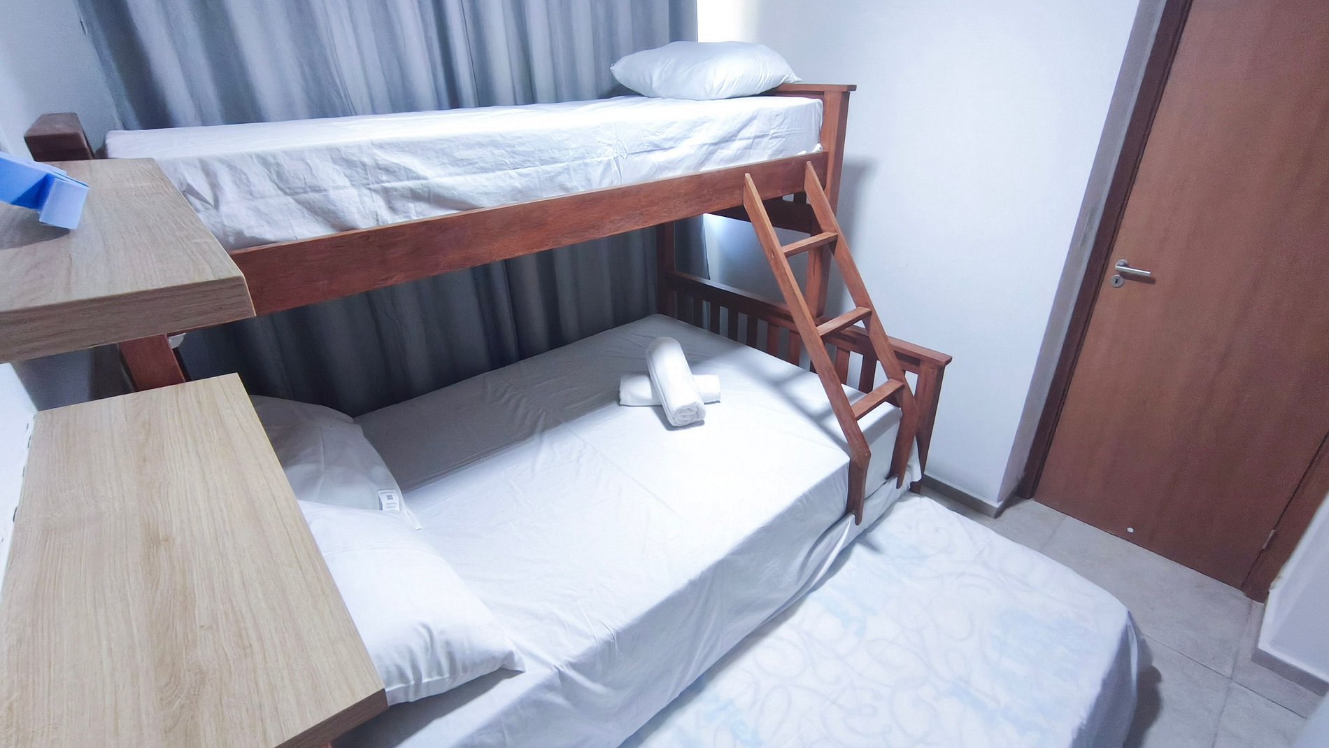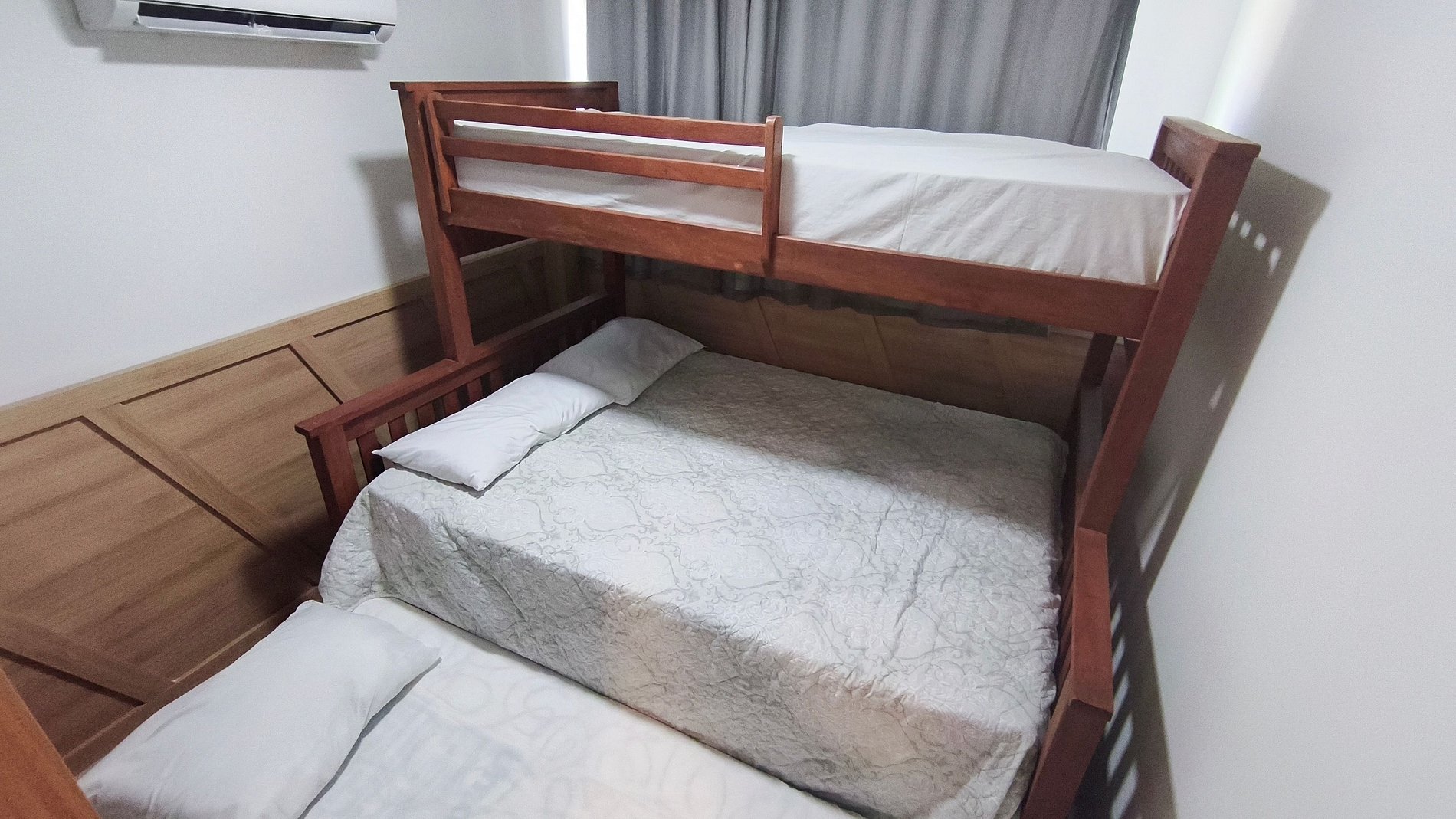 Quarto 2: Quadriliche, armário e ar-condicionado.