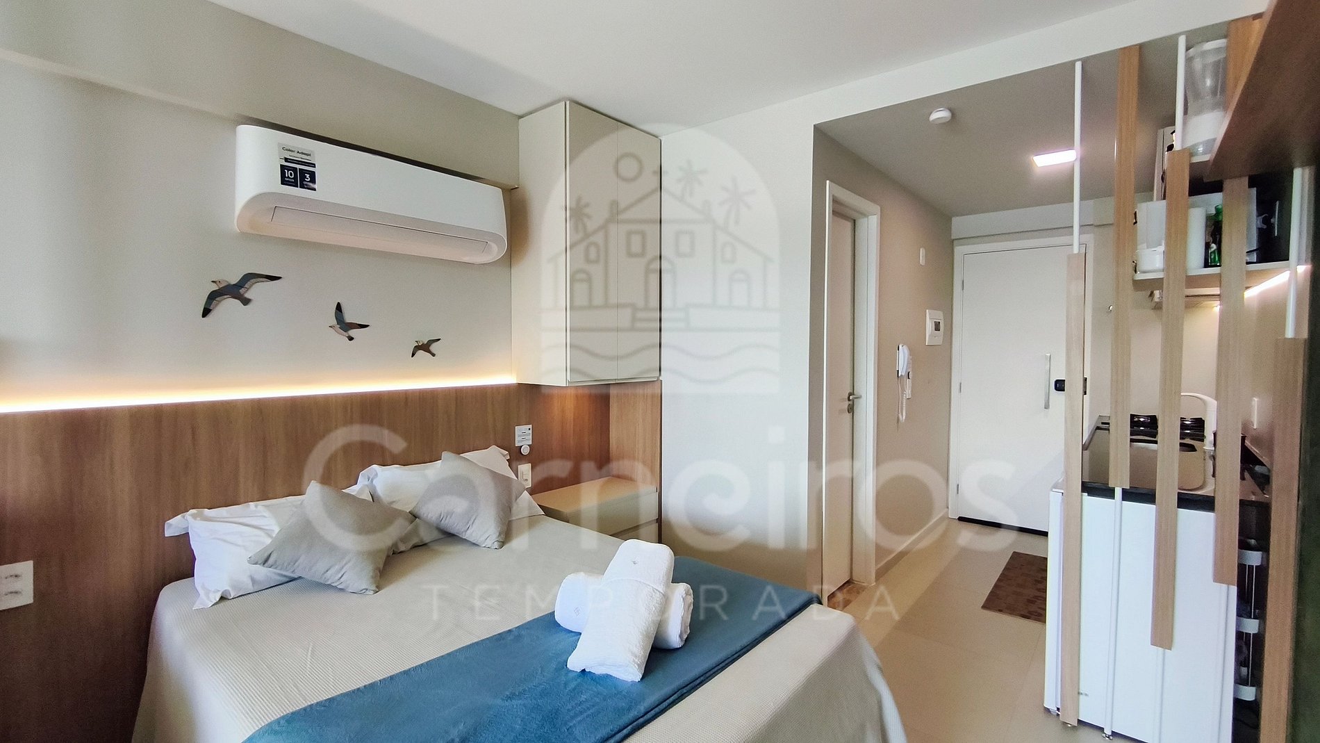 - Studio: 1 cama casal + 1 sofá-cama, TV e ar-condicionado;