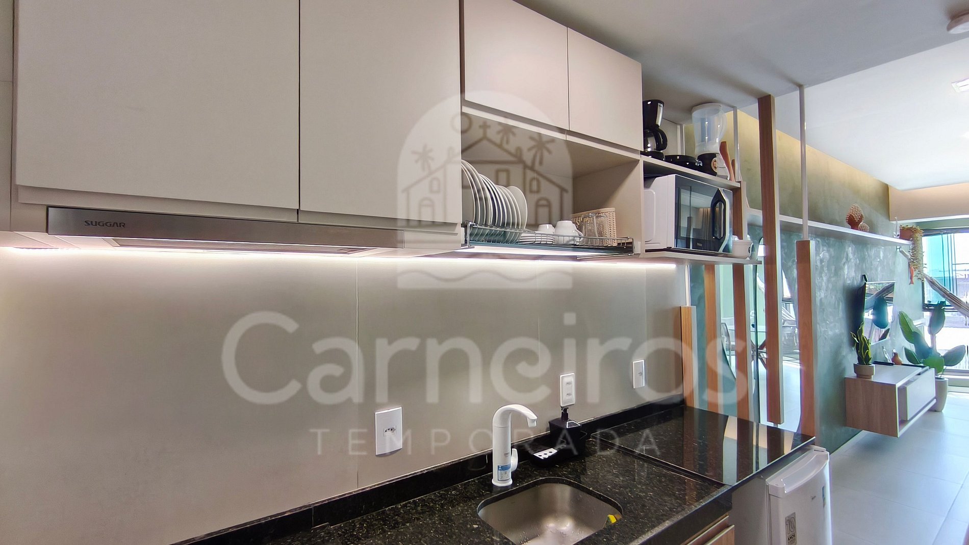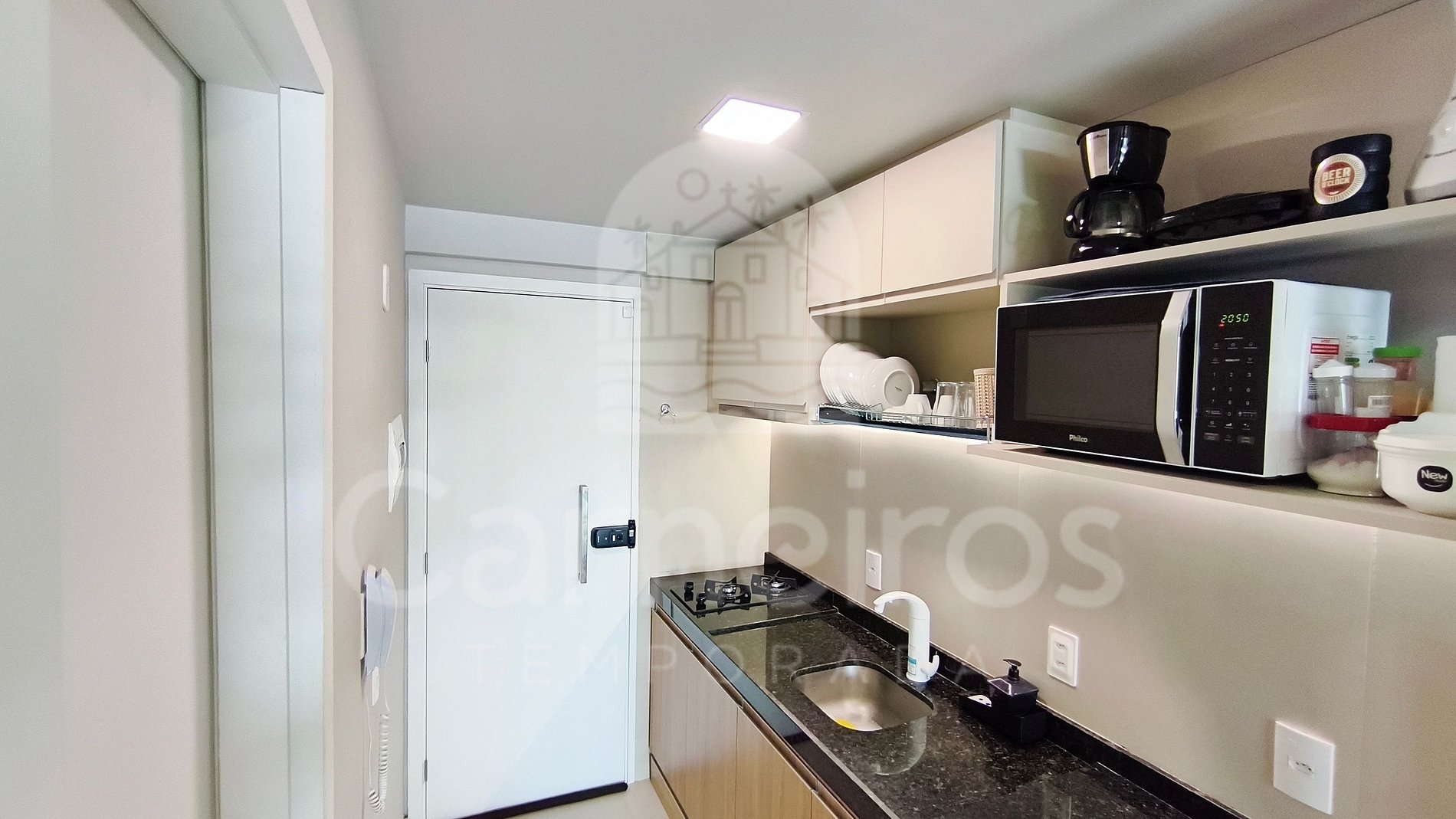 No imóvel você encontrará uma decoração agradável e moderna com sofá-cama, cama, TV e ar-condicionado. A cozinha é completa e possui diversas comodidades como louça, copos, panelas, talheres, cafeteira, micro-ondas, cooktop 2 bocas, frigobar, liquidificador e diversos utensílios. Possui também 01 banheiro completo, secador de cabelo e ferro de passar roupas.