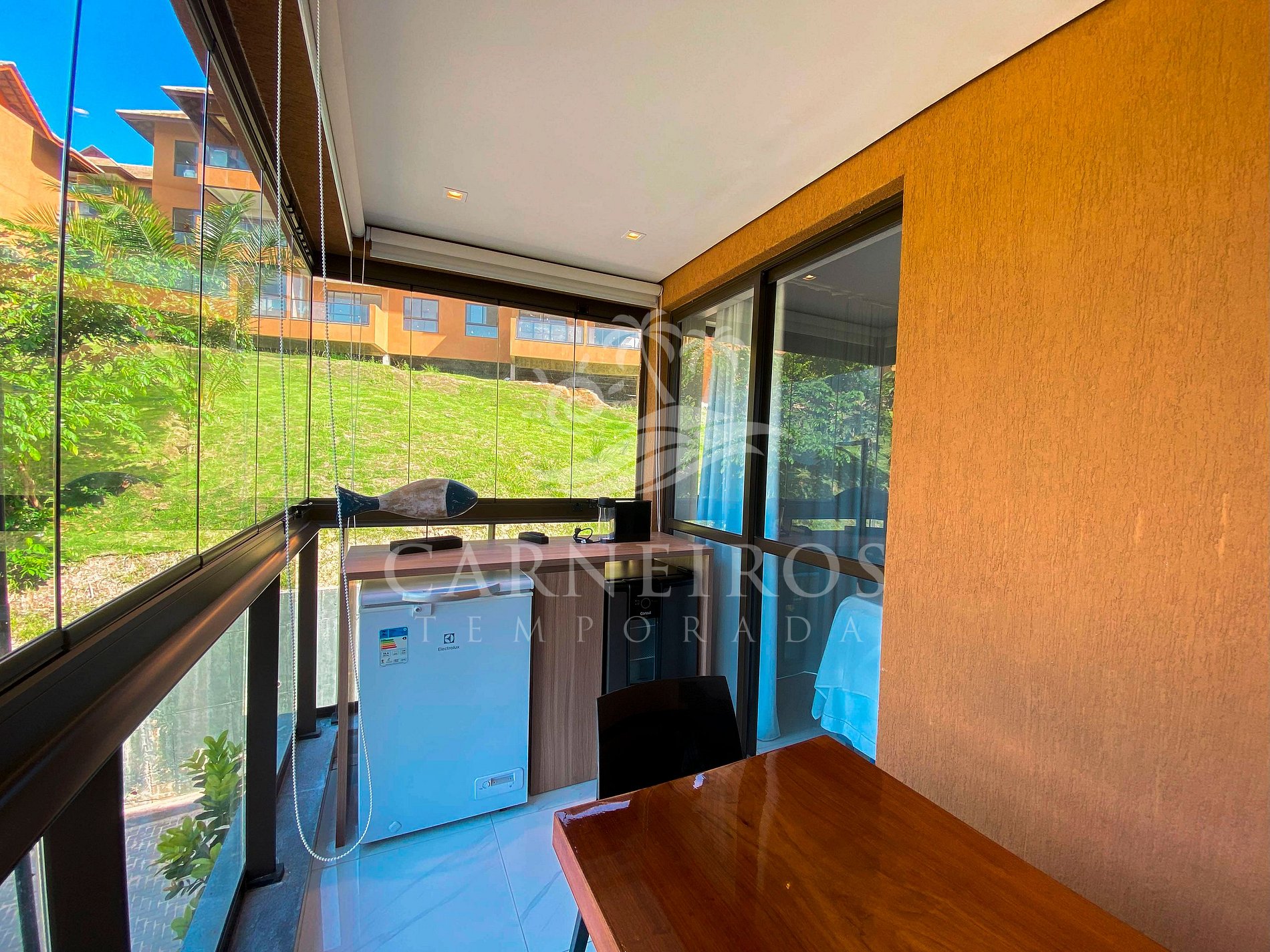 ✹ O flat se localiza no primeiro andar, possui vista para os bangalôs e conta com uma linda varanda com mesa, quatro cadeiras e banco. ✹