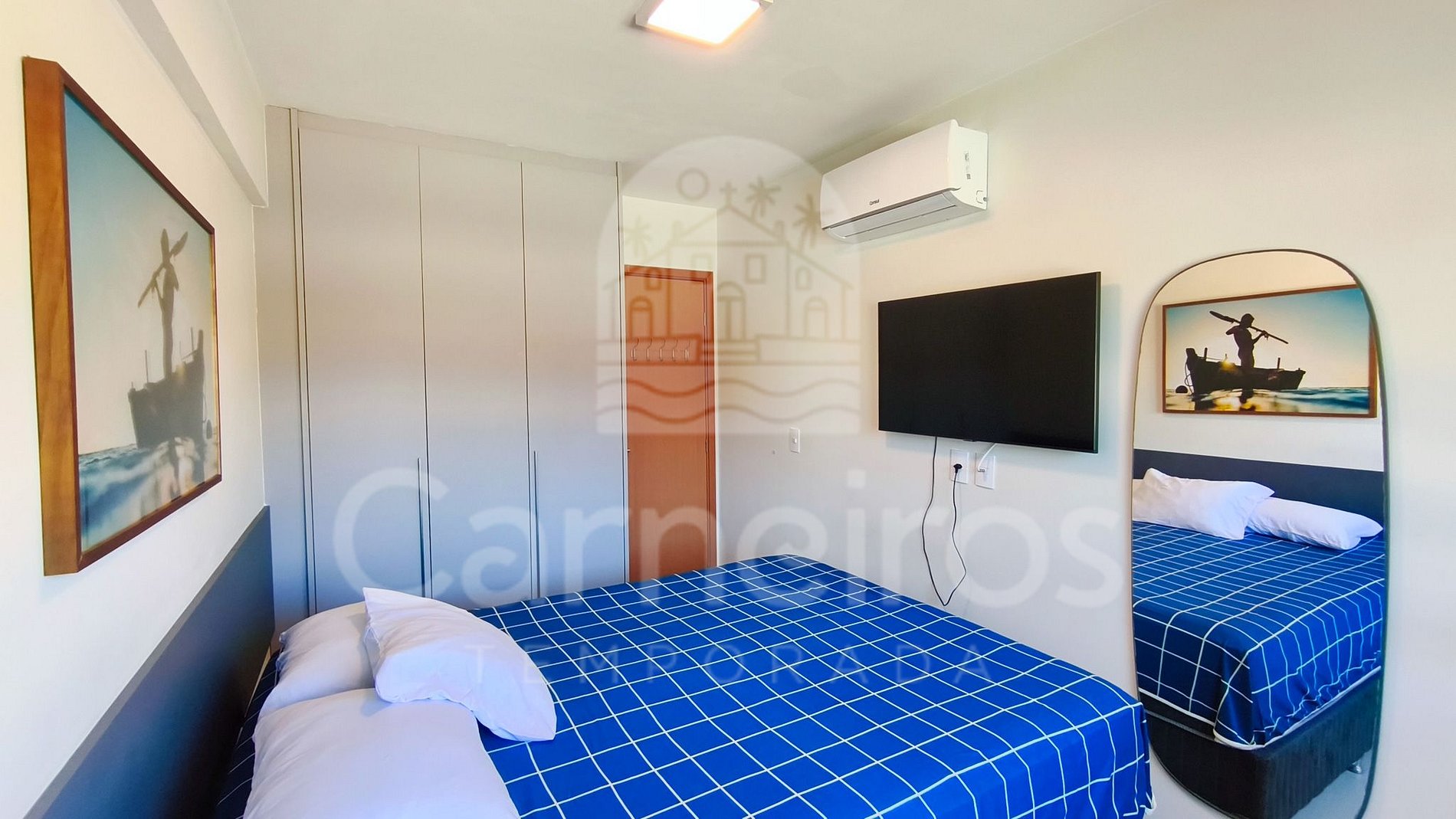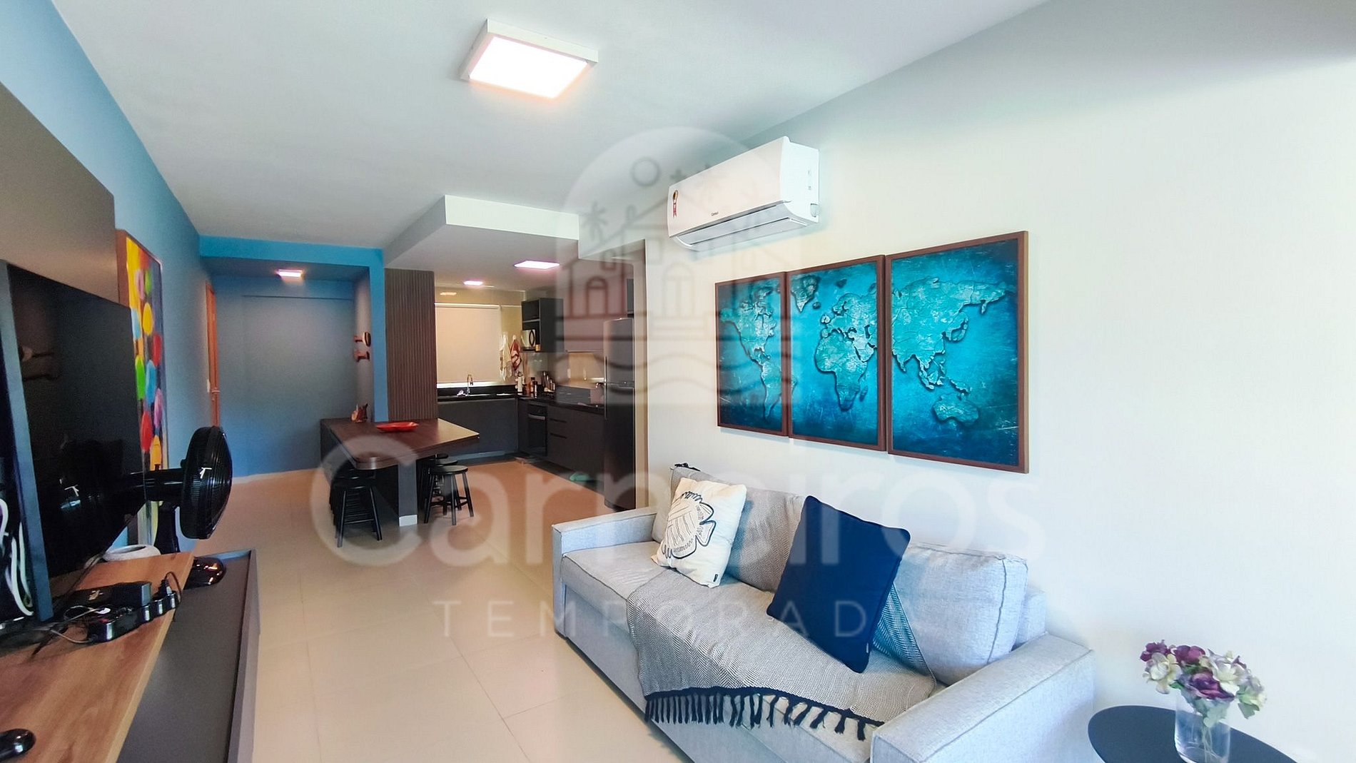 - Sala de estar: sofá-cama, ar-condicionado e TV;