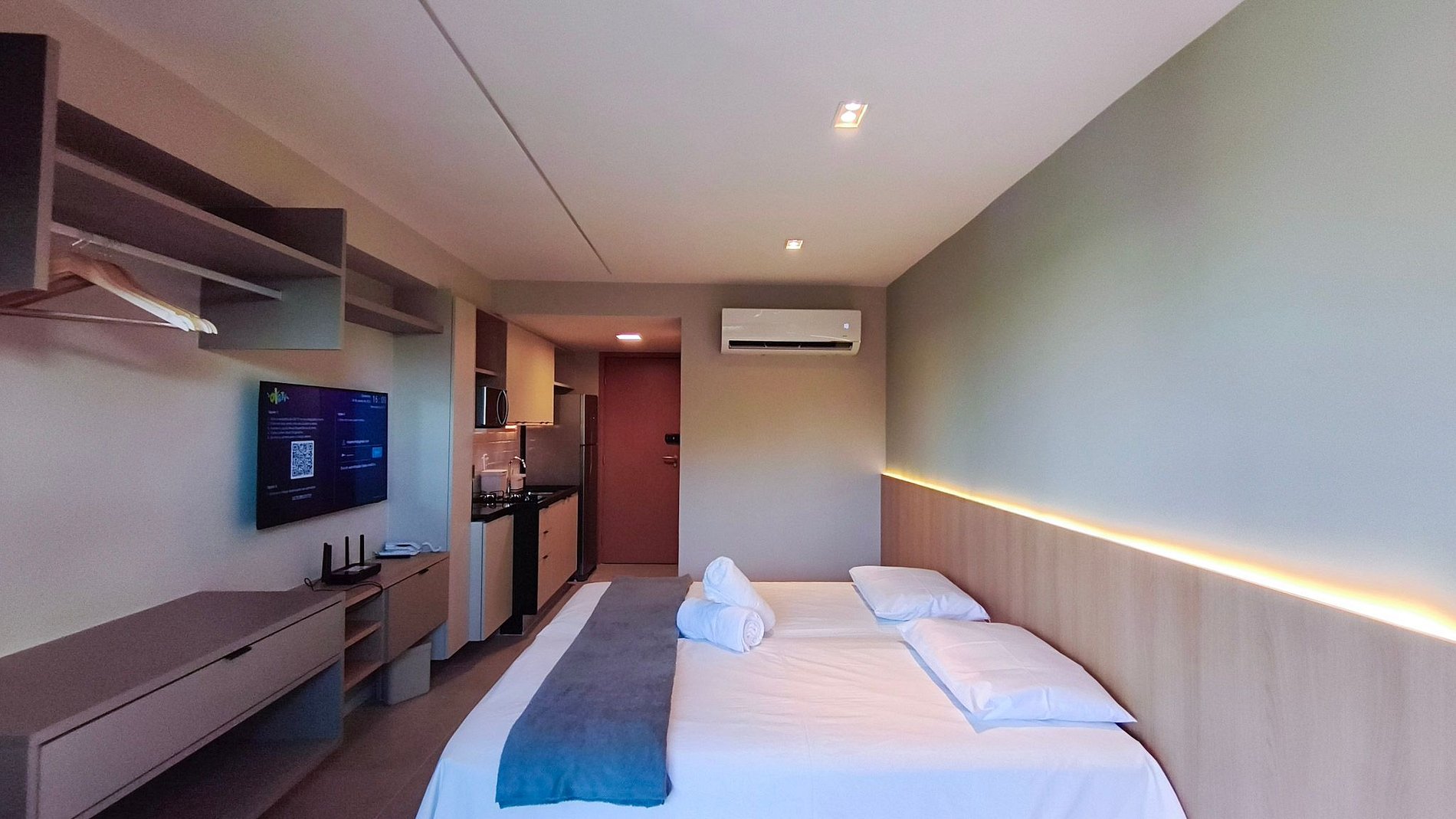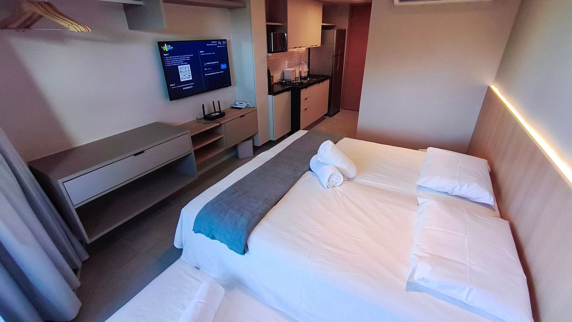 - Disponibilizamos enxovais completos, com roupas de cama e banho devidamente higienizadas, além de orientações personalizadas para garantir uma estadia confortável. O check-in é prático, com recepção presencial 24 horas e acesso ao flat por meio de fechadura digital.