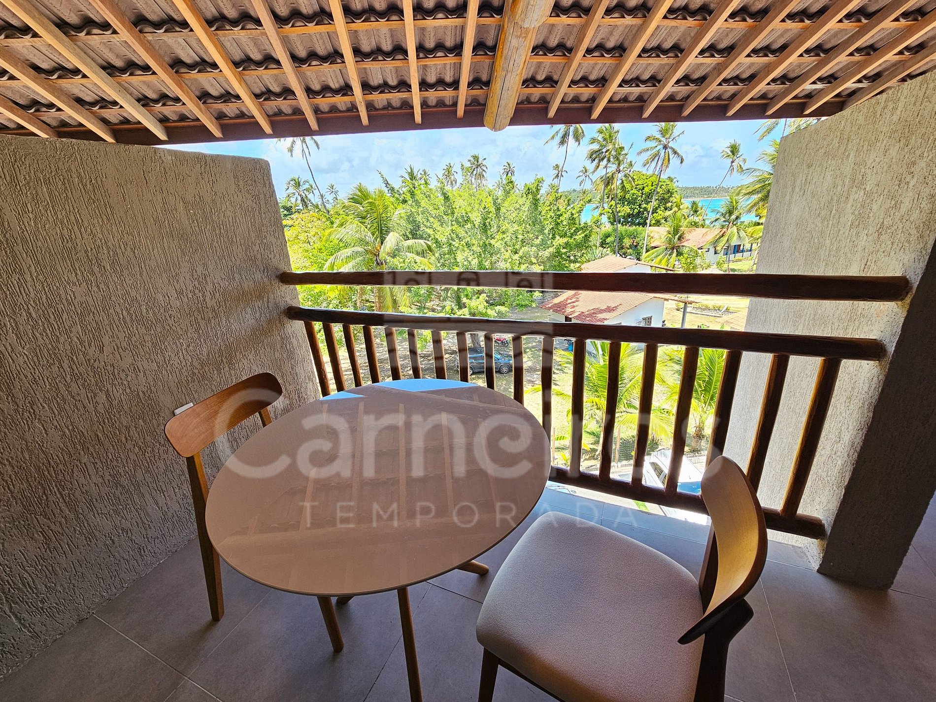 ✹O flat está localizado no terceiro andar, possui vista para os coqueiros da praia e o mar, e conta com uma aconchegante varanda com mesa e cadeiras ✹