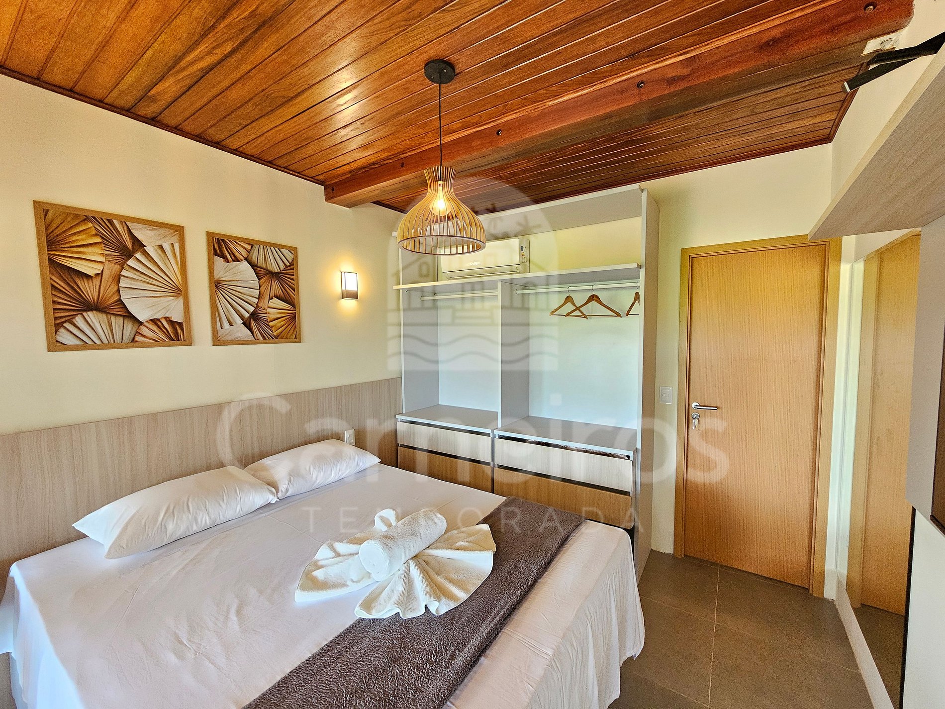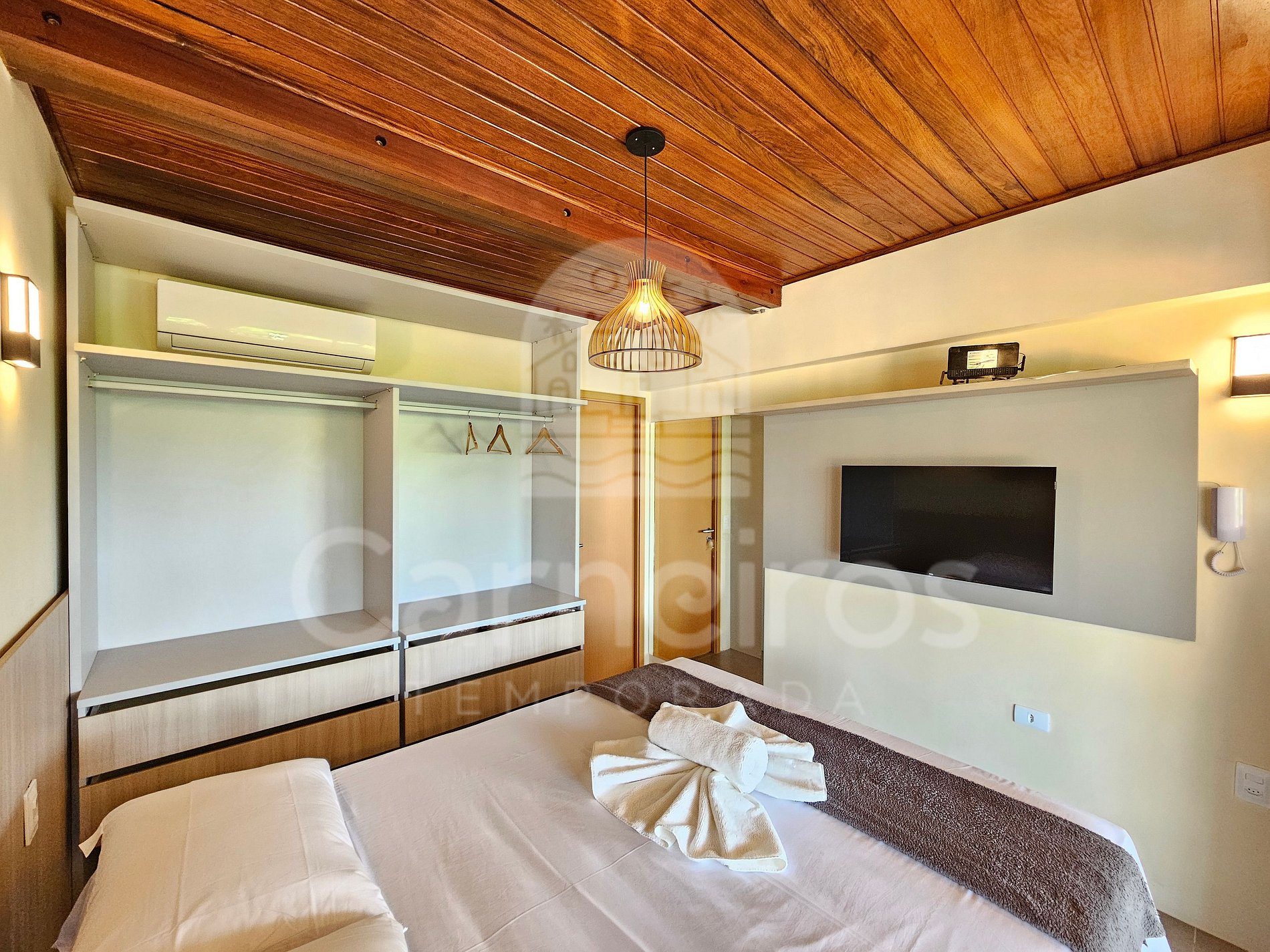 Quarto 1: Cama casal, armário, TV e ar-condicionado;