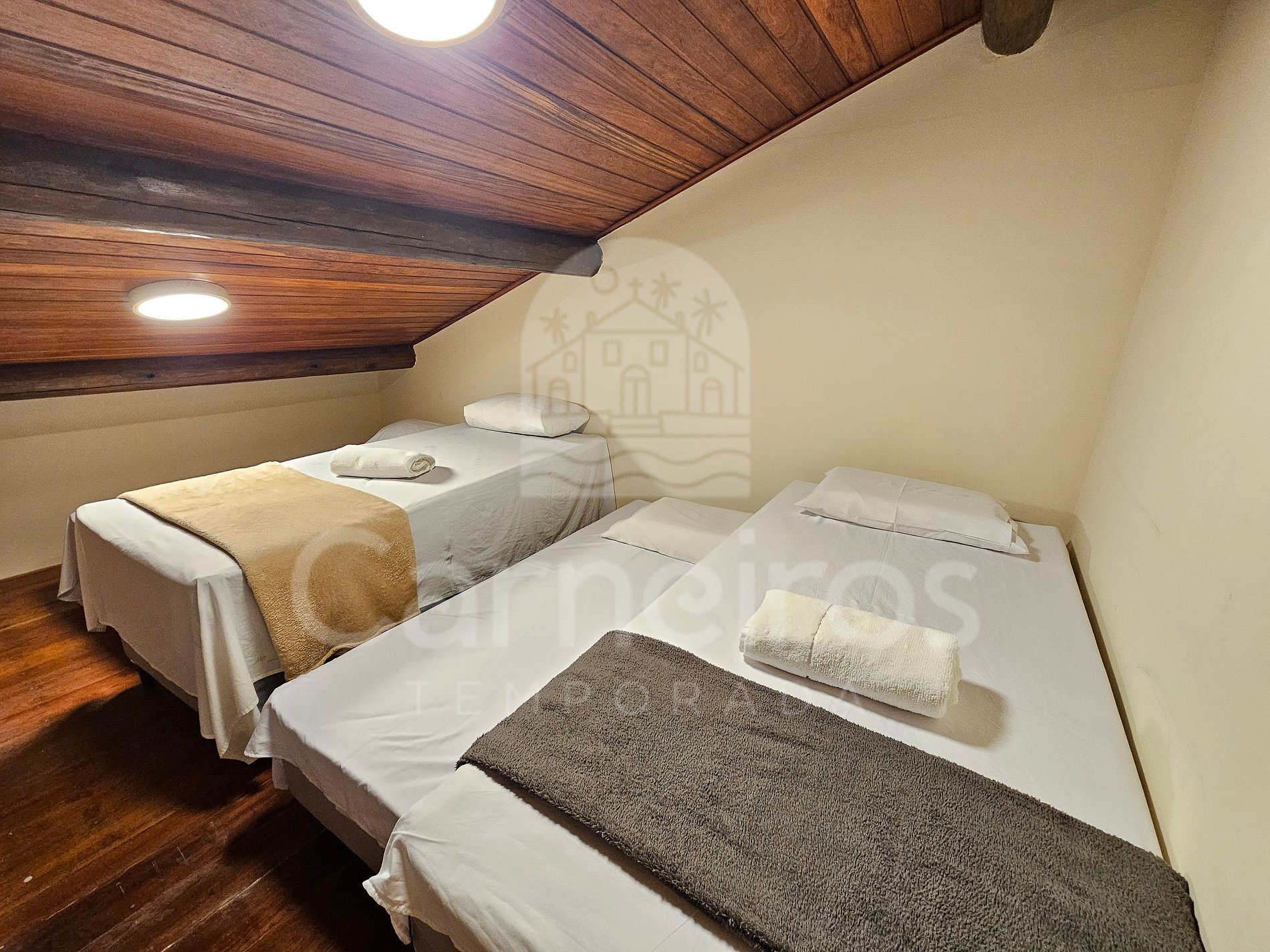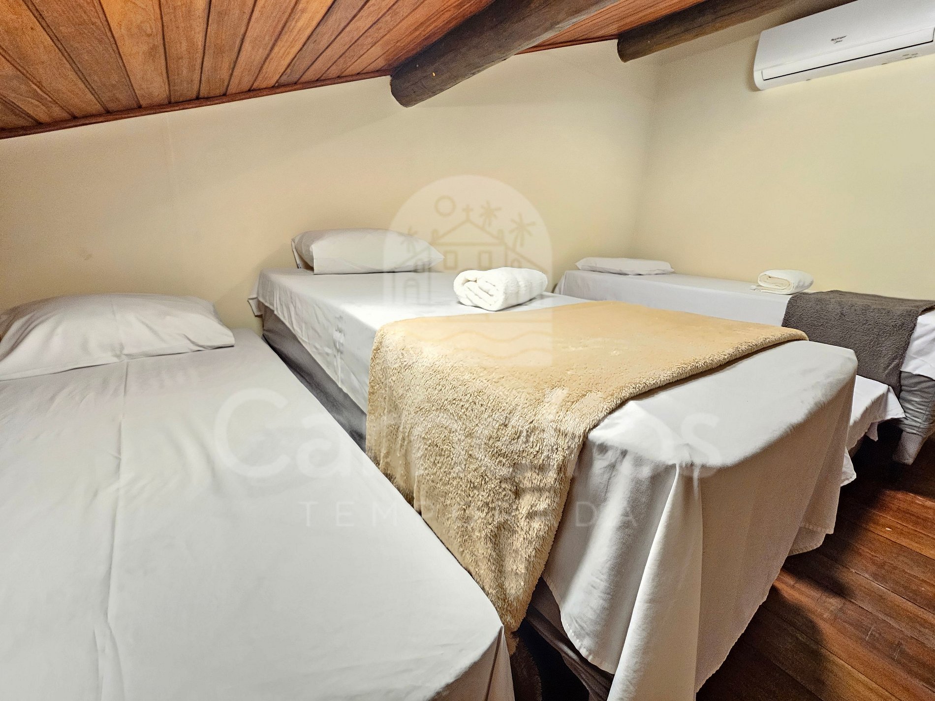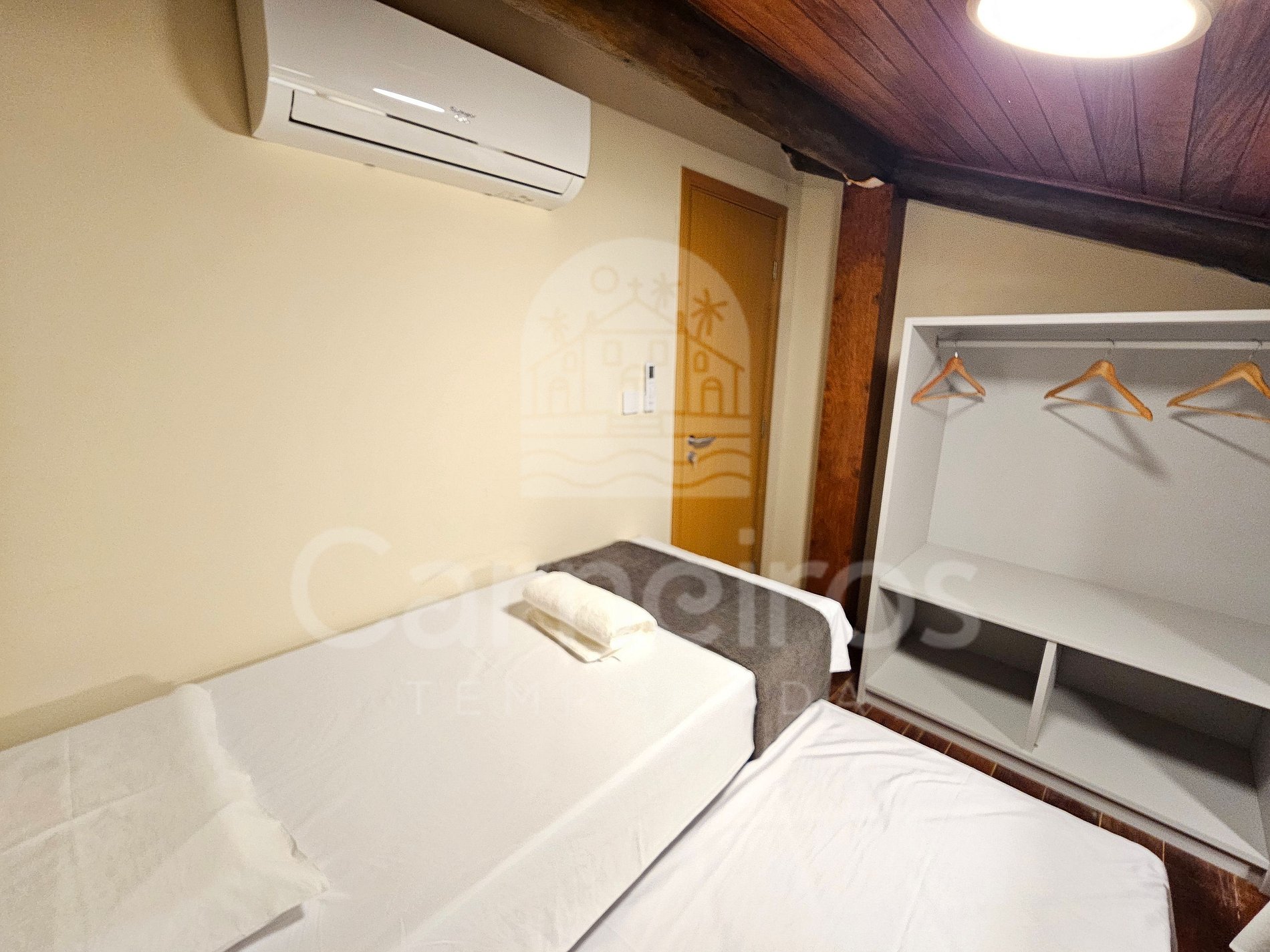 Quarto 2: 4 Camas solteiro, armário e ar-condicionado.
