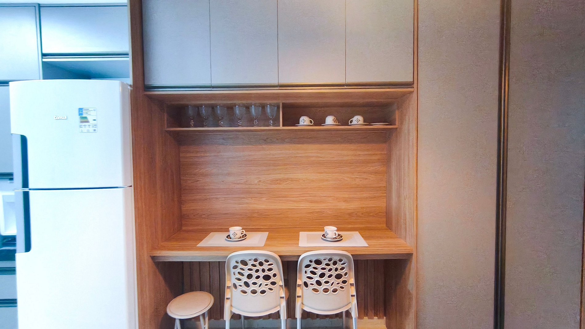 ✹ O flat se encontra no terceiro andar e possui varanda com mesa e cadeiras✹